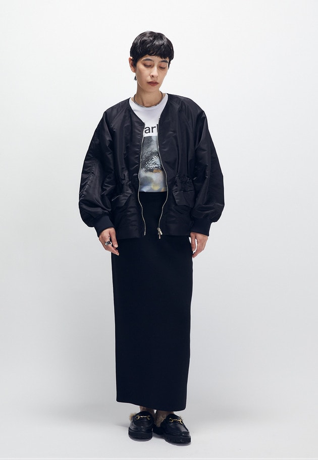 適度なゆとりを付けた身頃に袖丈を少し長めにする事で、コーディネートに取り入れやすいです◎