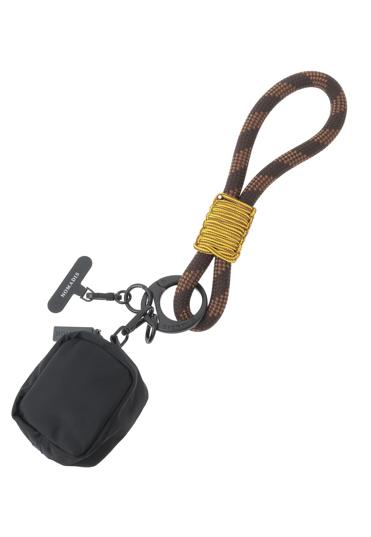 鍵やチャームを付けられるリング、ミニポーチがセットされたガジェット系ストラップです。