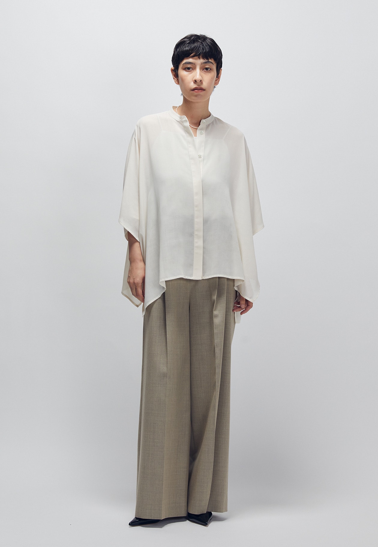 直線や流線、カッティング、素材を用いて、女性の持つ本質的な強さや美しさに光を当てるコレクションは、長い月日を経て語り続ける建築物のように、身につける個々へ向けてスタイルを持つ事の大切さを語り続ける。