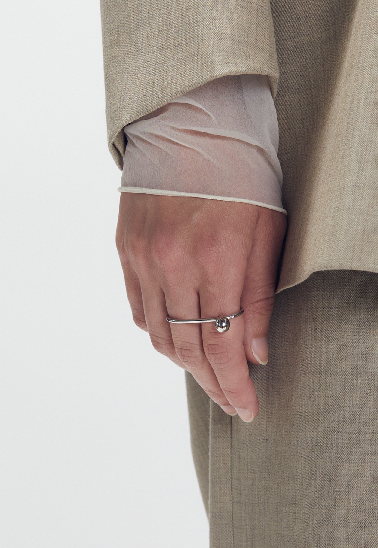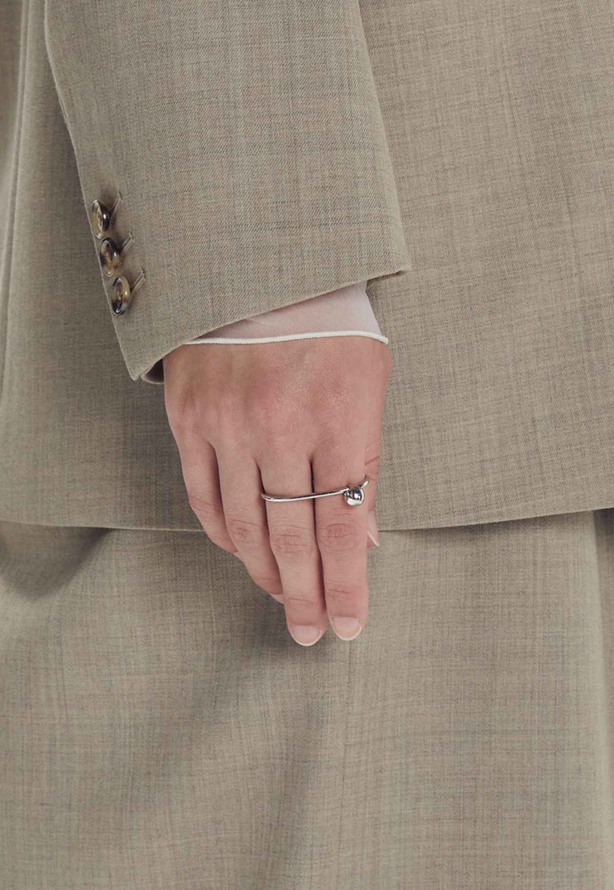 球体が動くのが面白い、シンプルながらも印象的なリングです。
