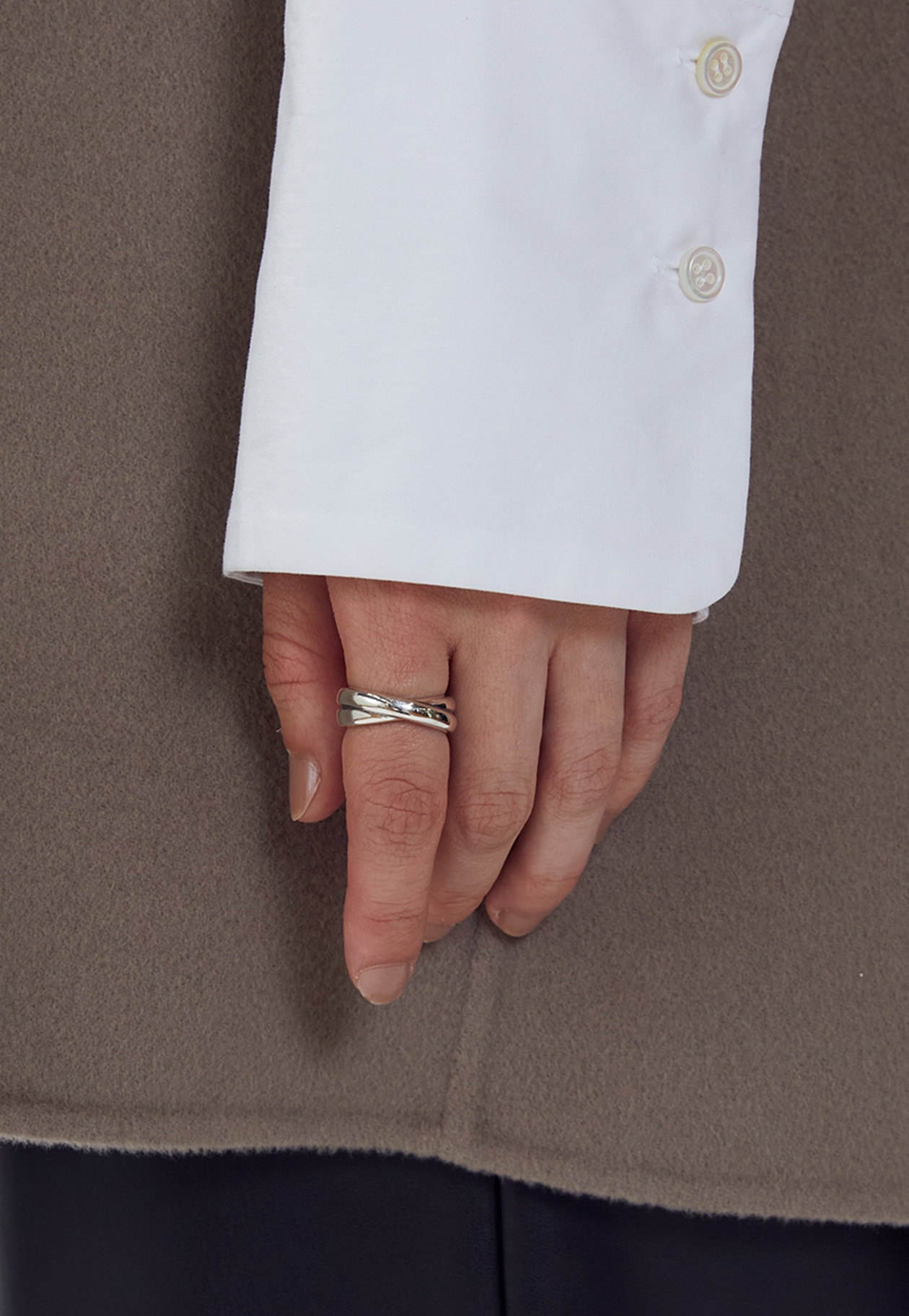 立体的なクロスデザインのリング。