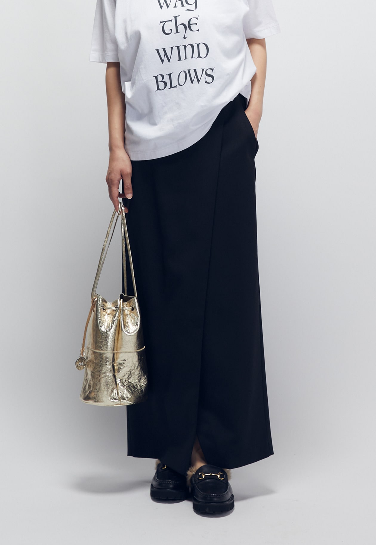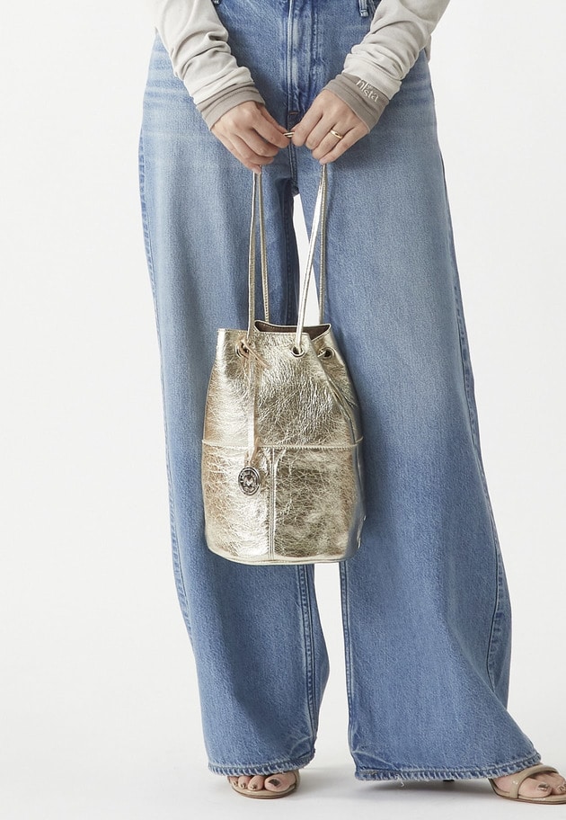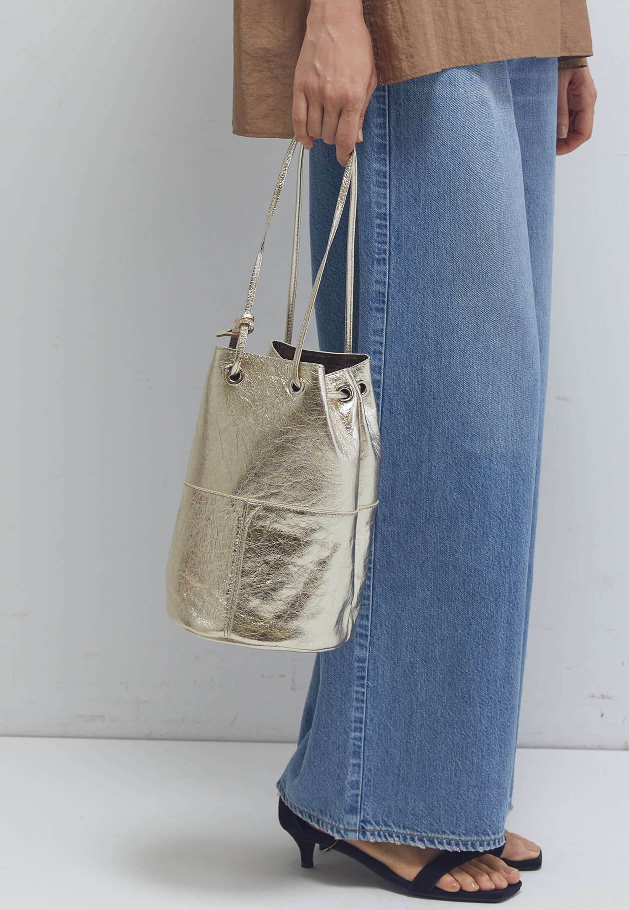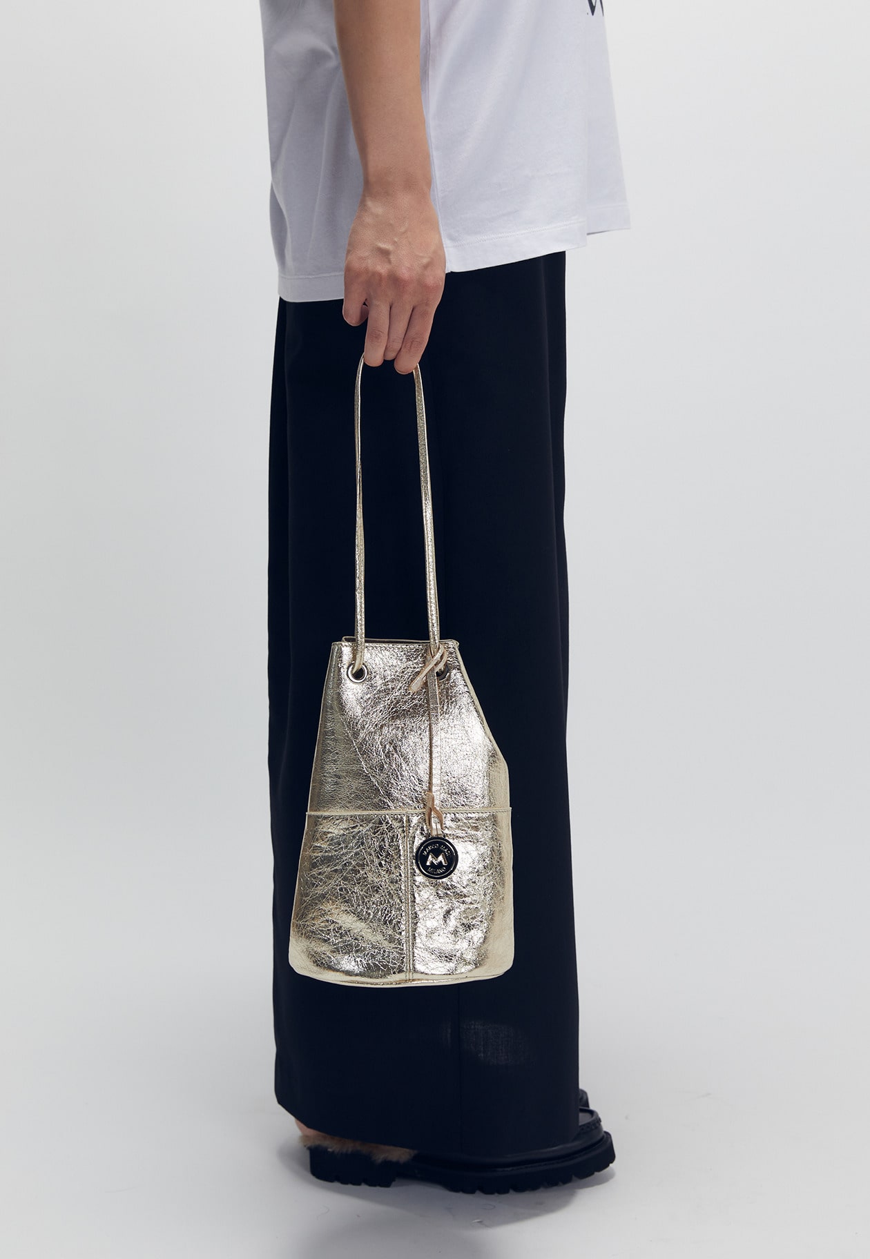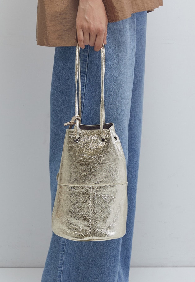 ころんとしたサイズ感が可愛らしい巾着バッグ。