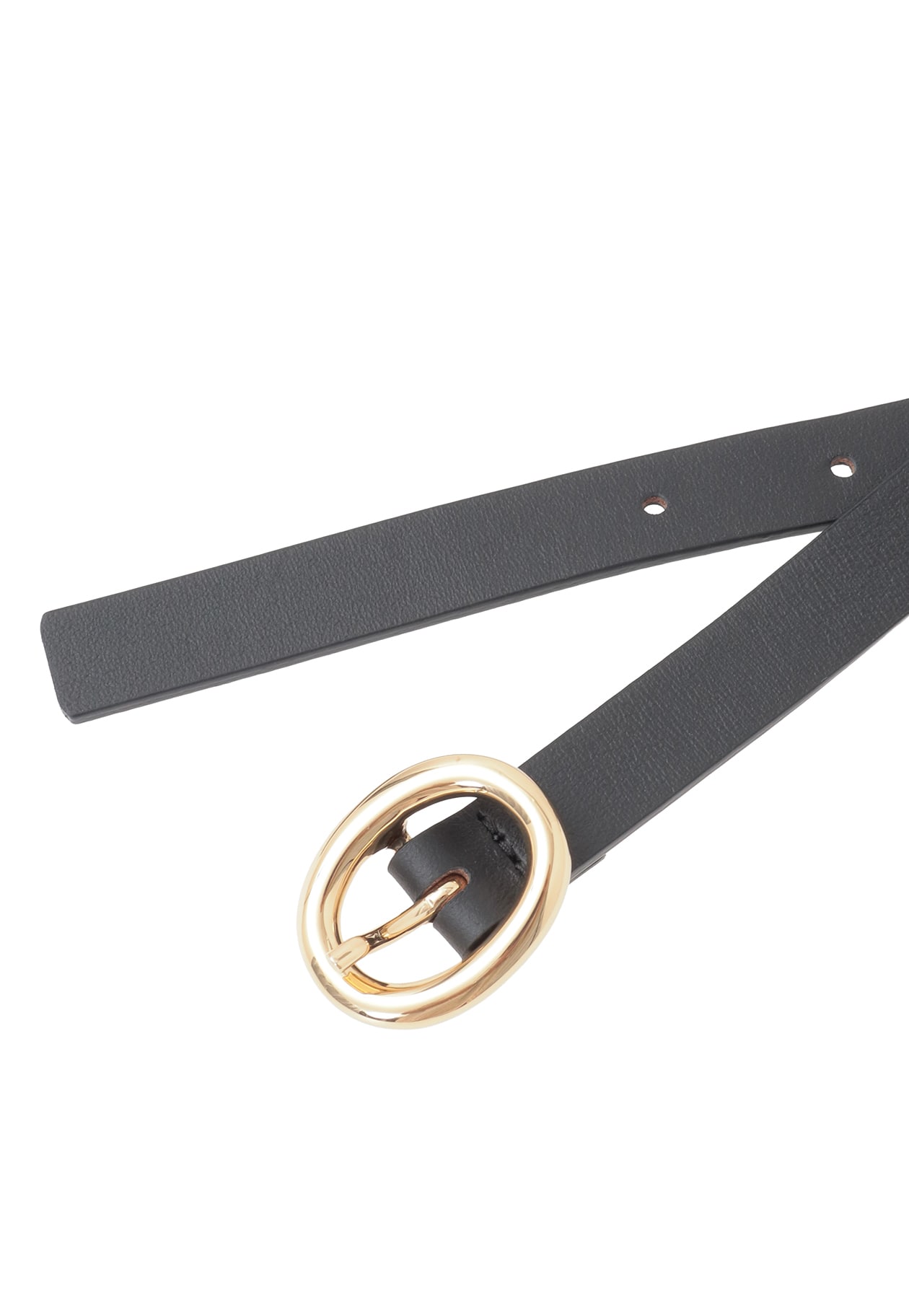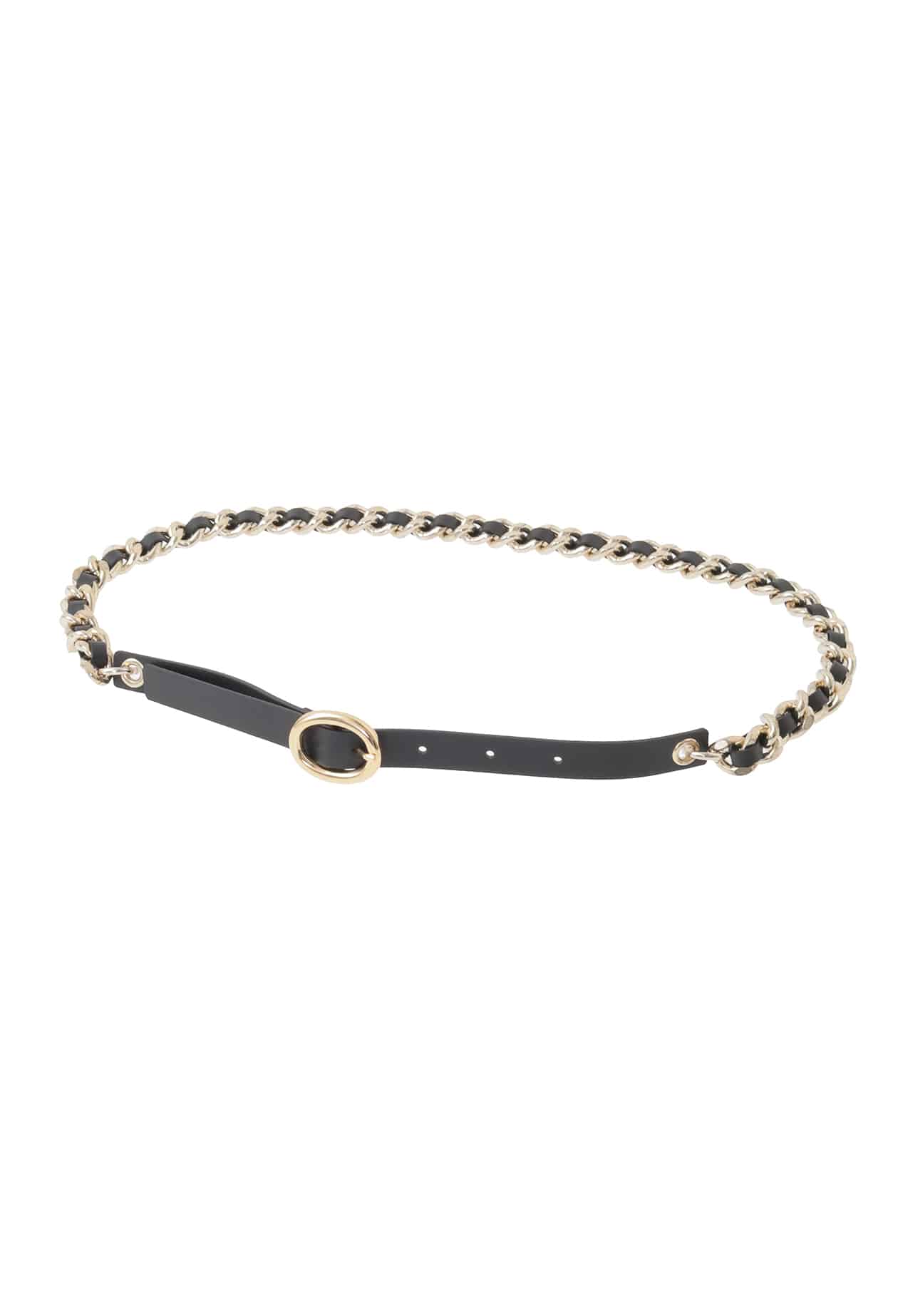 オーバル型のバックルが女性らしいニュアンスを添えるチェーンベルト。