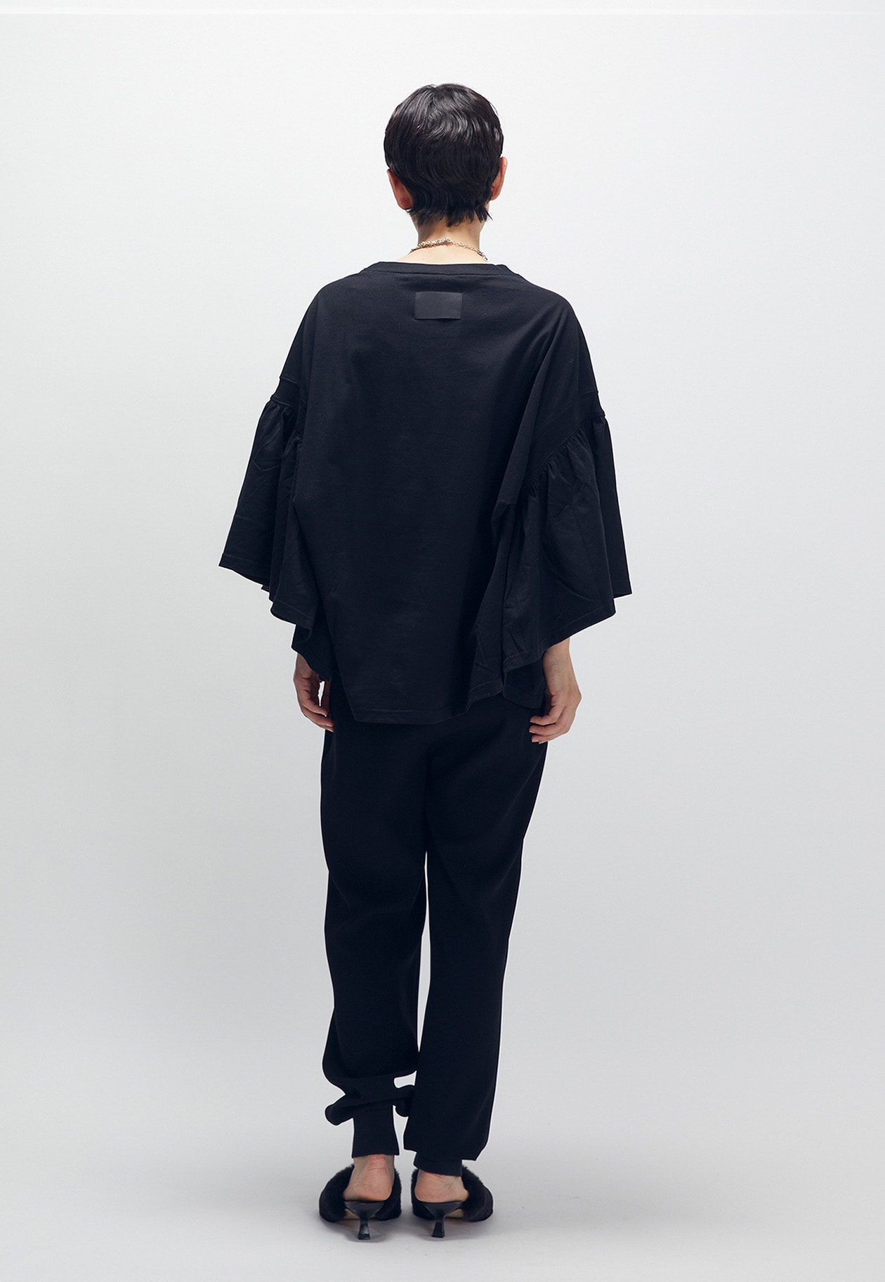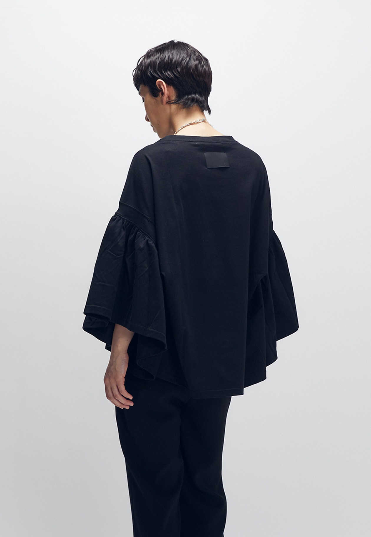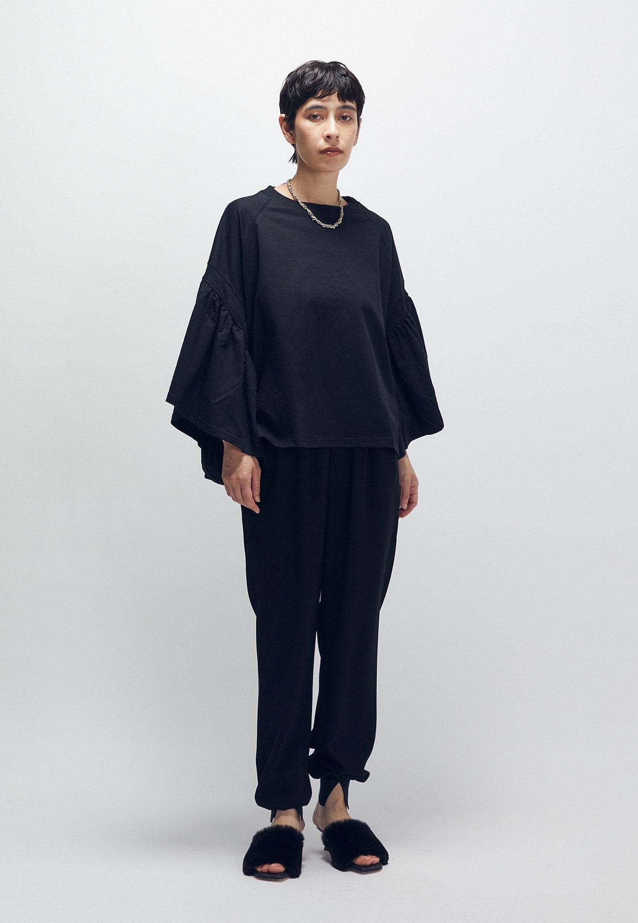 後ろ身頃にタックを入れることで後ろに少しボリュームを持たせ、サイドから見たときにシックでスタイリッシュなシルエットに。
