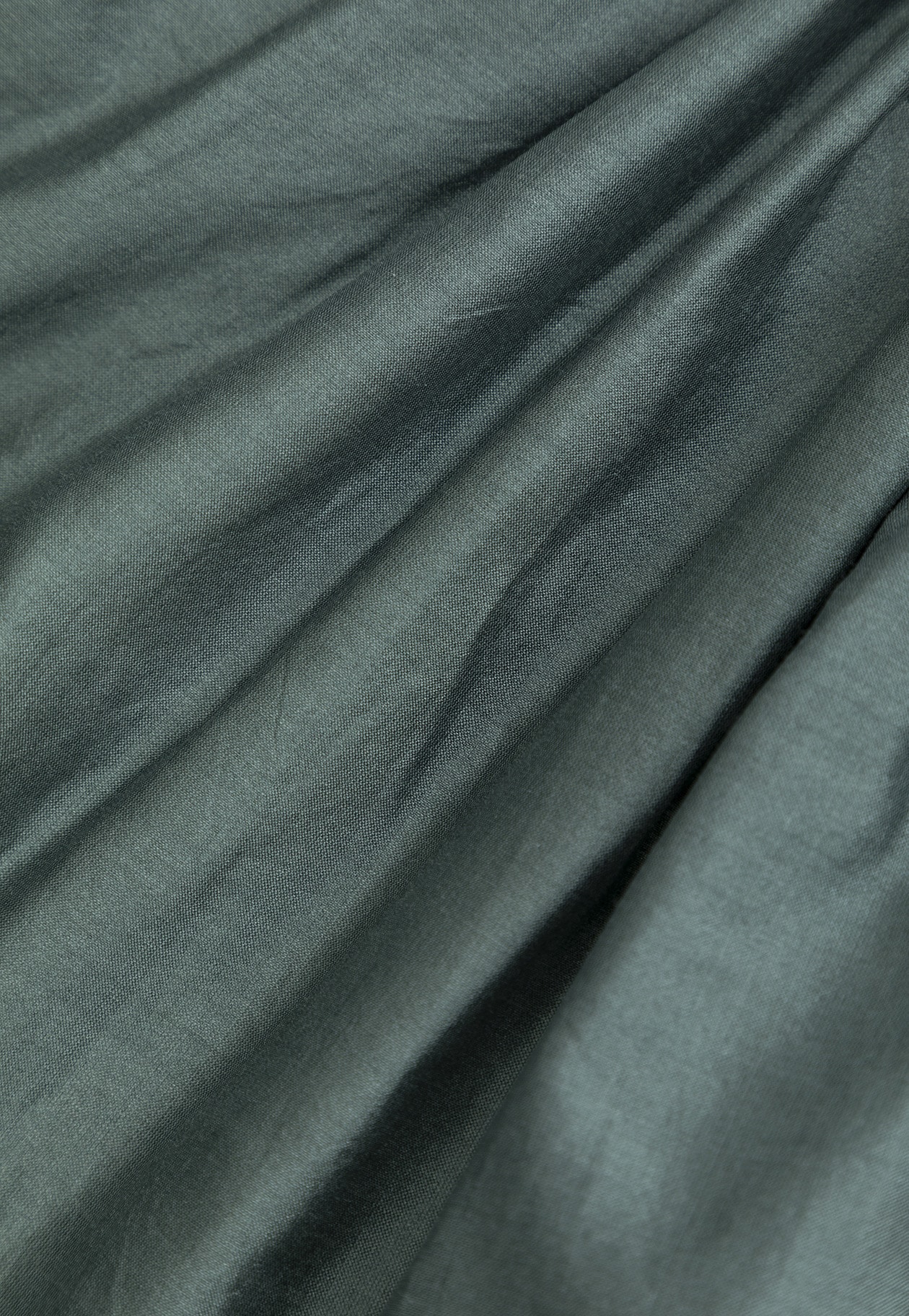 タテ糸にオーガンジーシルク、ヨコ糸に絹紡糸(けんぼうし)を織り合わせた、上品な光沢とふっくらとした柔らかさを兼ね備えたシルク素材を使用。