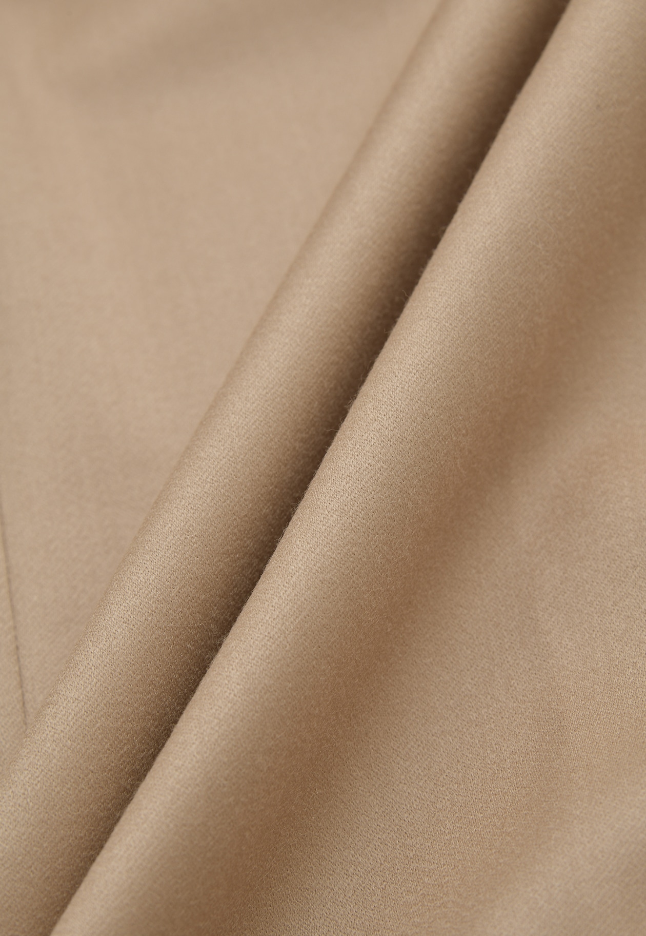 なめらかで光沢をたたえた梳毛細番手のウールサテンを使用。
