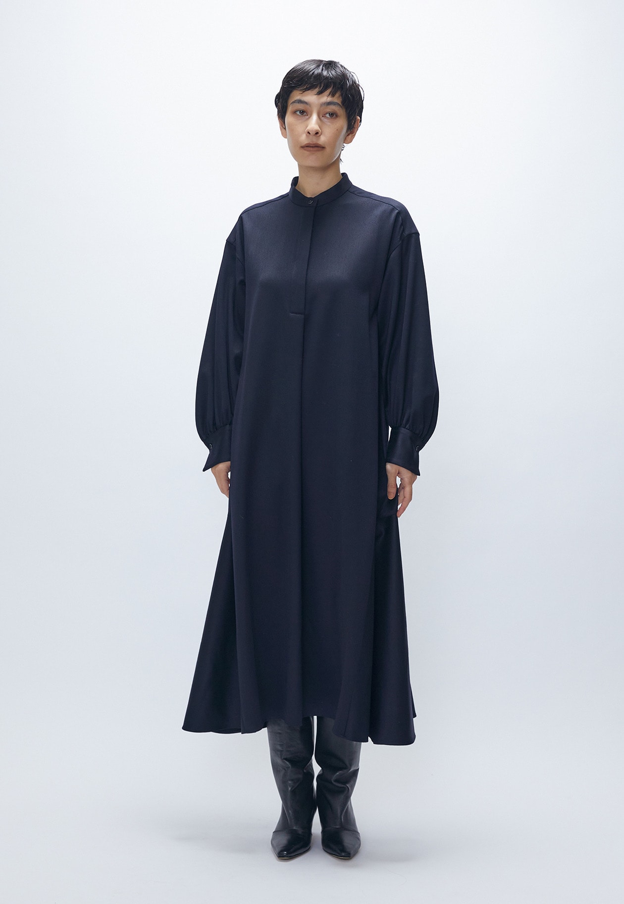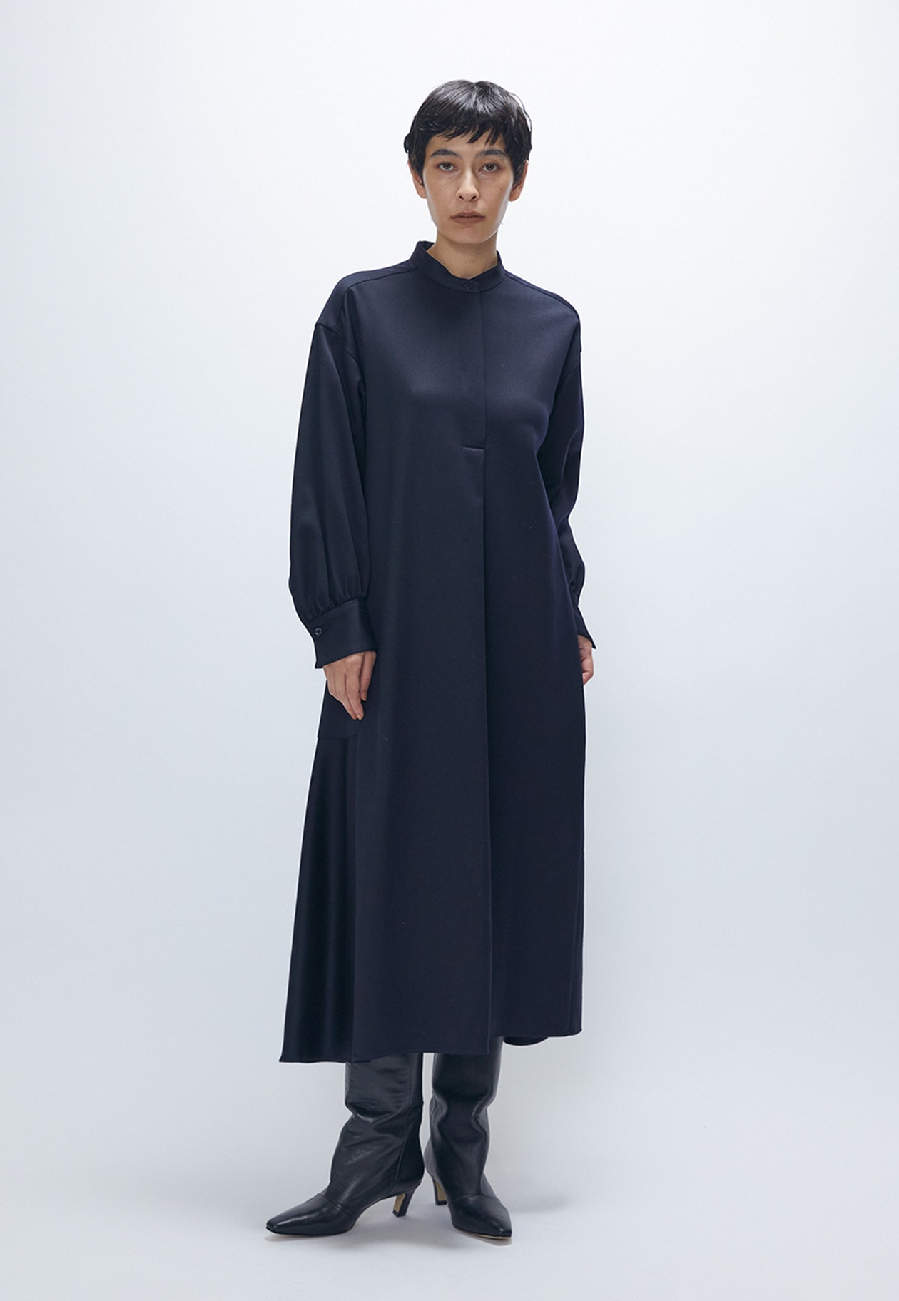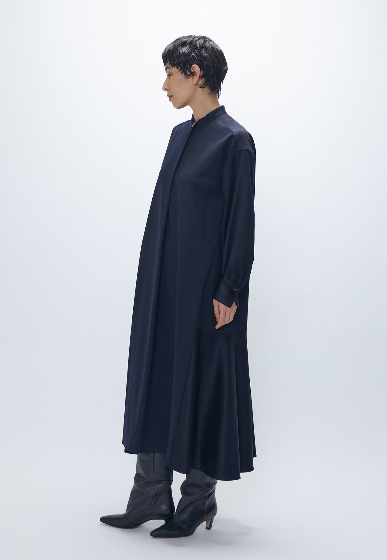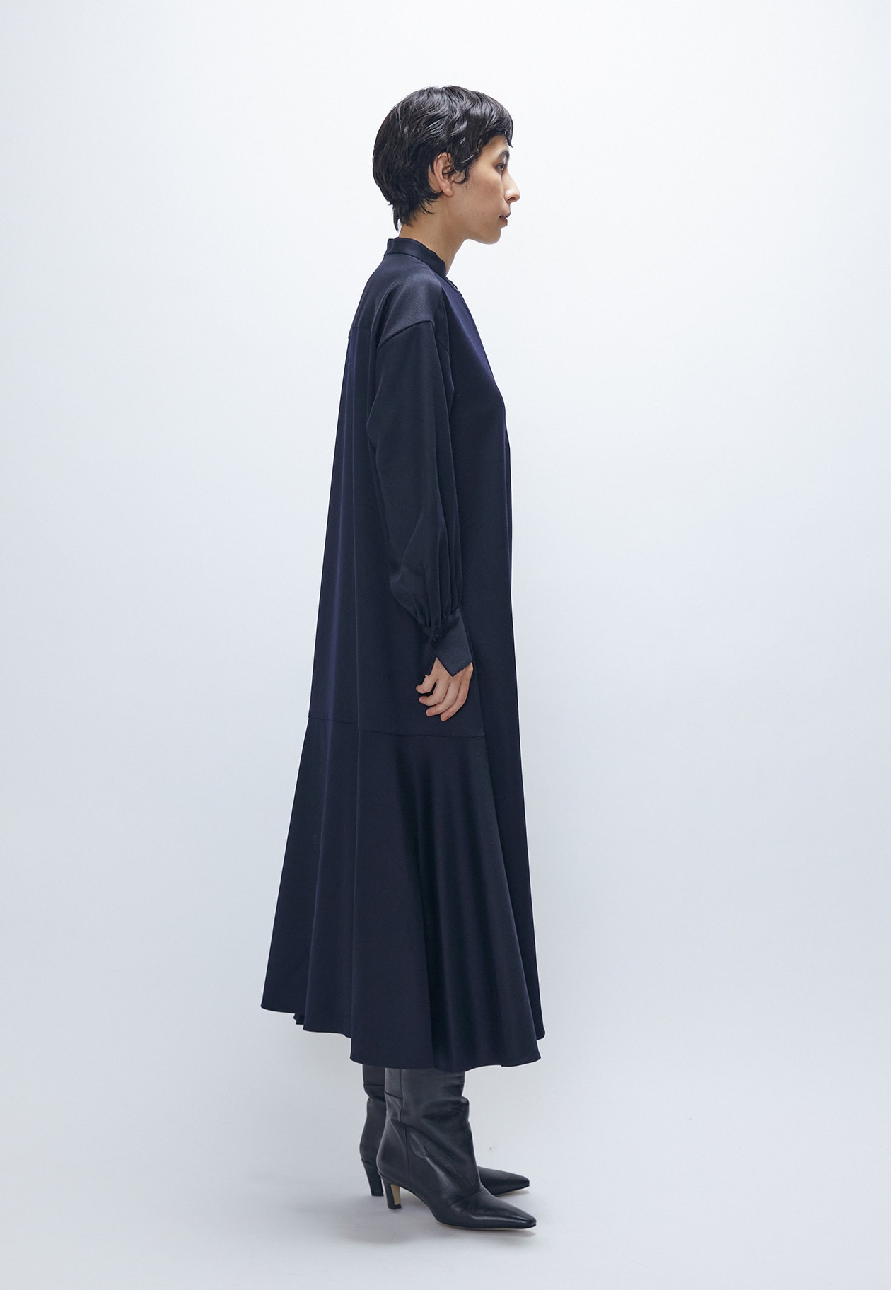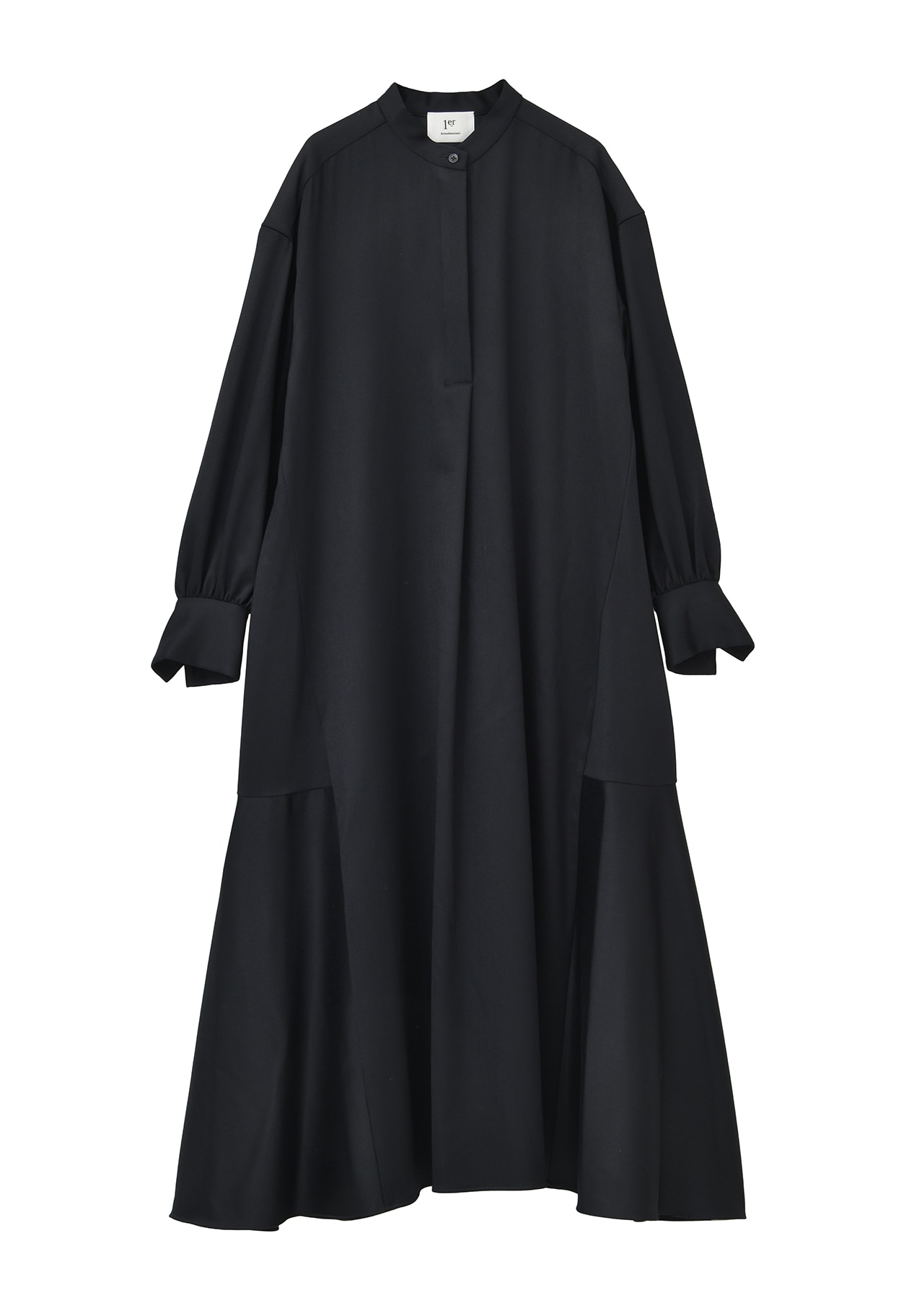 裾には切り替えでフレアを入れ、歩くたびに揺れるエレガントなシルエットを演出します。