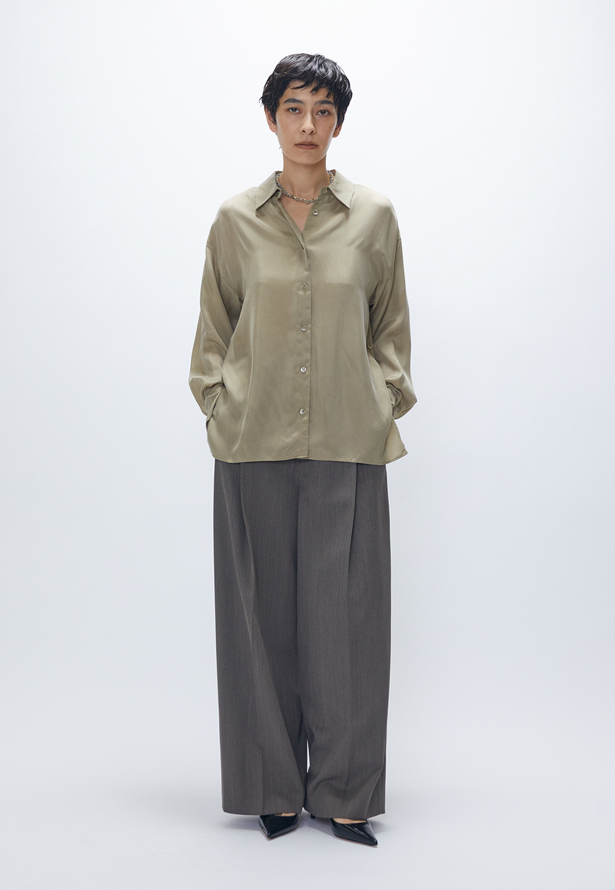マットな光沢ととろみのあるキュプラの生地を使用。