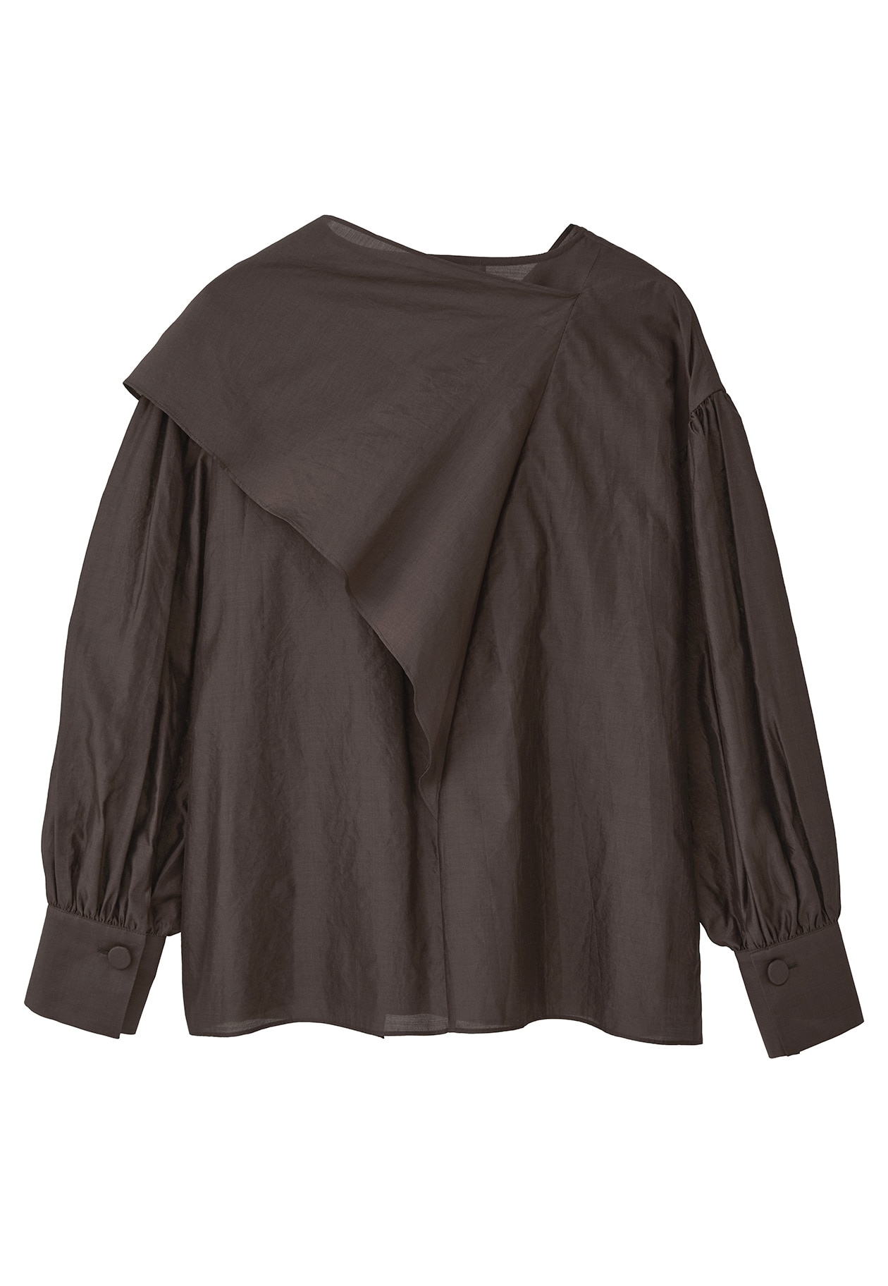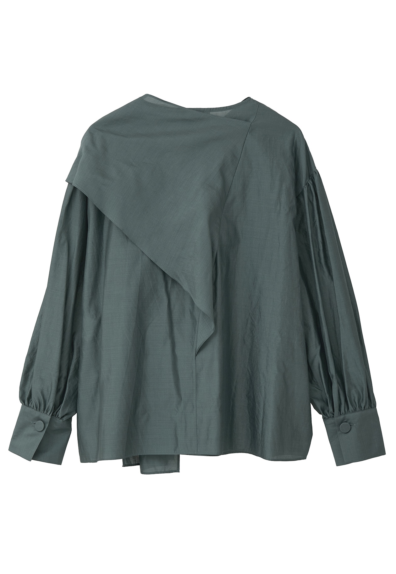動くたびにドレープが柔らかく揺れるドラマテックな表情が魅力的で、首元から肩へ流れるようなラインが、品格と華やかさを添えます。