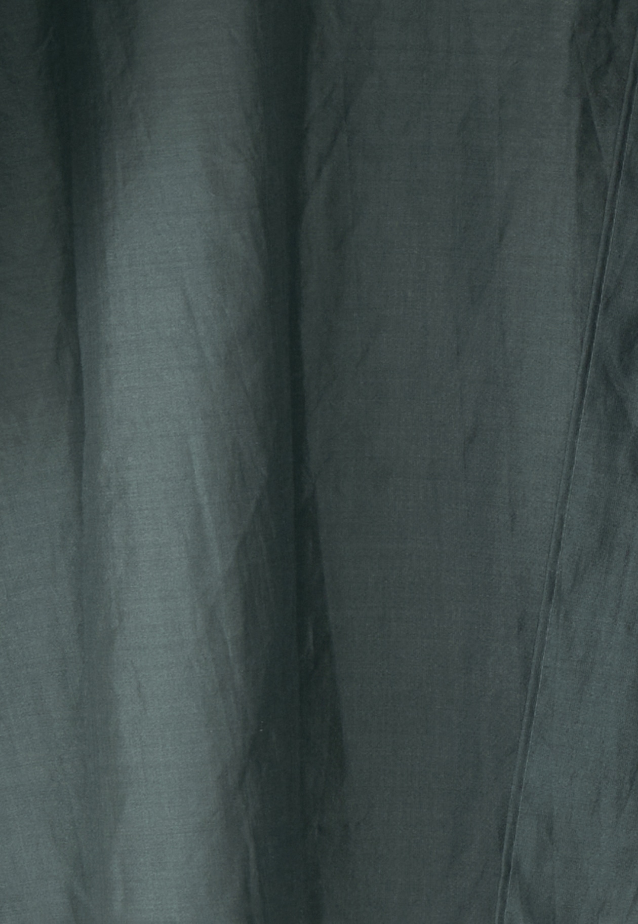 タテ糸にオーガンジーシルク、ヨコ糸に絹紡糸(けんぼうし)を使い、オーガンジーのシャリ感と絹紡糸の柔らかさがある、光沢感のあるシルク素材を使用。