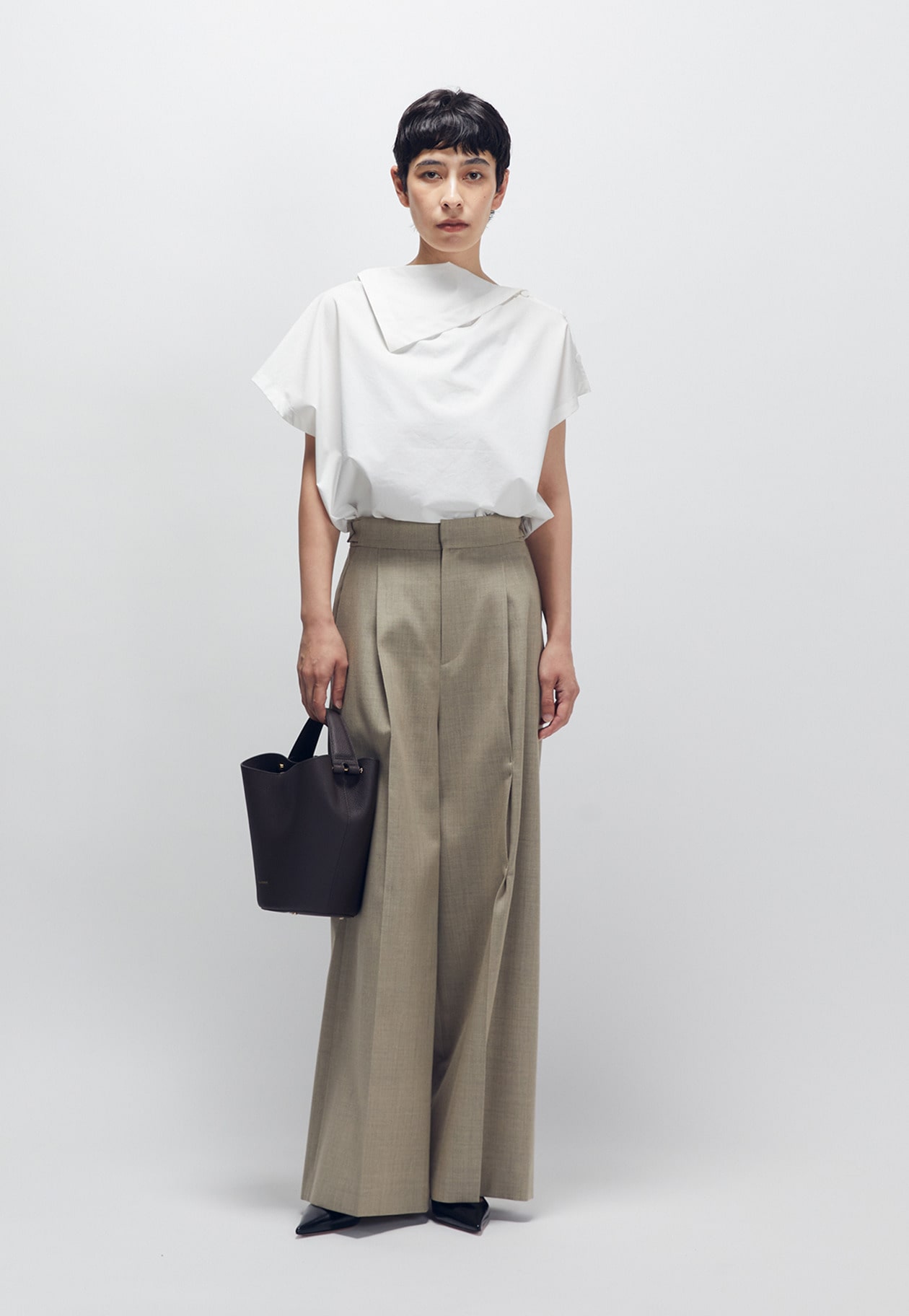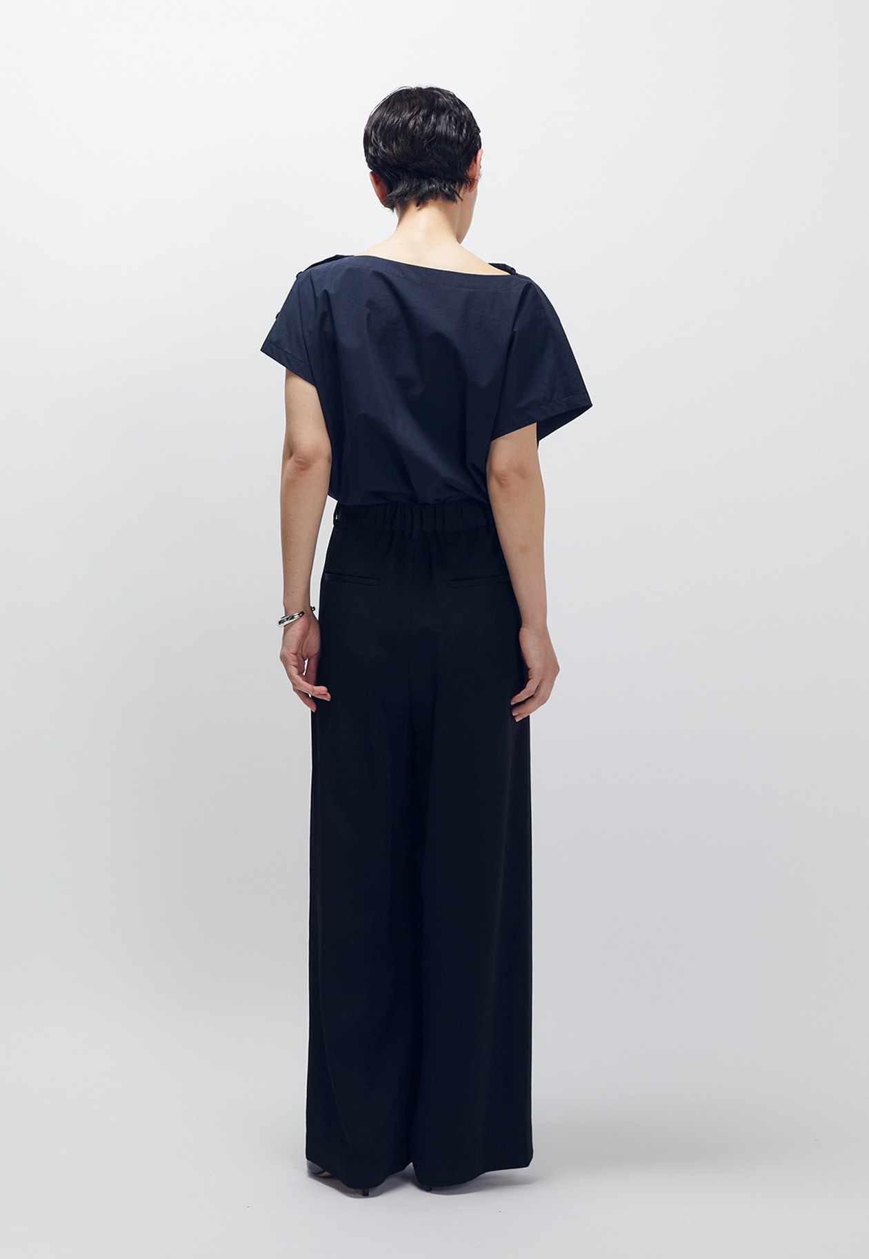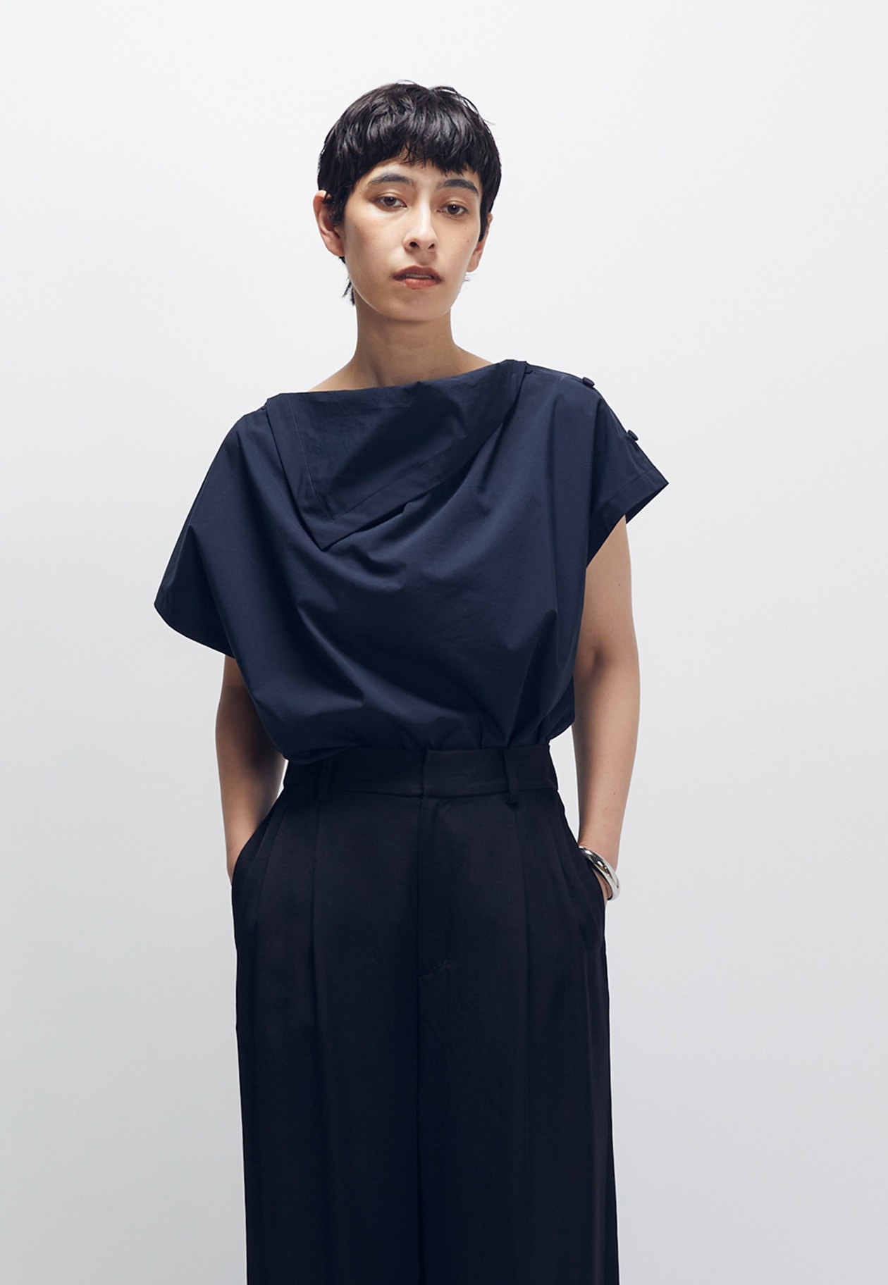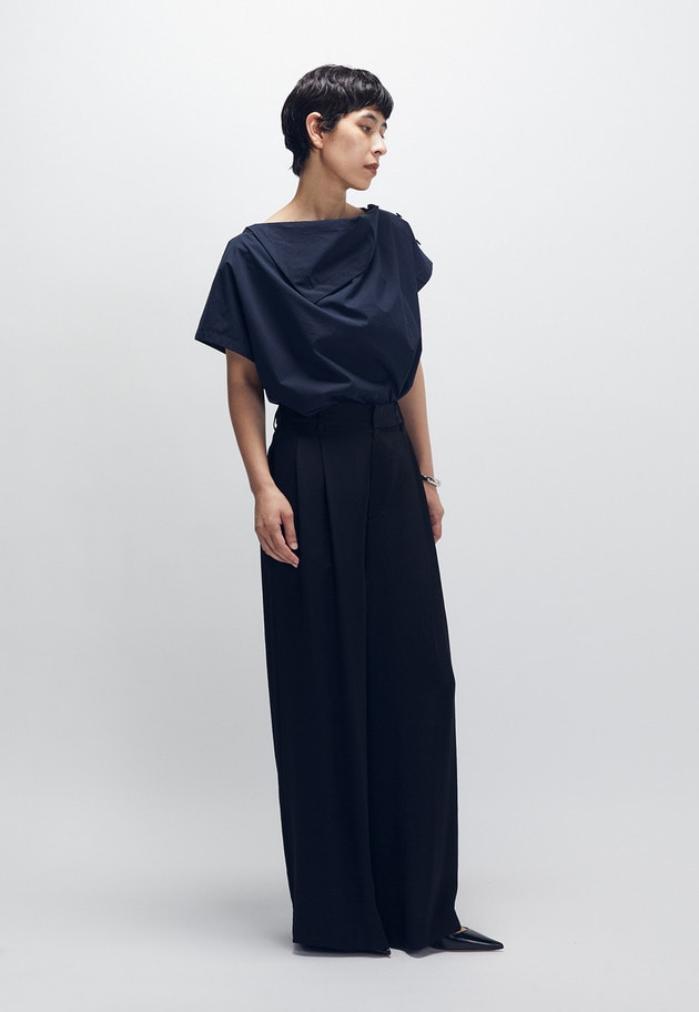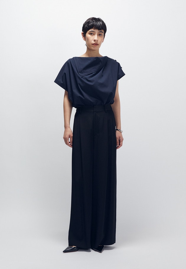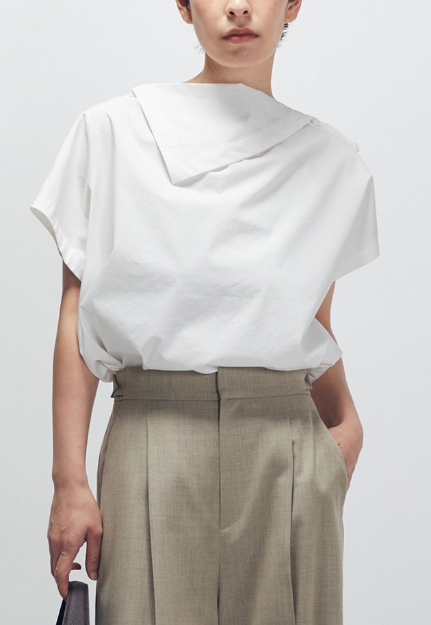フロントのさりげないドレープ感もポイント。