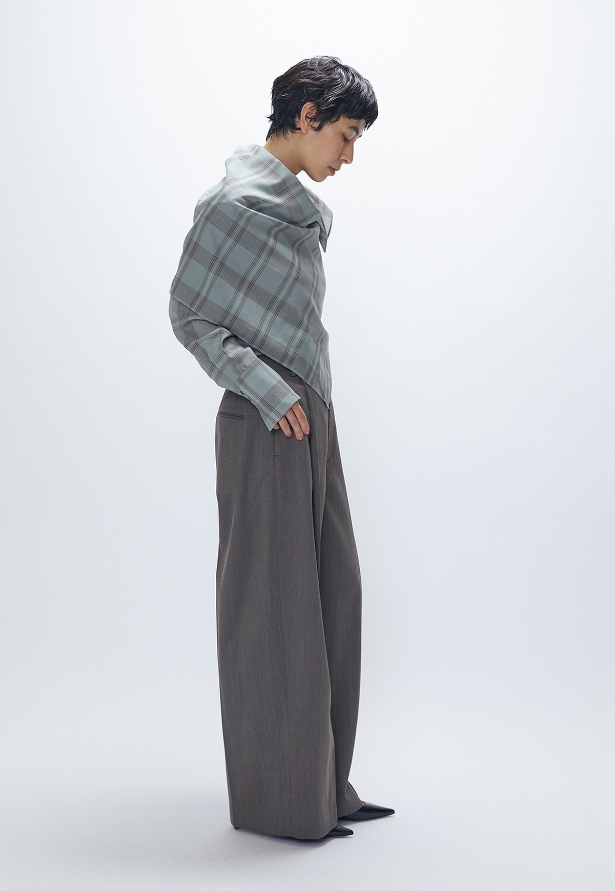 ウール混ですが軽やかでドライタッチな風合いで、暑さが続く秋にぴったりなです。