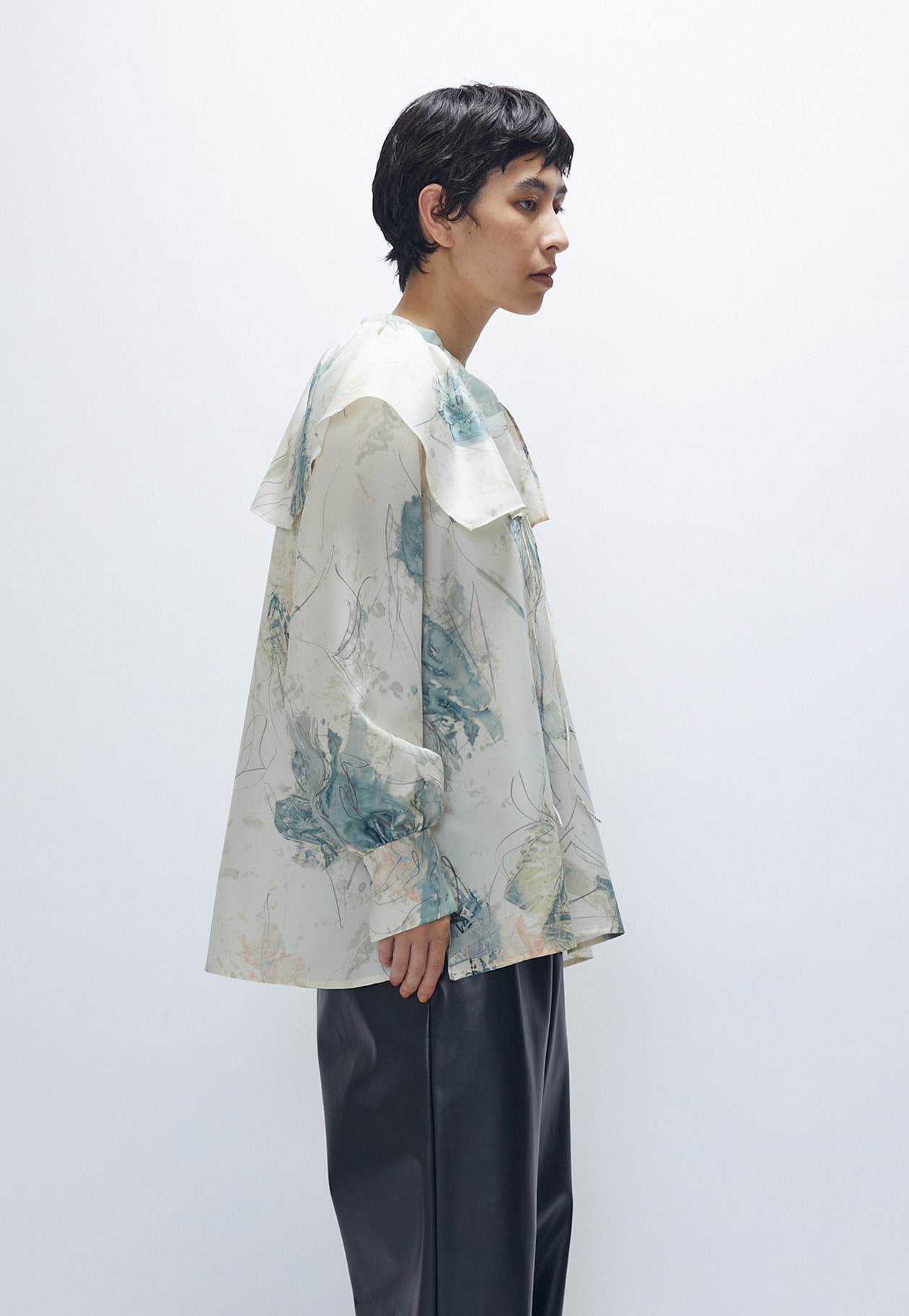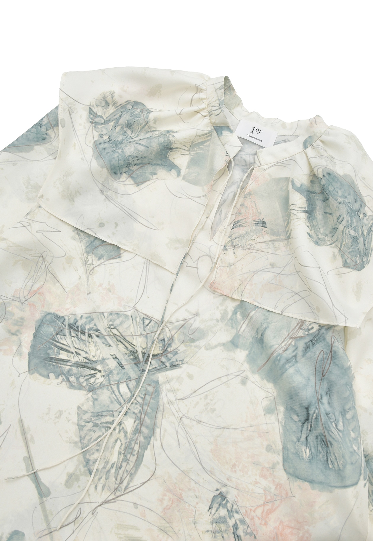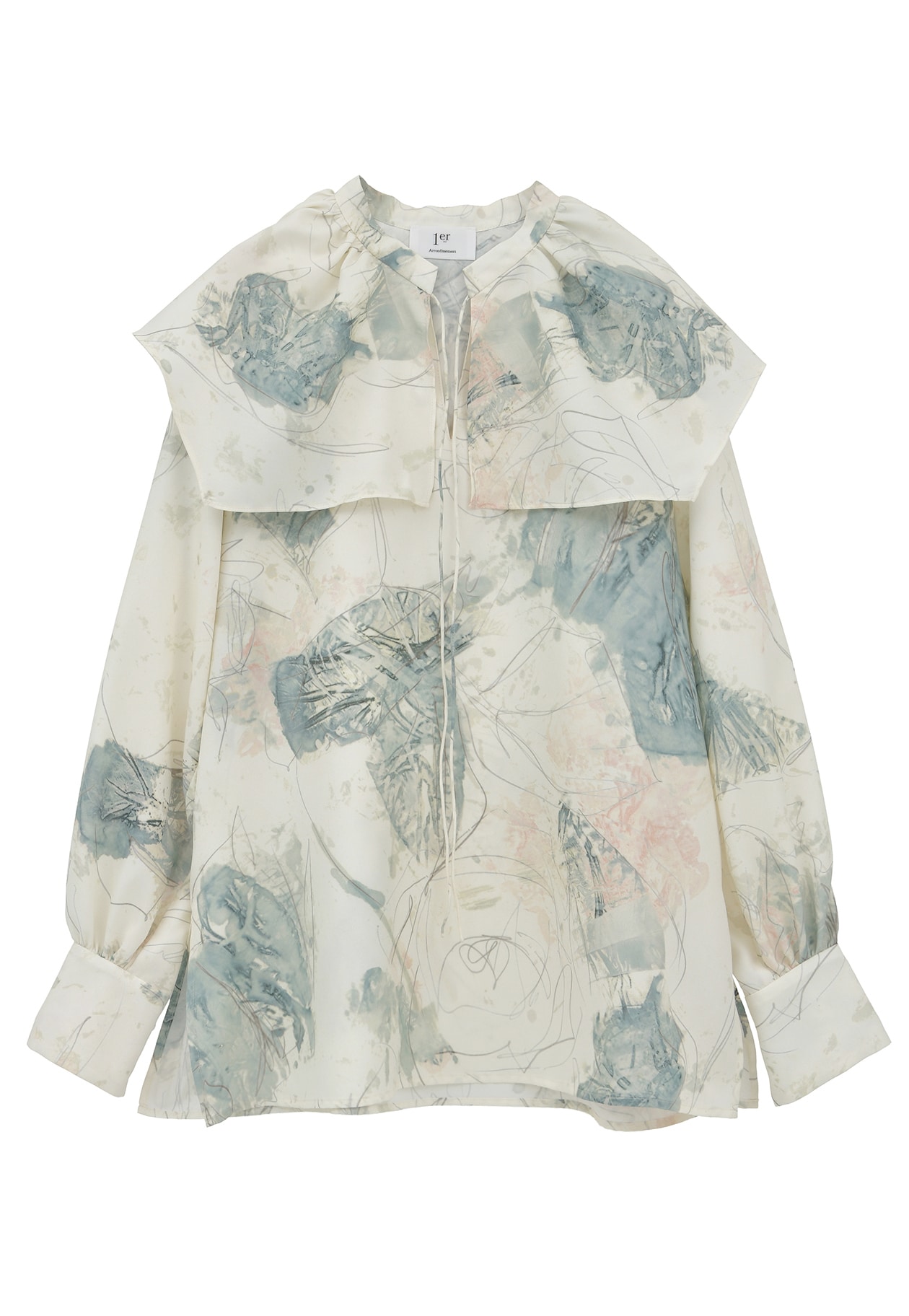 プルミエアロンディスモンオリジナルプリントをあしらった、柔らかなスクエアカラーが魅力のブラウス。