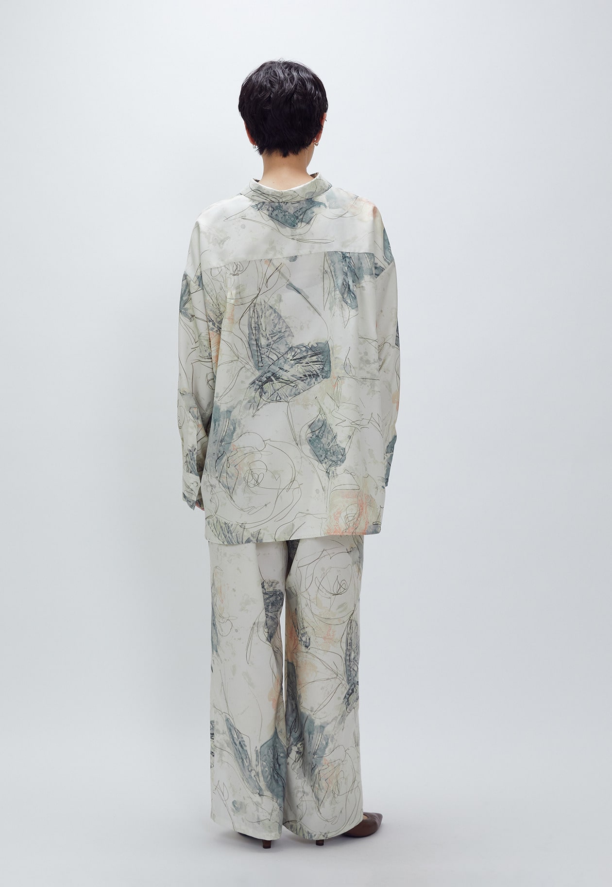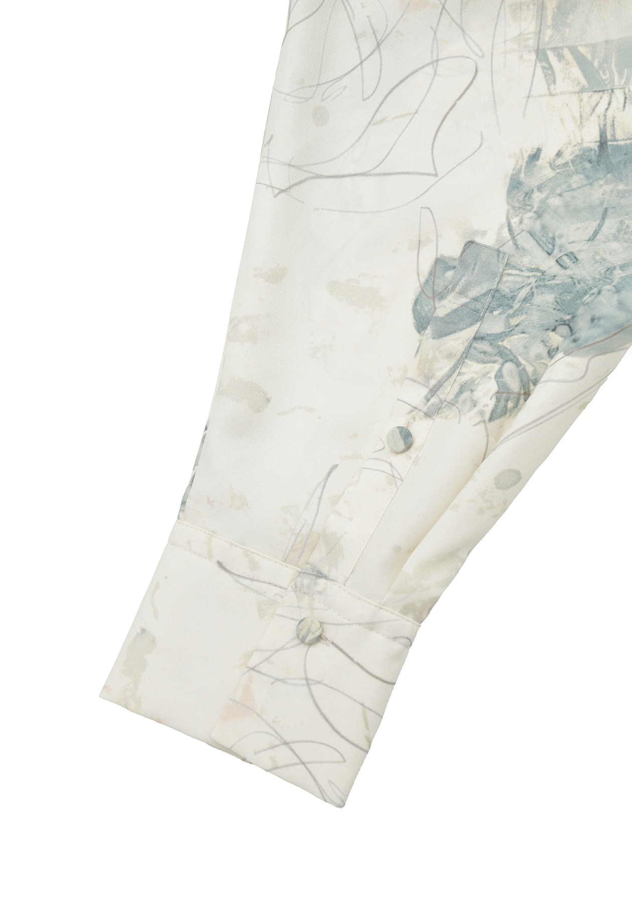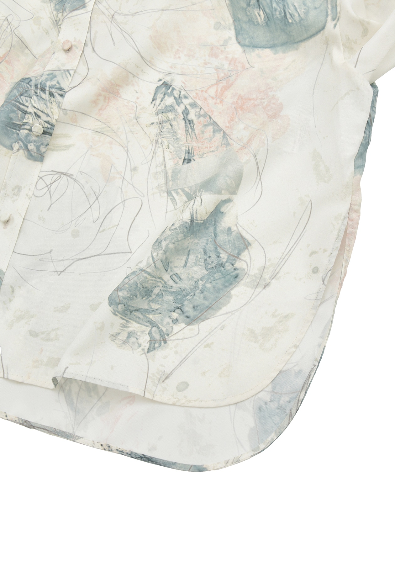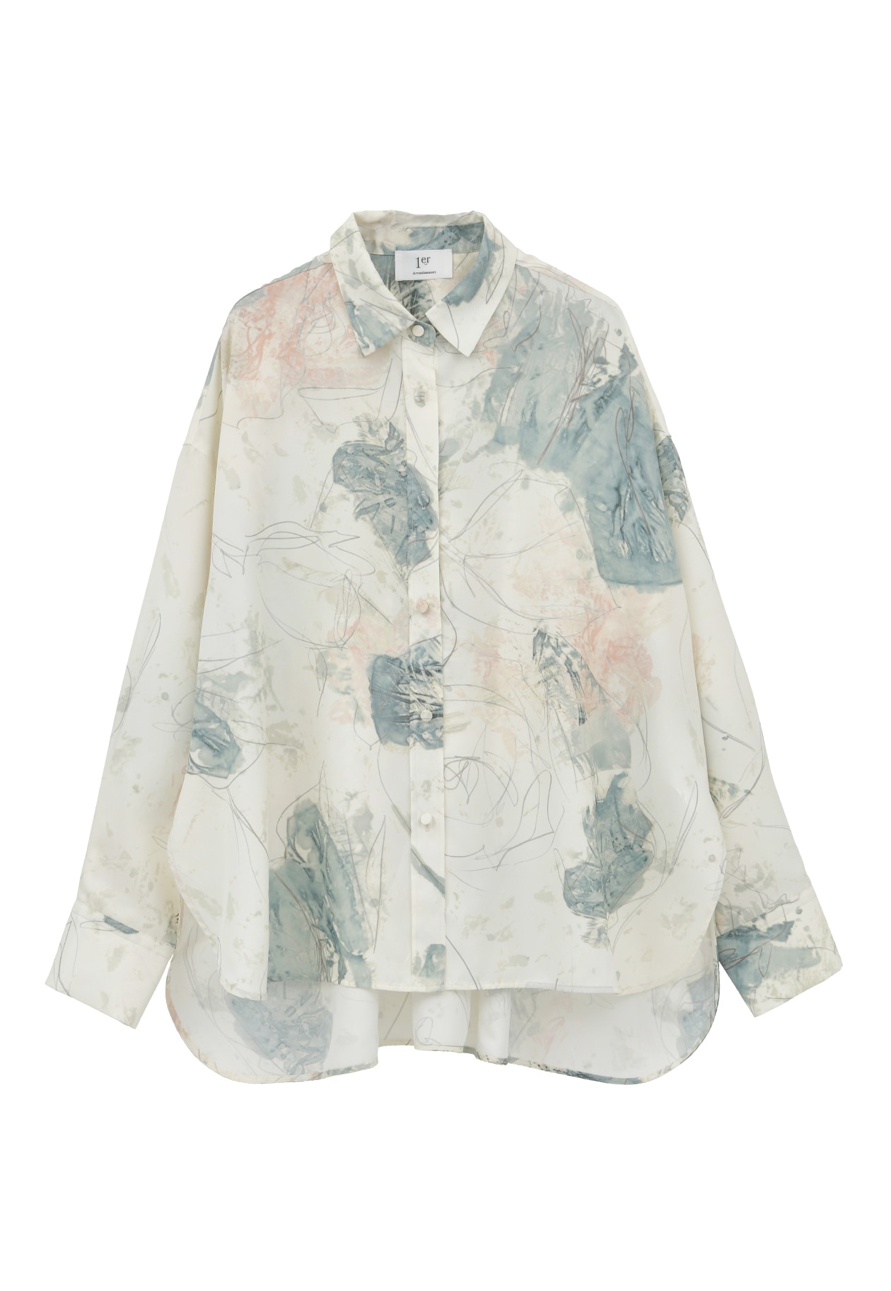 プルミエアロンディスモンオリジナルプリントをあしらった、しなやかな素材感のとろみシャツ。