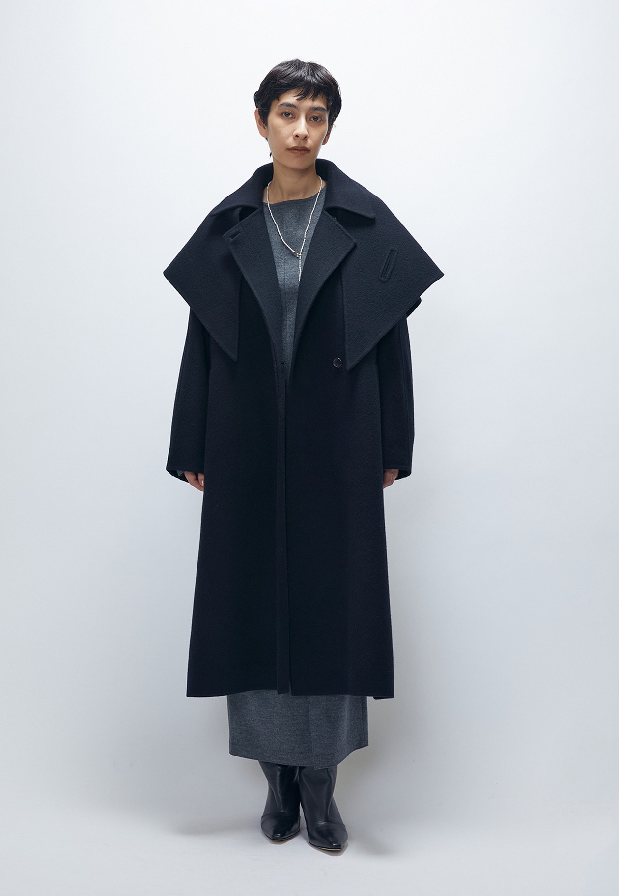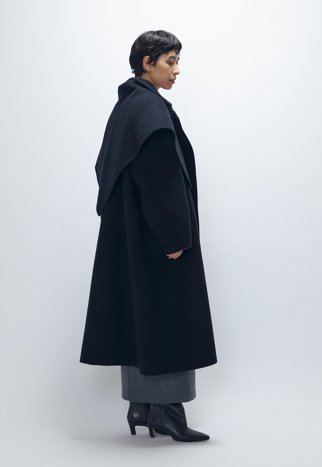 • TOPダブルビーバーステンカラーコート(スカーフ付) 詳細画像 Black 11