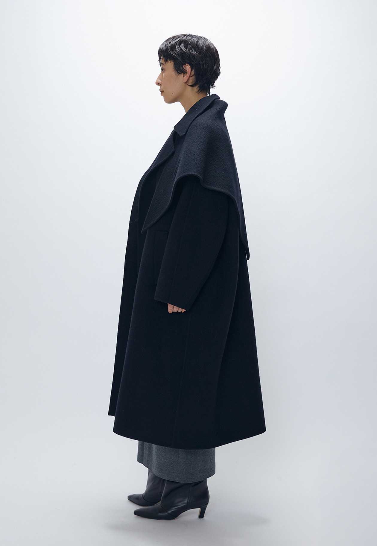 • TOPダブルビーバーステンカラーコート(スカーフ付) 詳細画像 Black 3