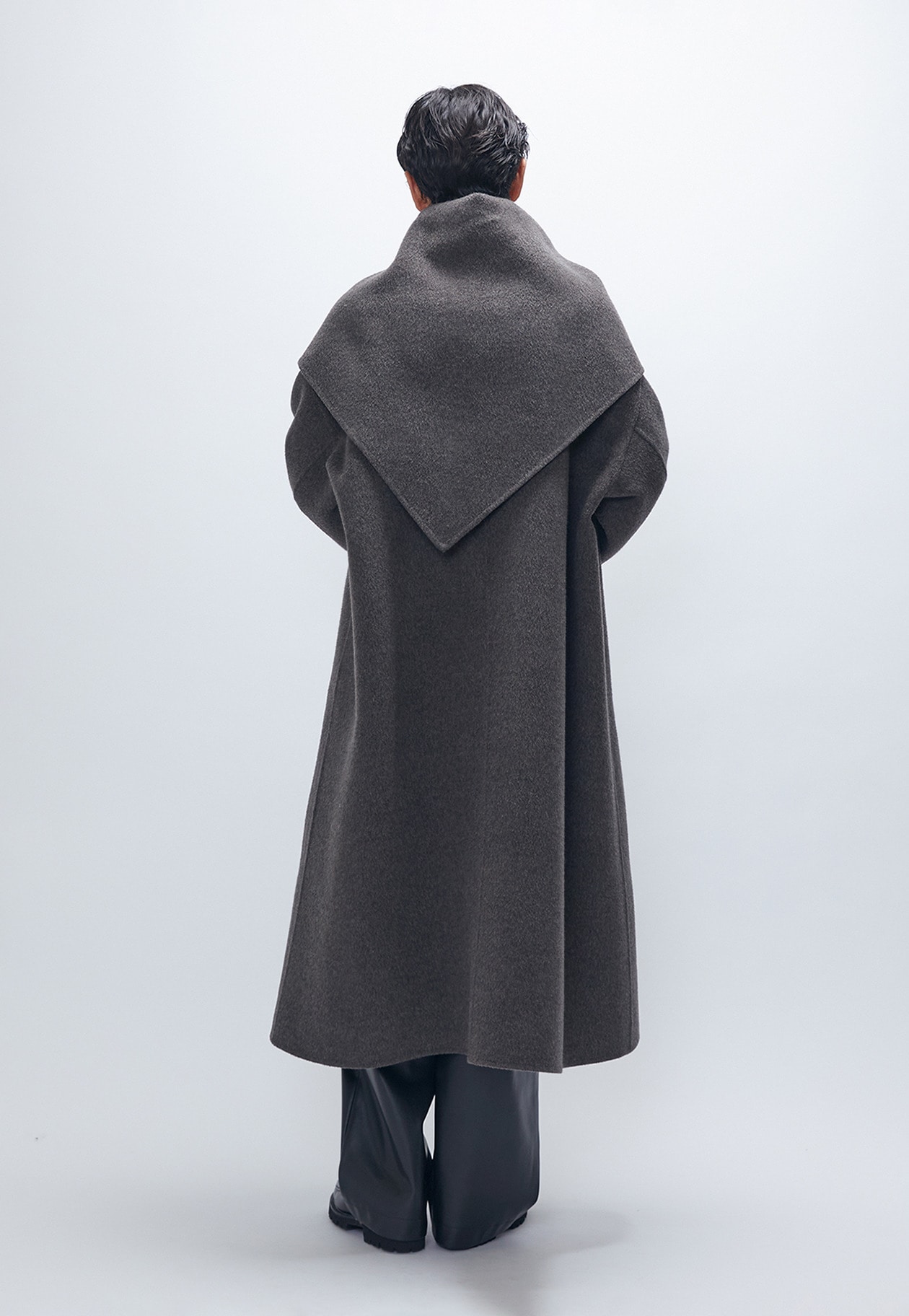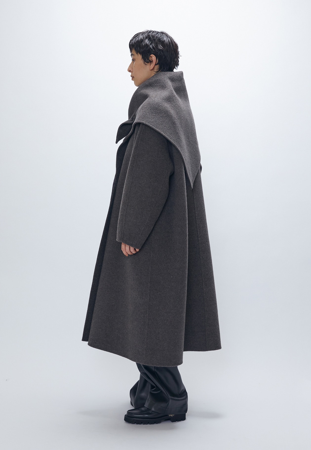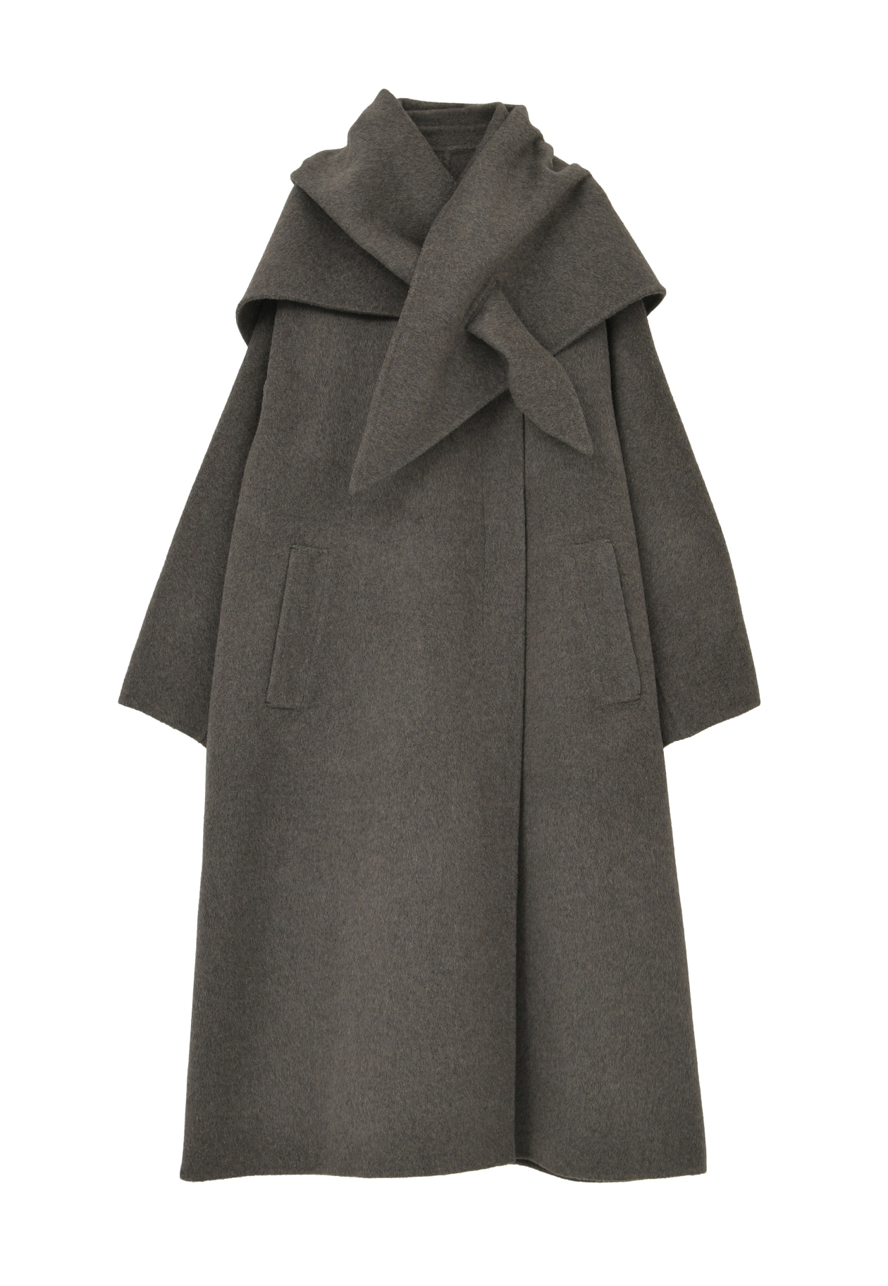 TOPダブルビーバーステンカラーコート(スカーフ付)
