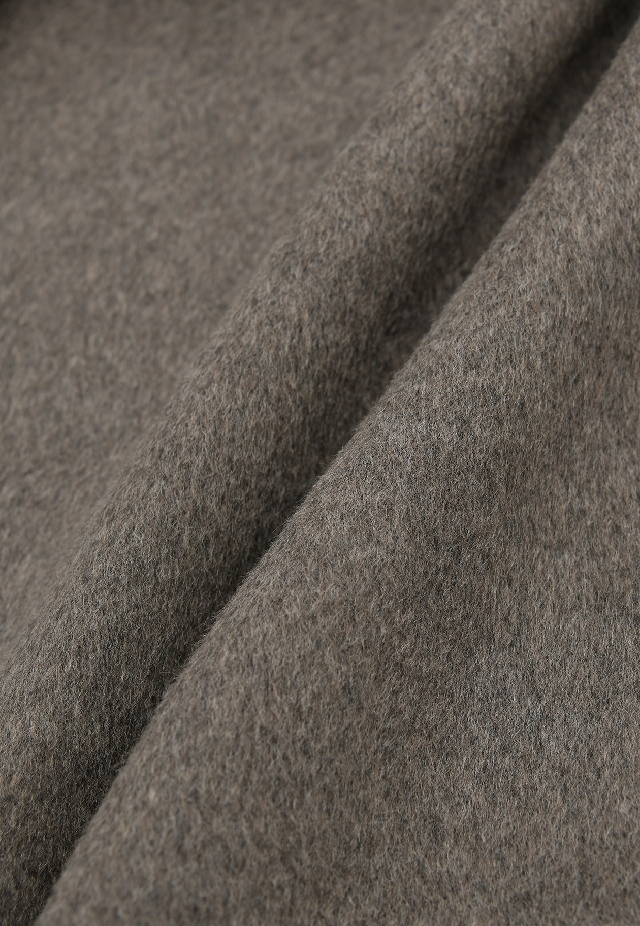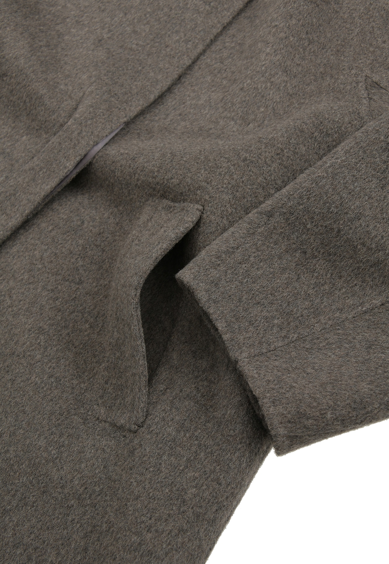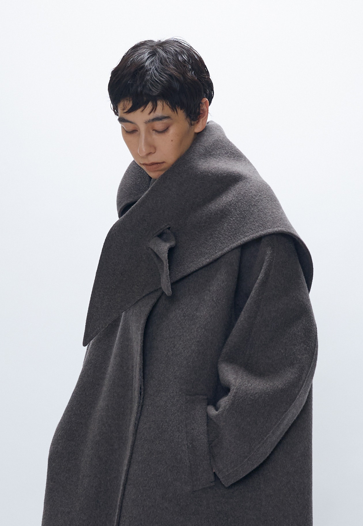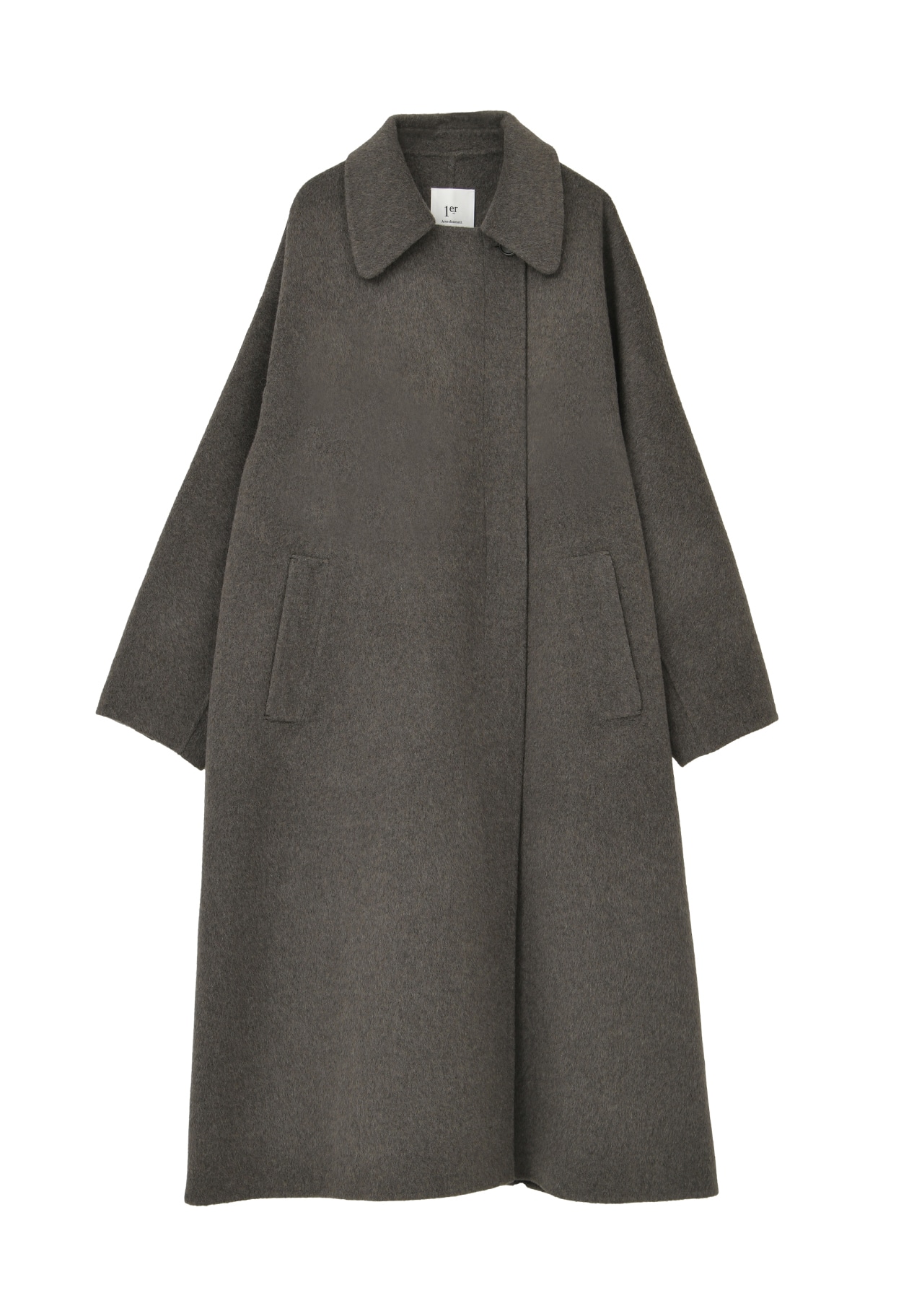 TOP糸を使用することで奥行きのある色合いを表現し、さらに艶とふくらみを持たせる高級仕上げ「両面シャルム」で仕立てたステンカラーコート。