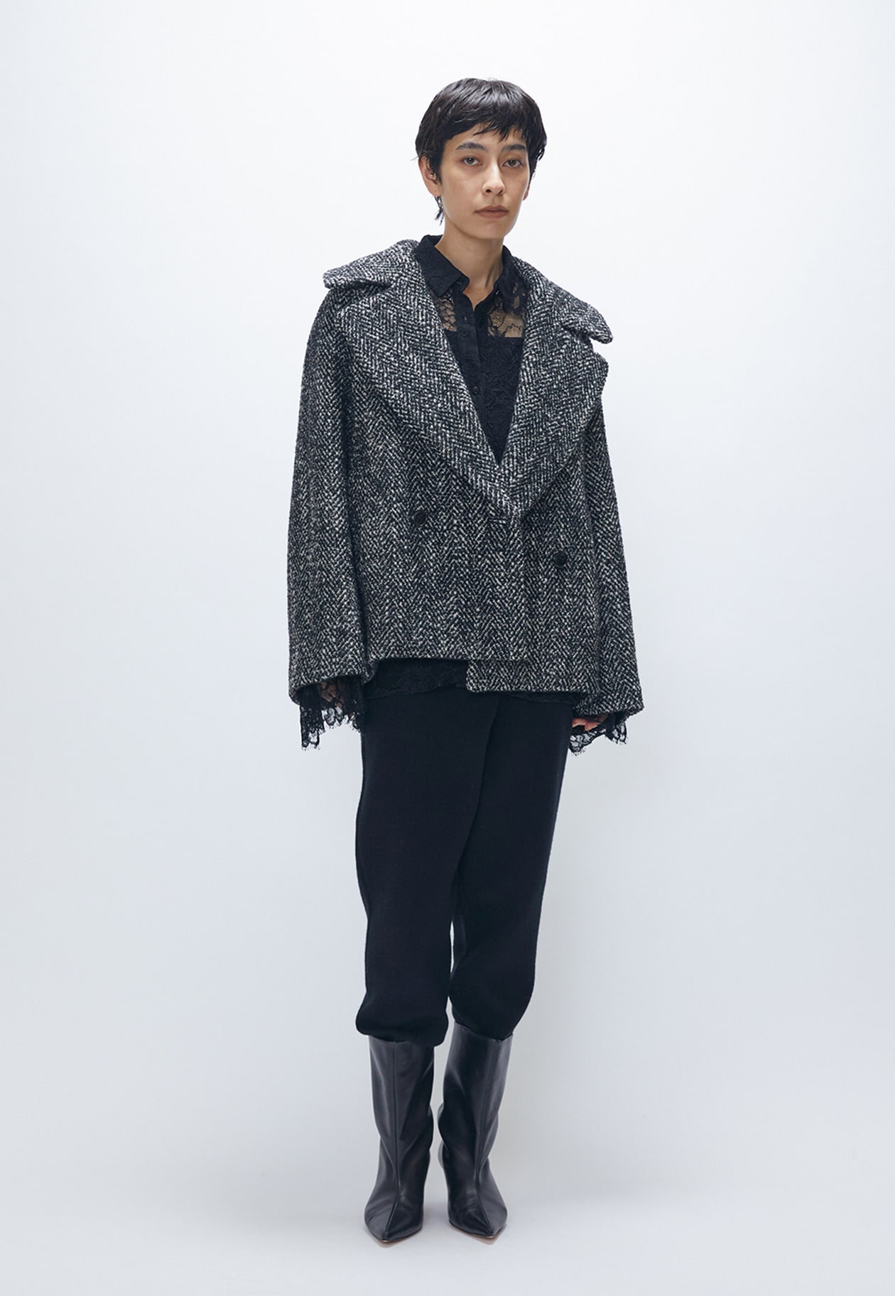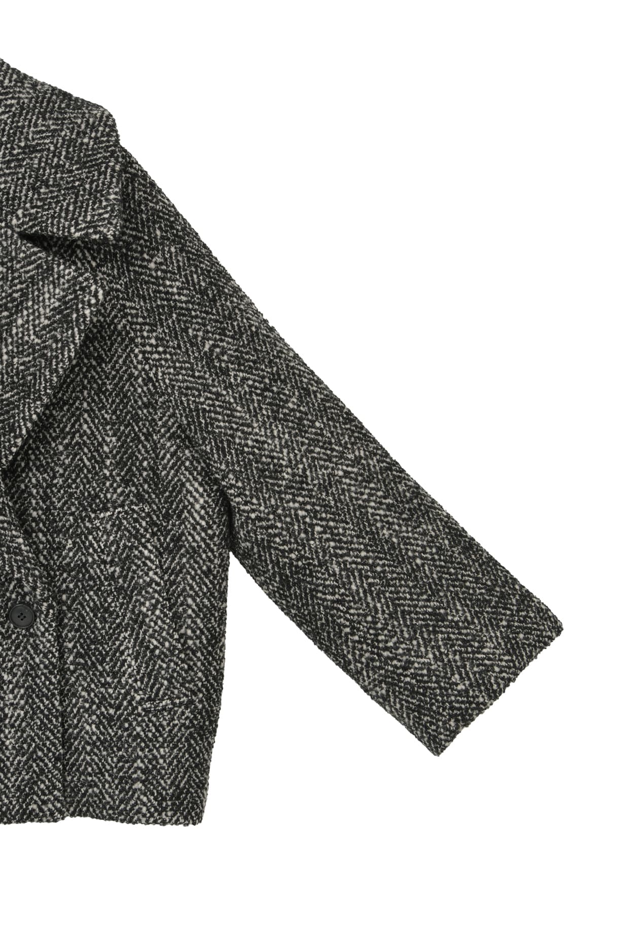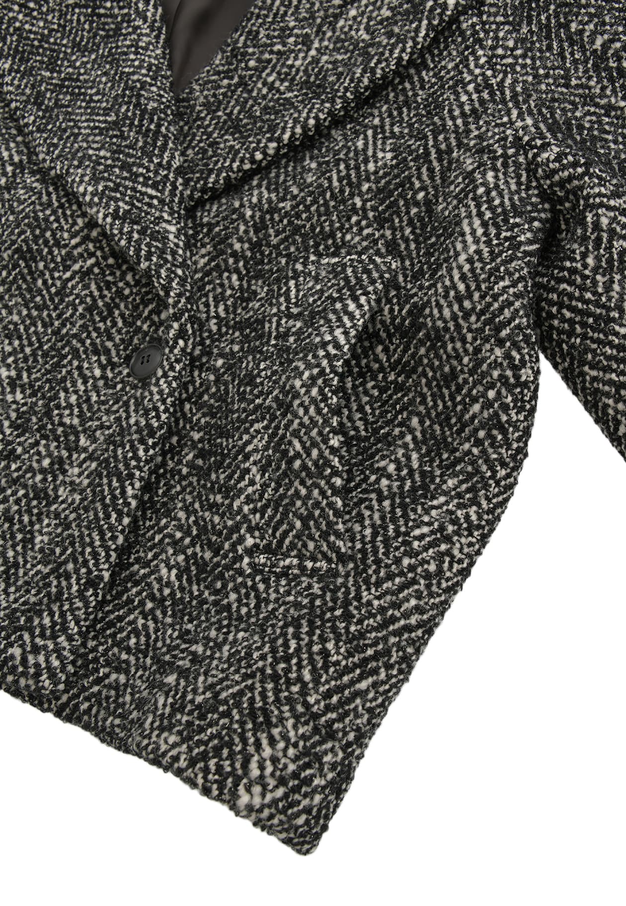 上品な輝きと立体感、ラメツイードのショートコート。