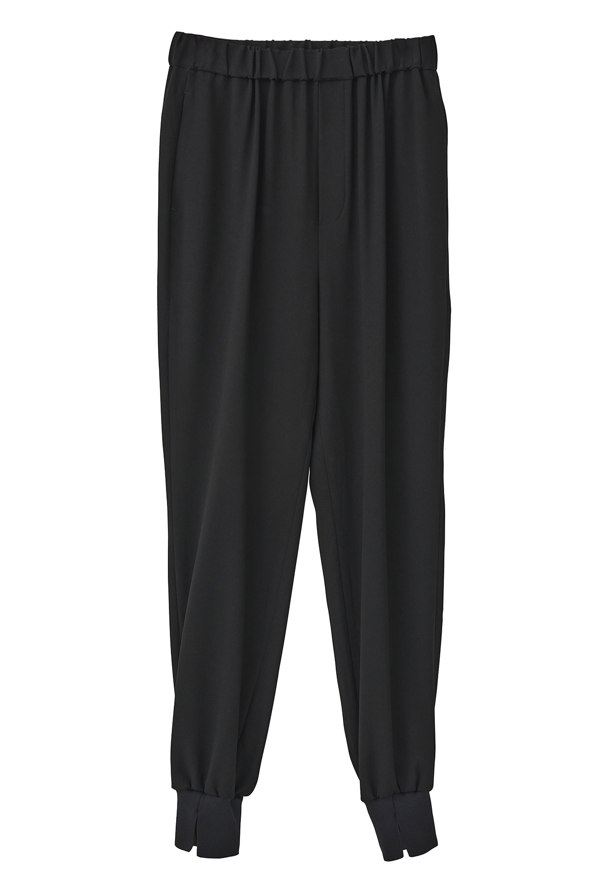 トリアセ混のバックサテンジョーゼットを使用したジョガーパンツです。
