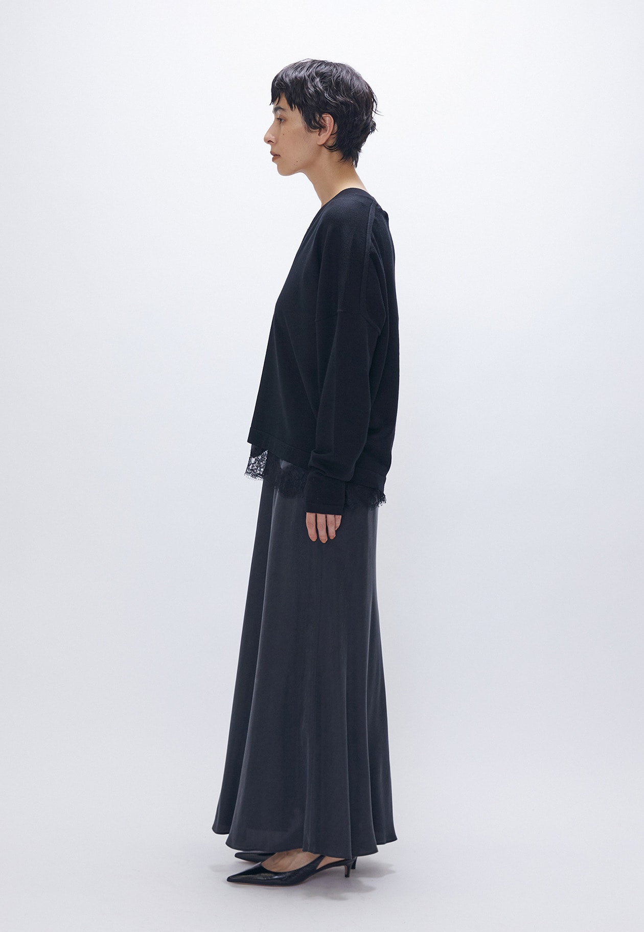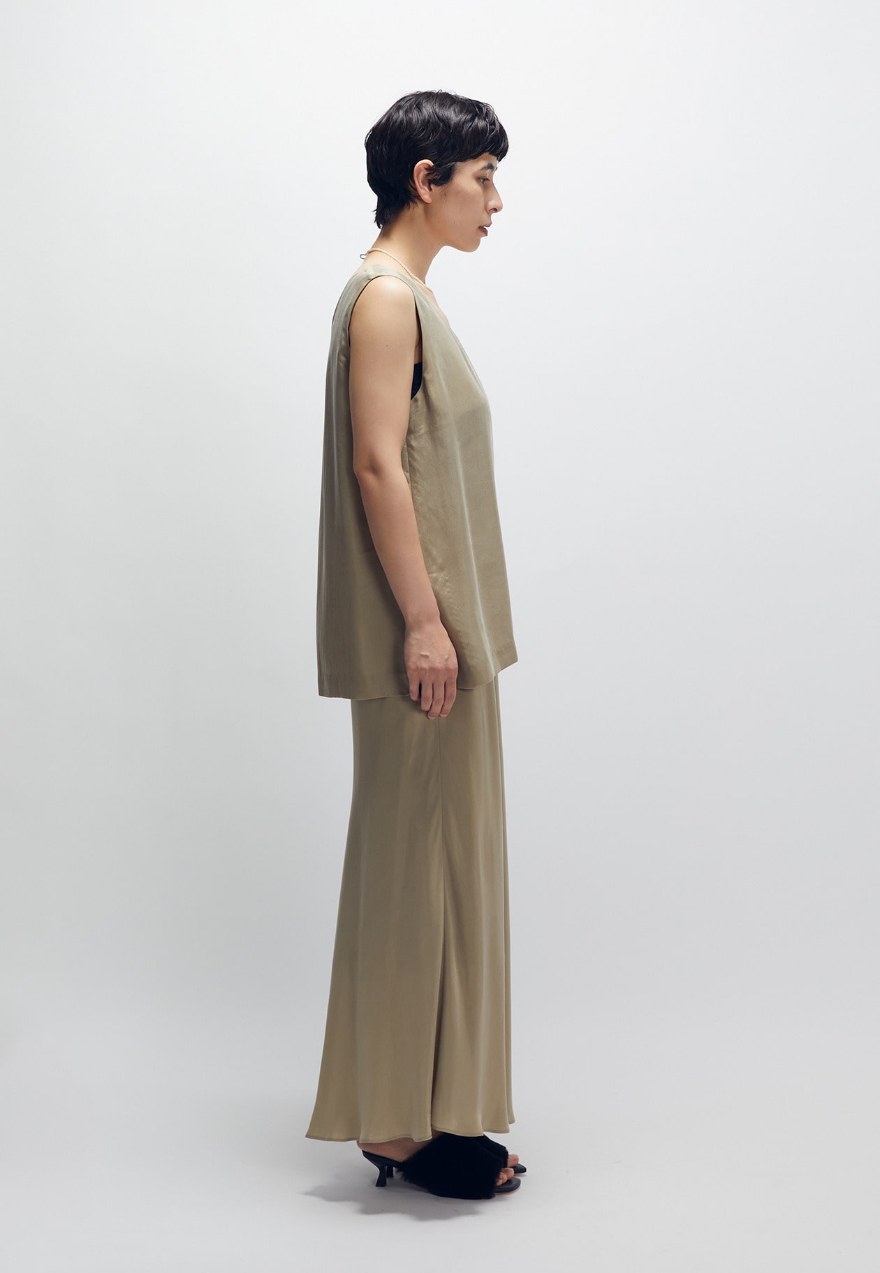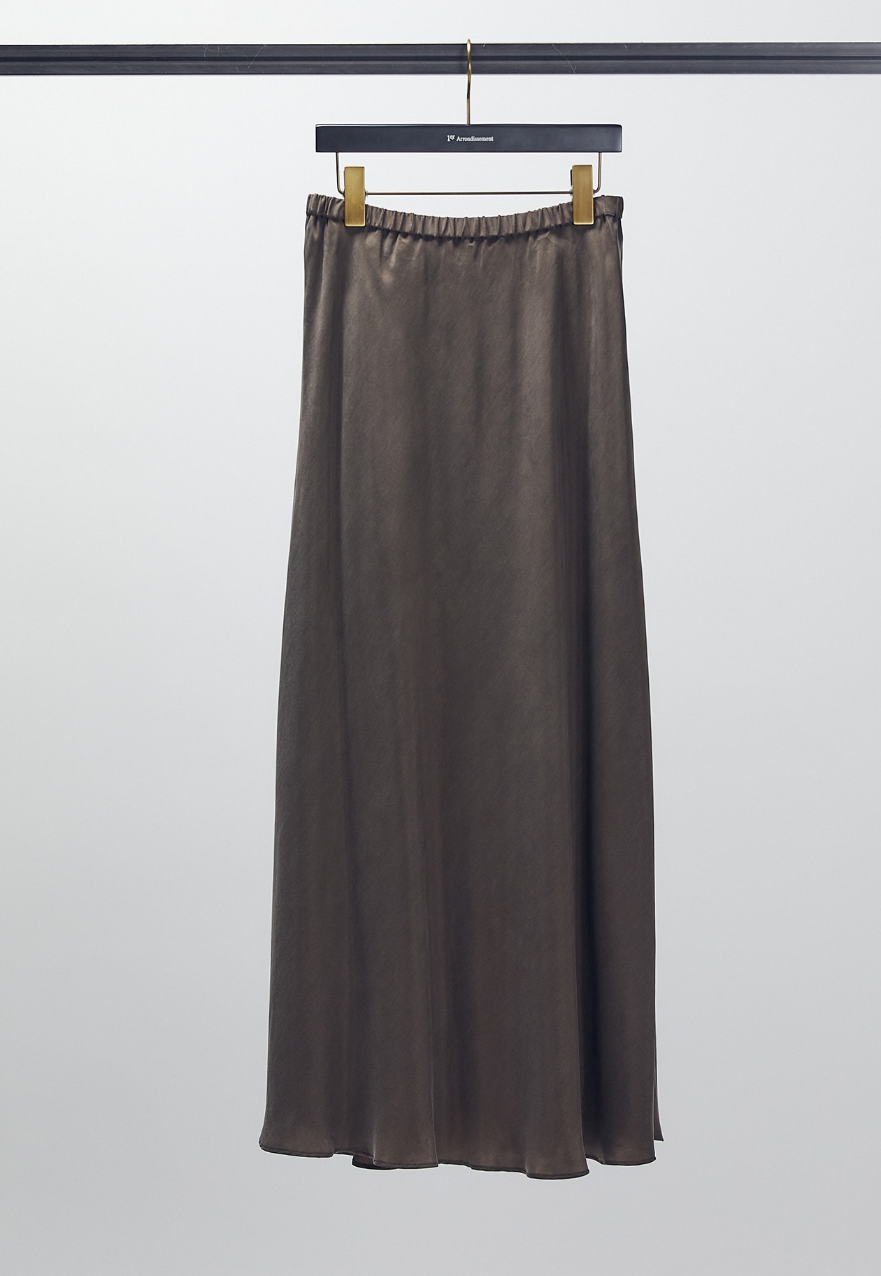 ラフに合わせても決まる、揺れるような落ち感のバイヤスフレアースカートです。