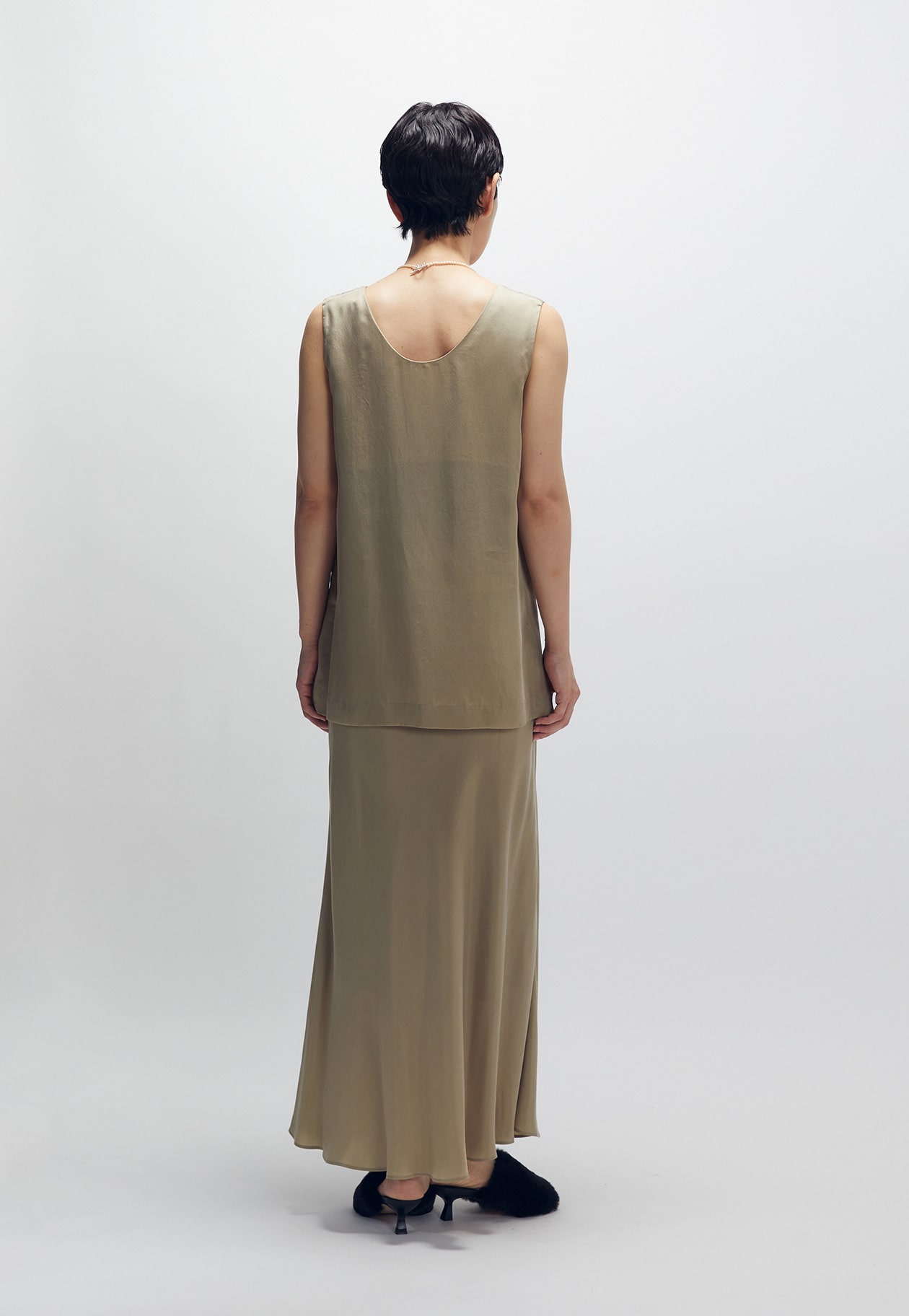 マットな光沢ととろみのあるキュプラの生地を使用。
