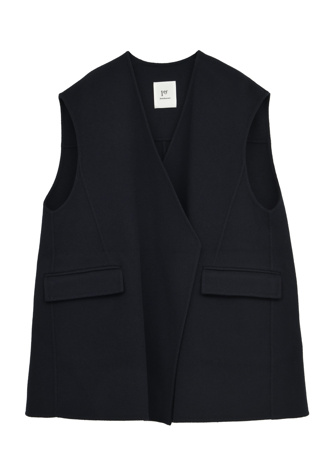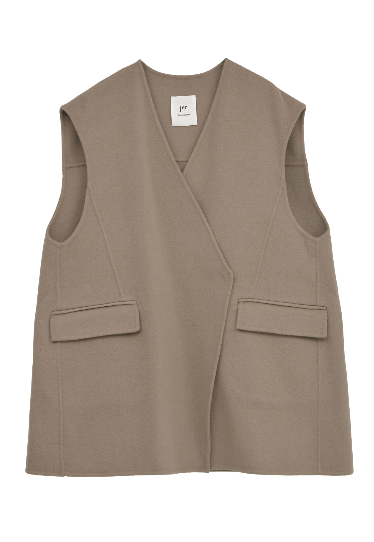 スーパー120’sの上質なウールを使用した、接結ビーバー素材のVネックノーカラージレ。