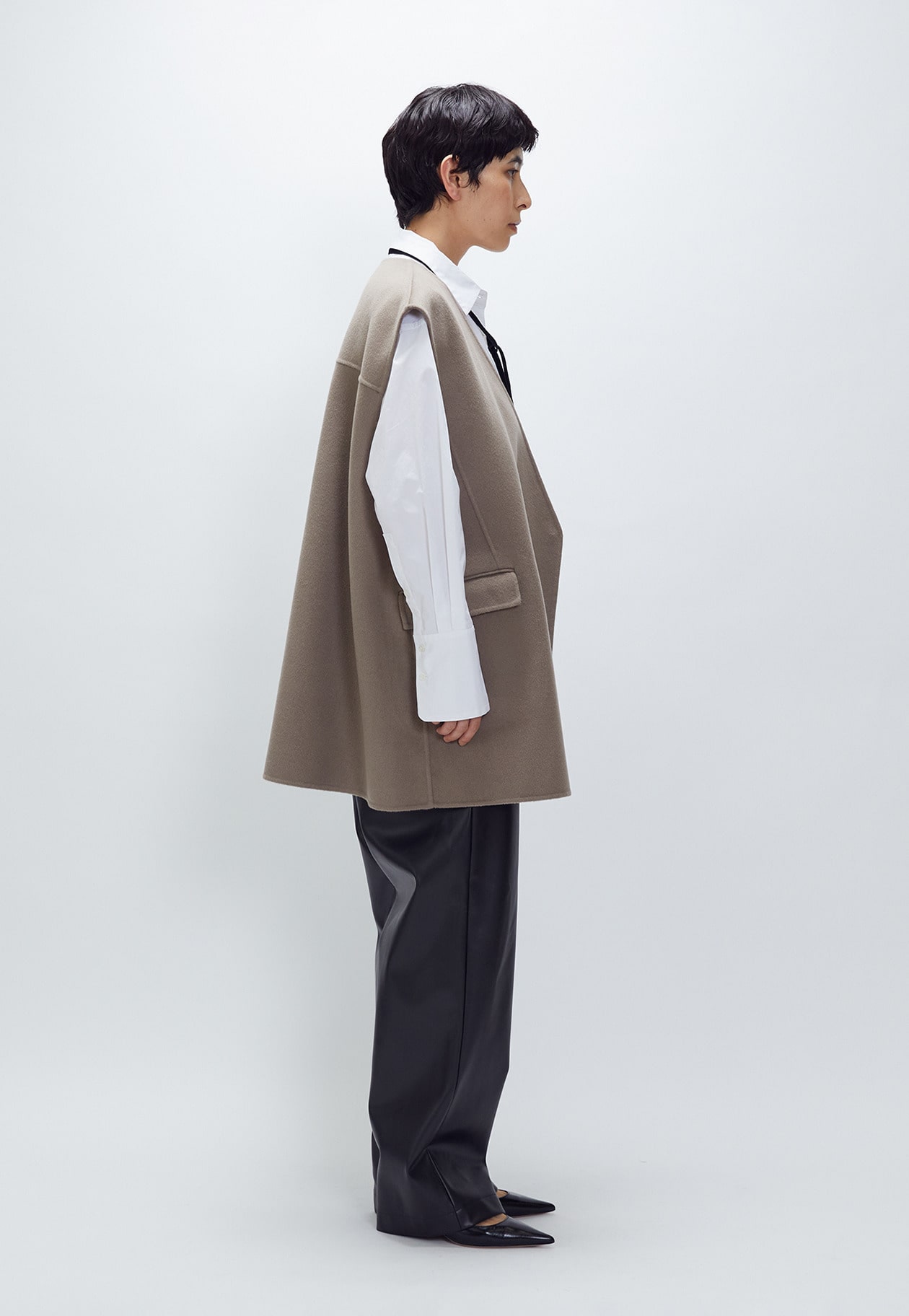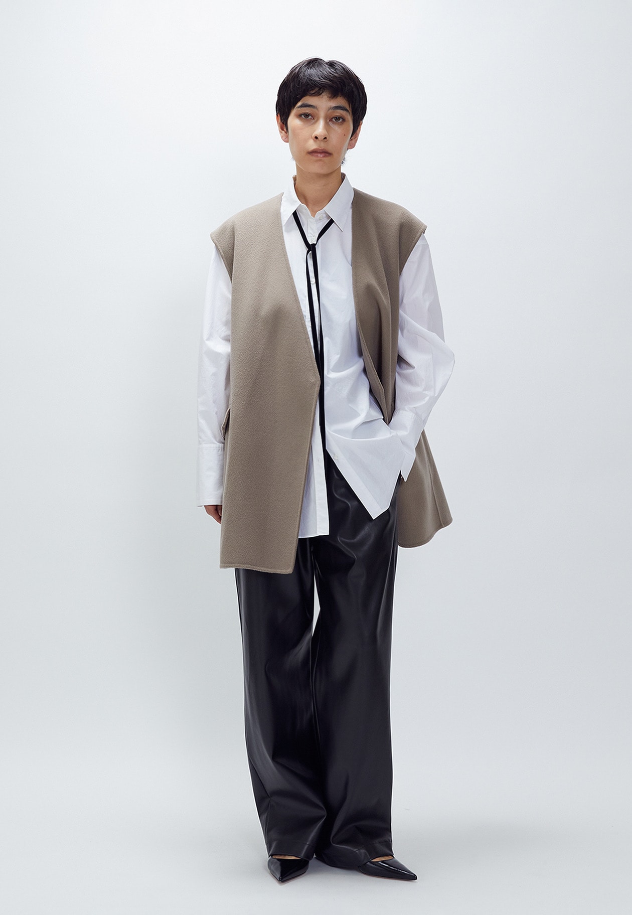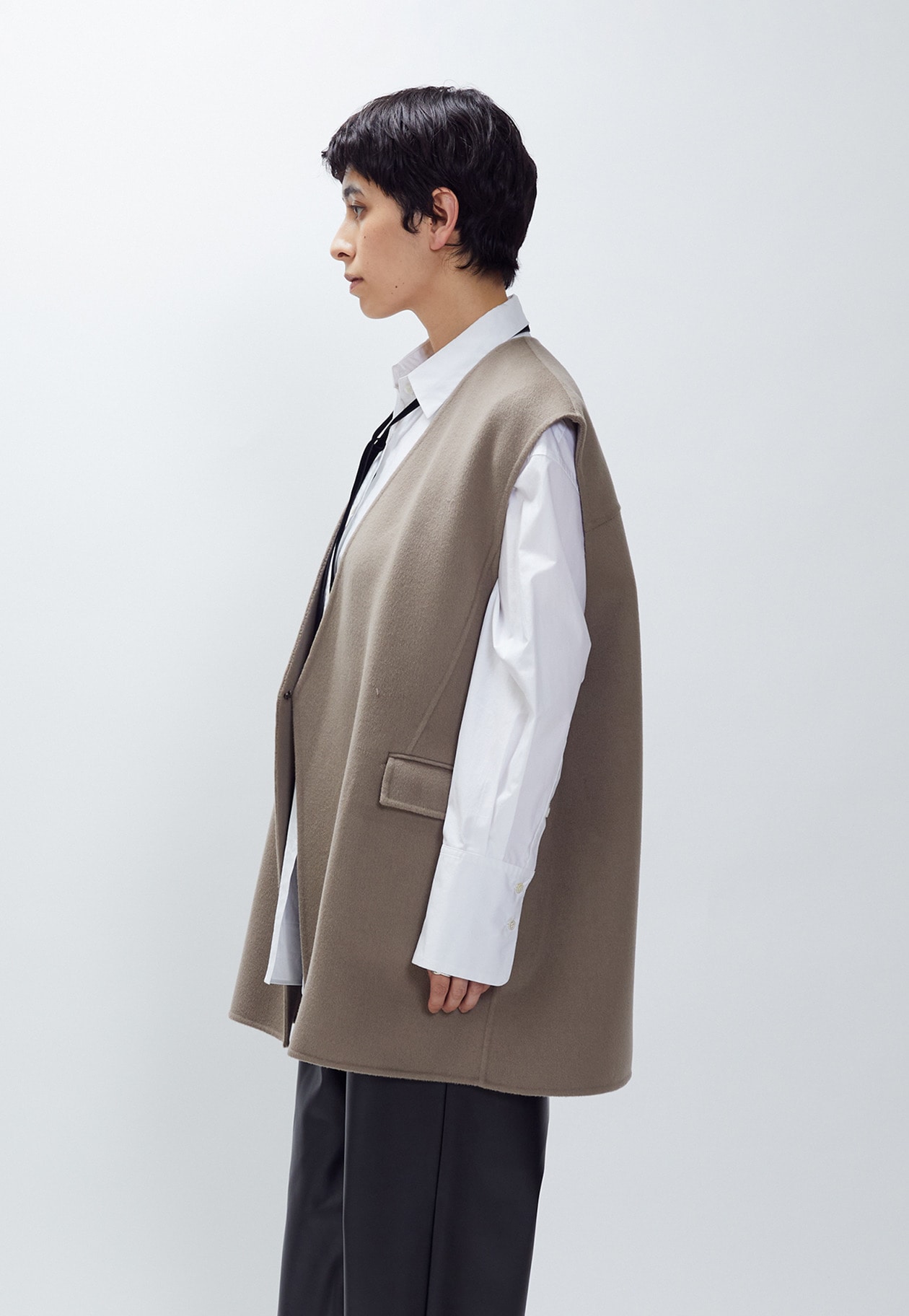 シャツやニットに重ねてももたつかず、バランスよく着られるデザインなので、秋冬のスタイリングに幅広く活躍すること間違いなし。