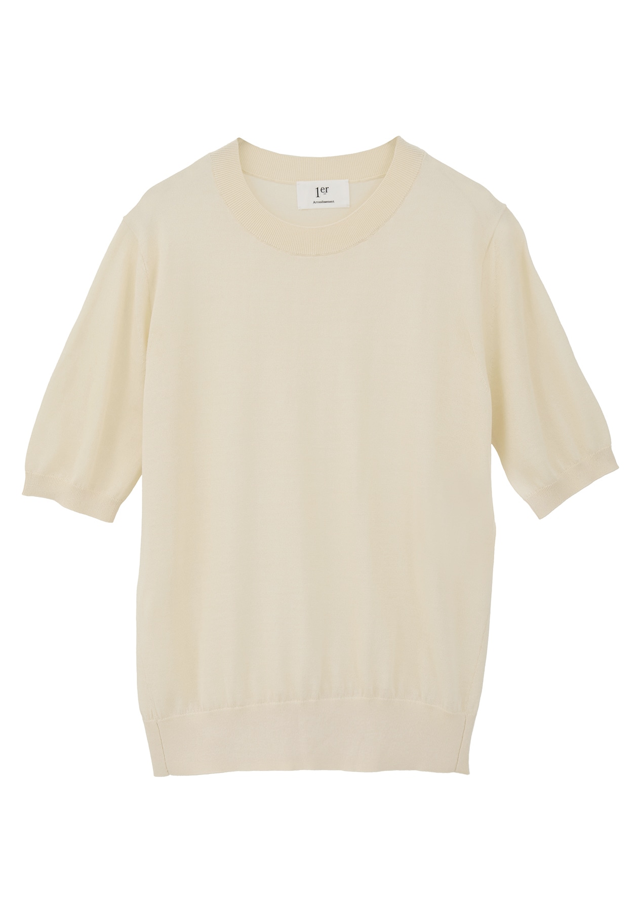ニットならではの高級感あるベーシックな半袖ニットでコーディネートを選ばす重宝します。