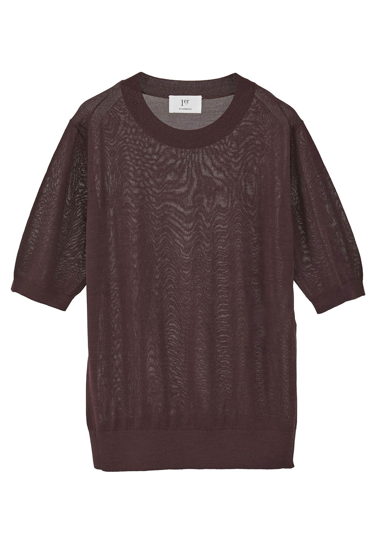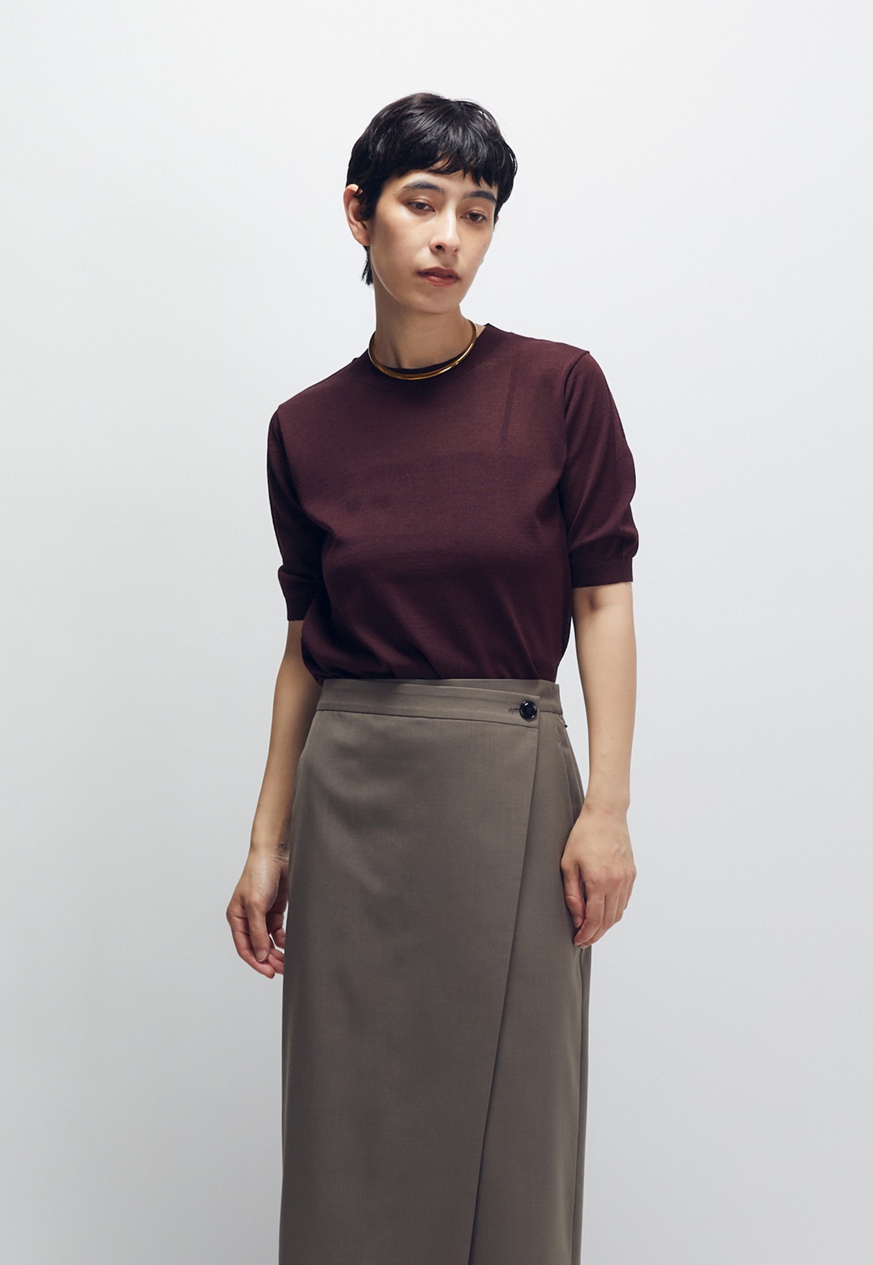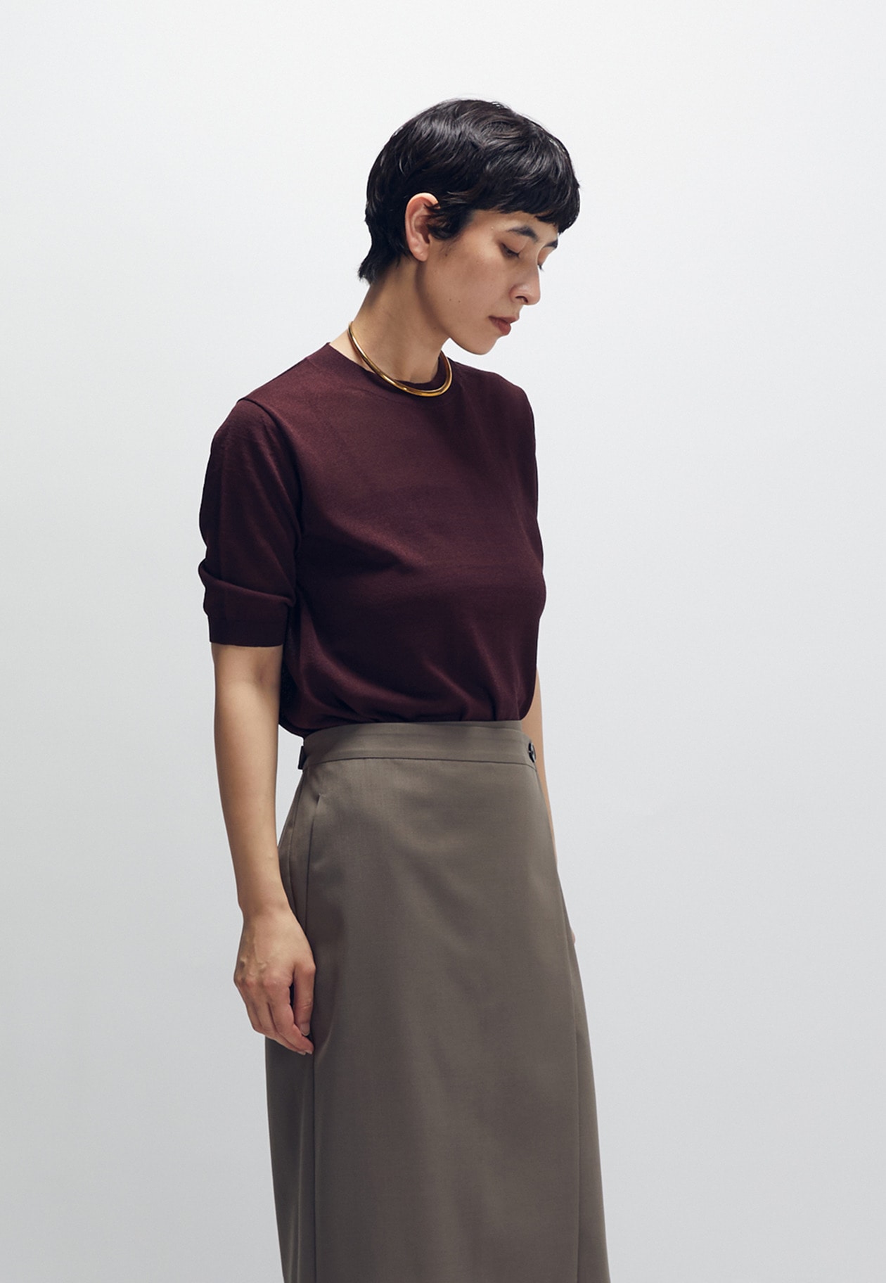強撚ウールアセテート糸を使用した、ドライタッチのニットTシャツ。
