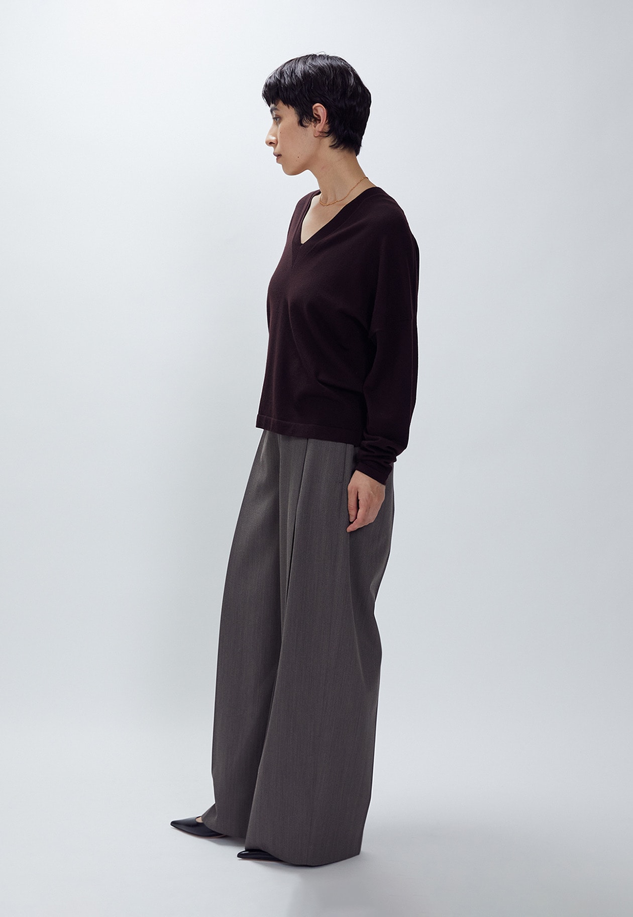 Super160’sクラスのスーパーファインメリノウールを使用した、上品なVネックニット。