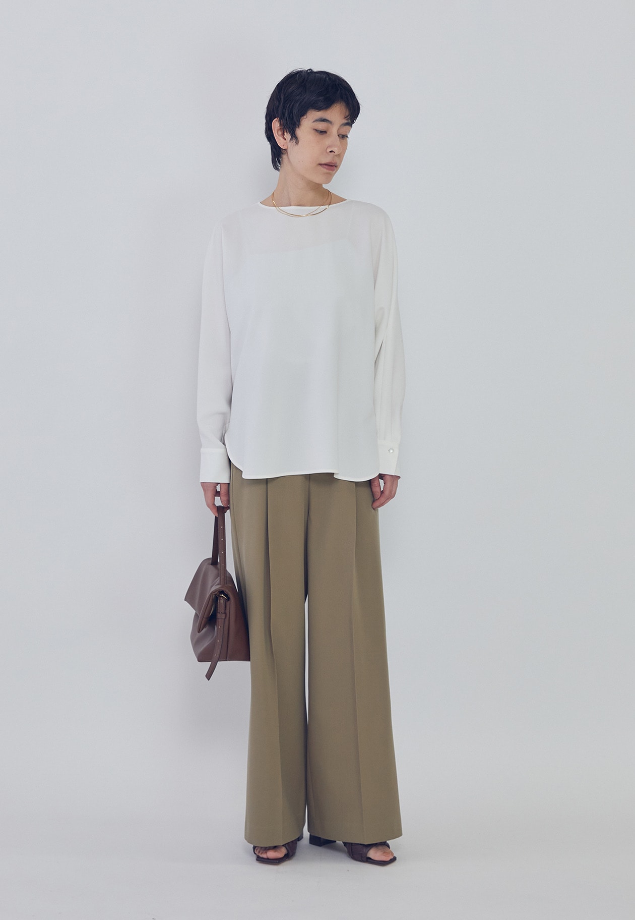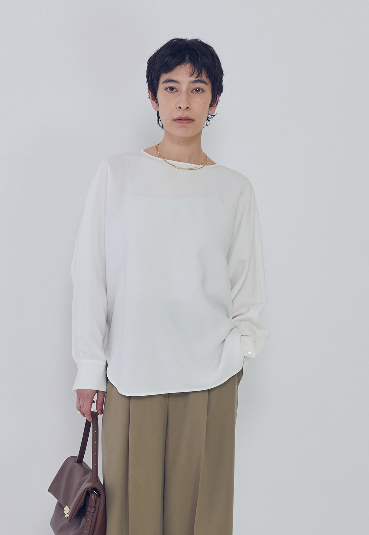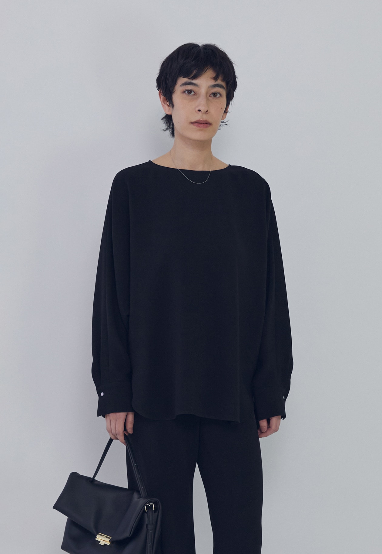 ふくらみ感と美しいドレープを兼ね備えた、アセテート混の上質な素材を使用したドルマンブラウス。