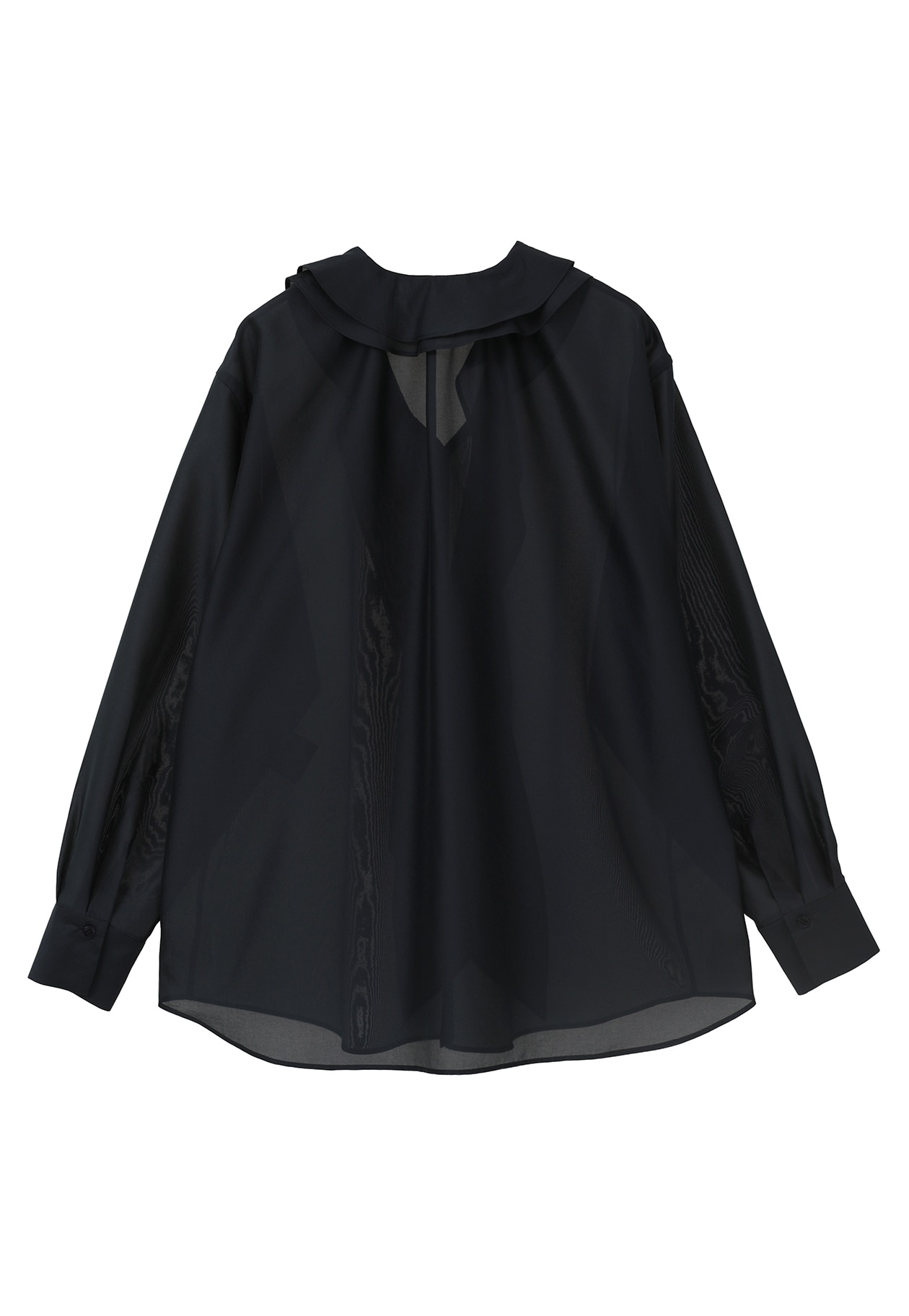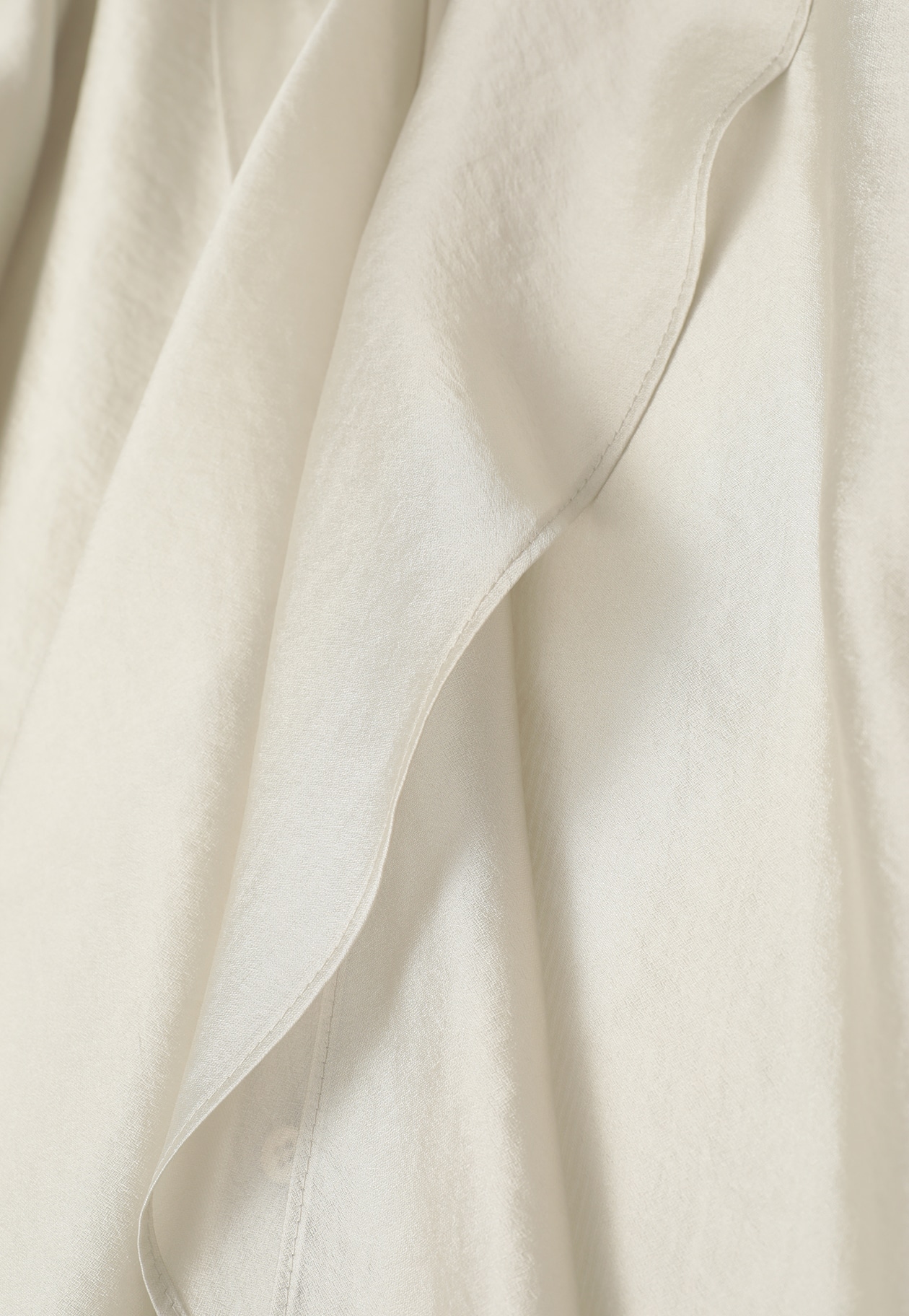 首元には2枚仕立てのラッフルをあしらい、顔まわりをやさしく華やかに演出。