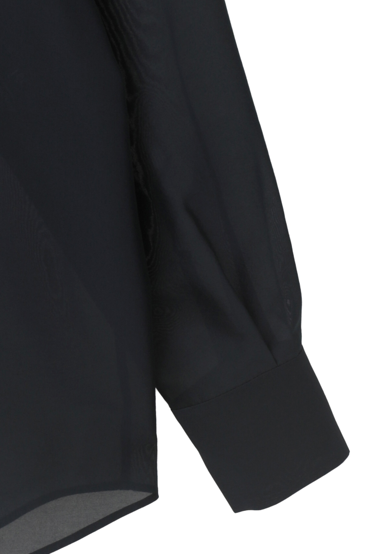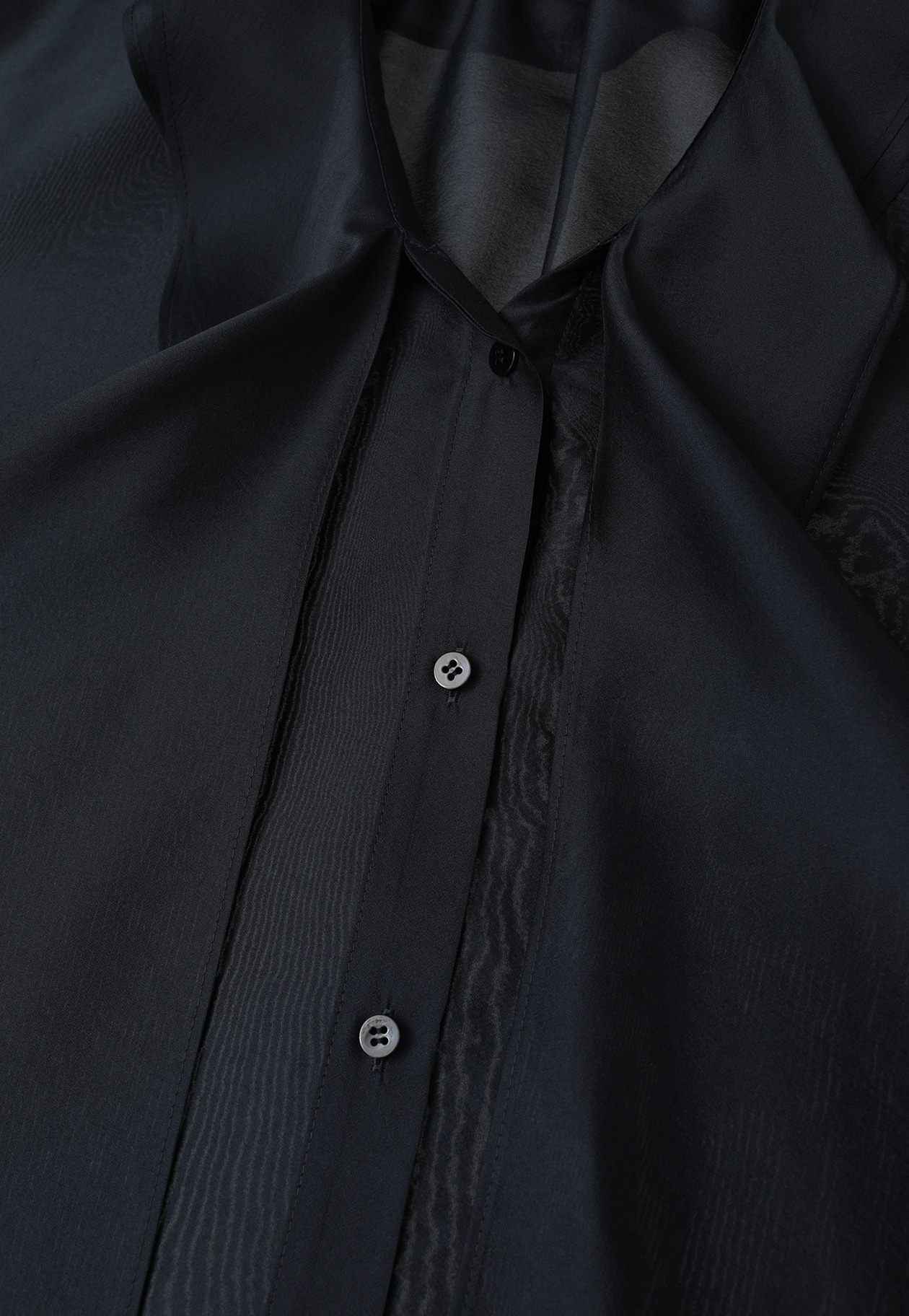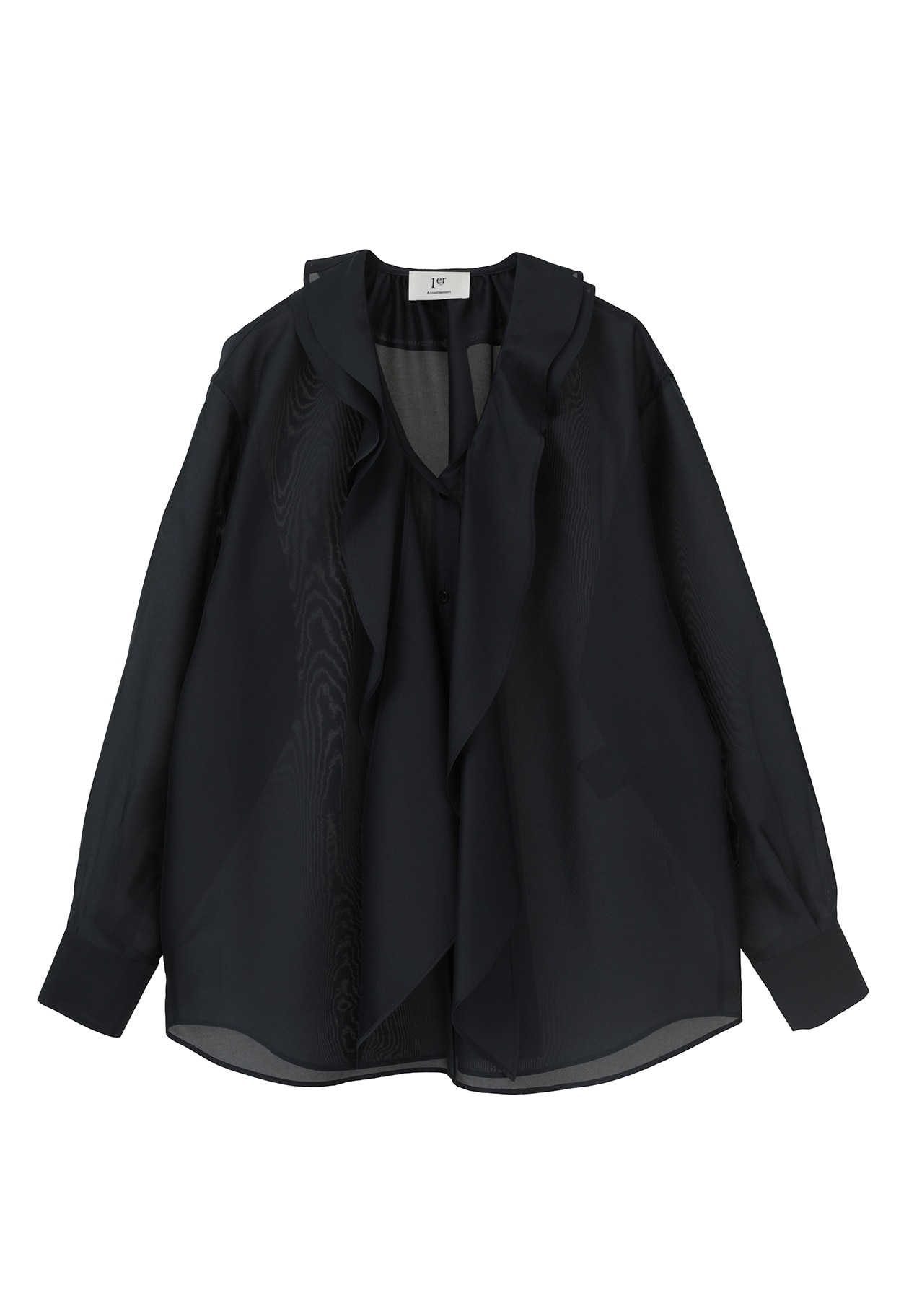 ラッフルボウタイが印象的で、一枚で着映えするブラウス。