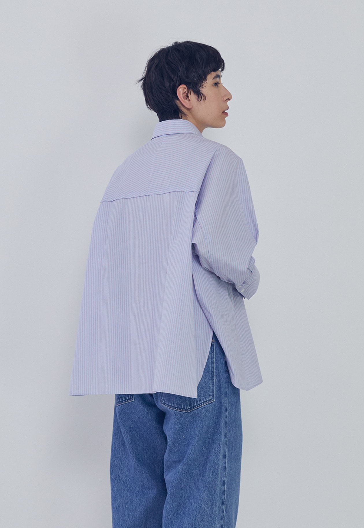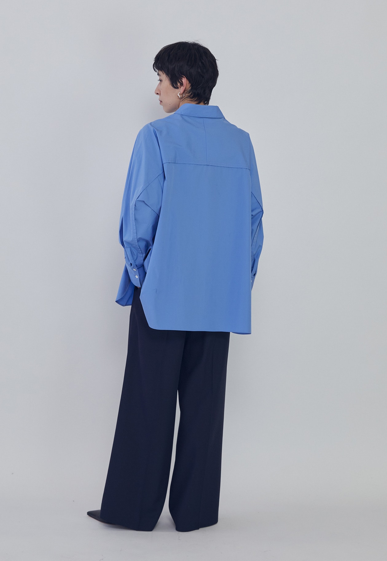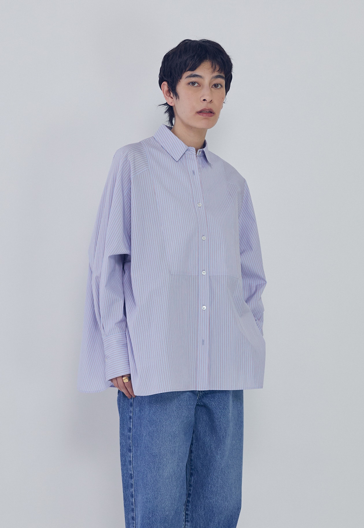 細番手のコットンブロードの質感を活かした、オーバーサイズシルエットのシャツ。