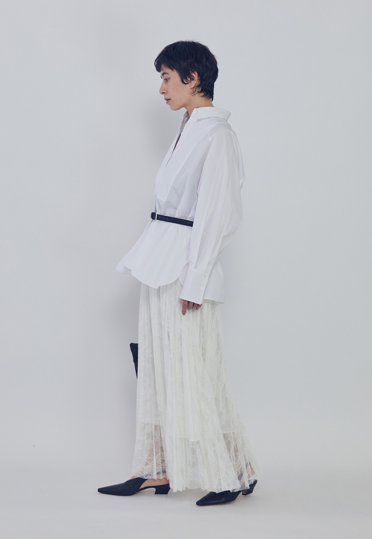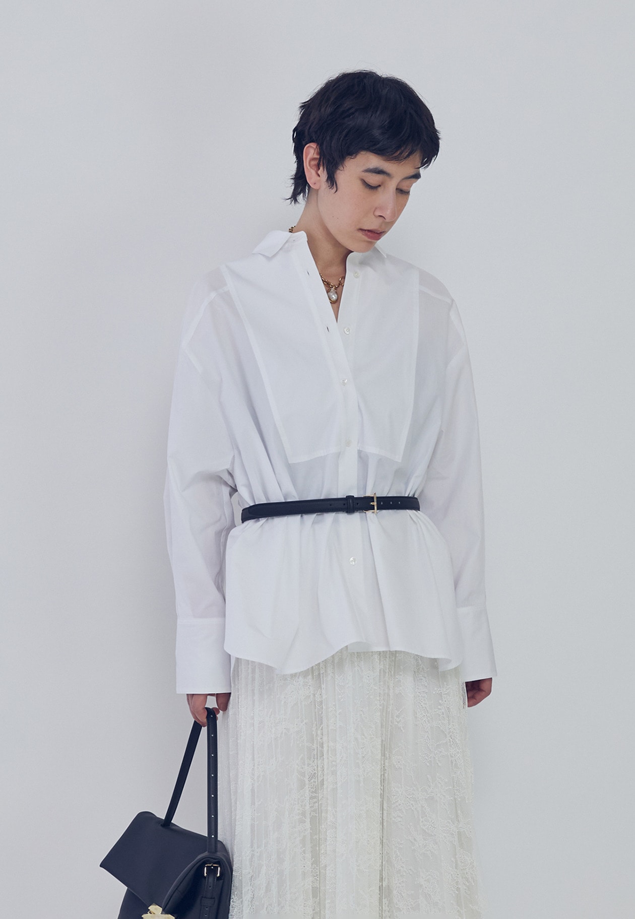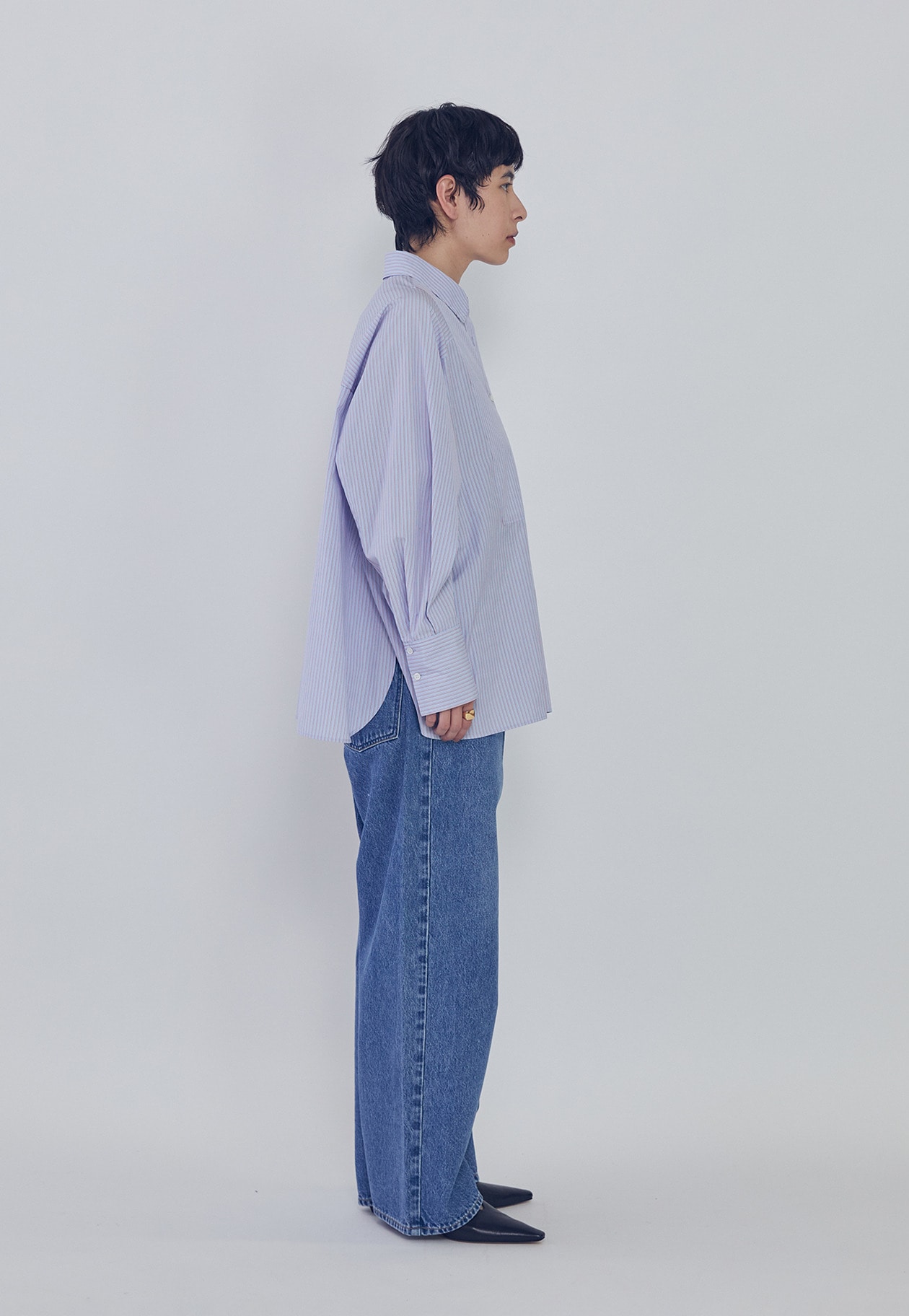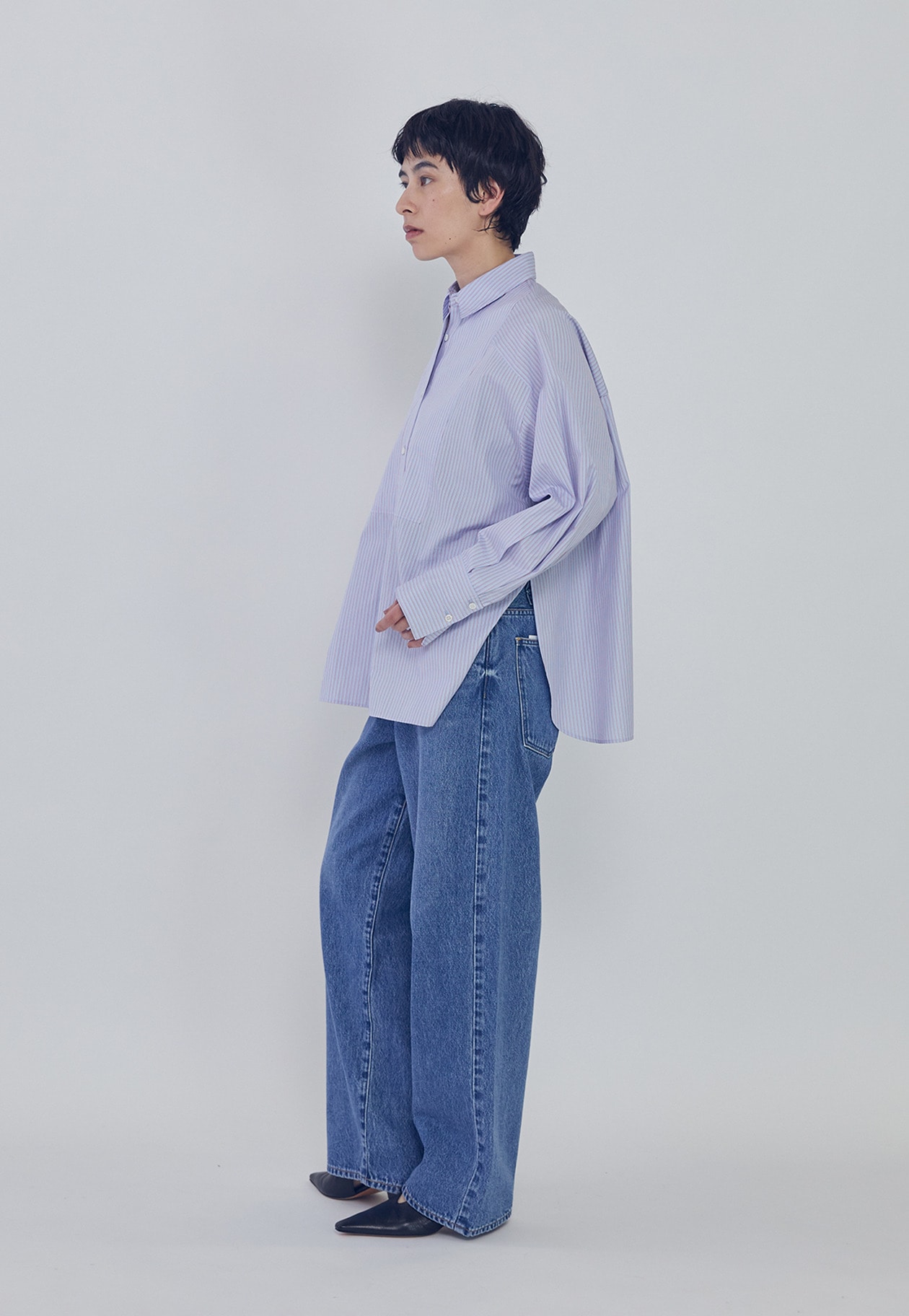 細番手のコットンブロードの質感を活かした、オーバーサイズシルエットのシャツ。