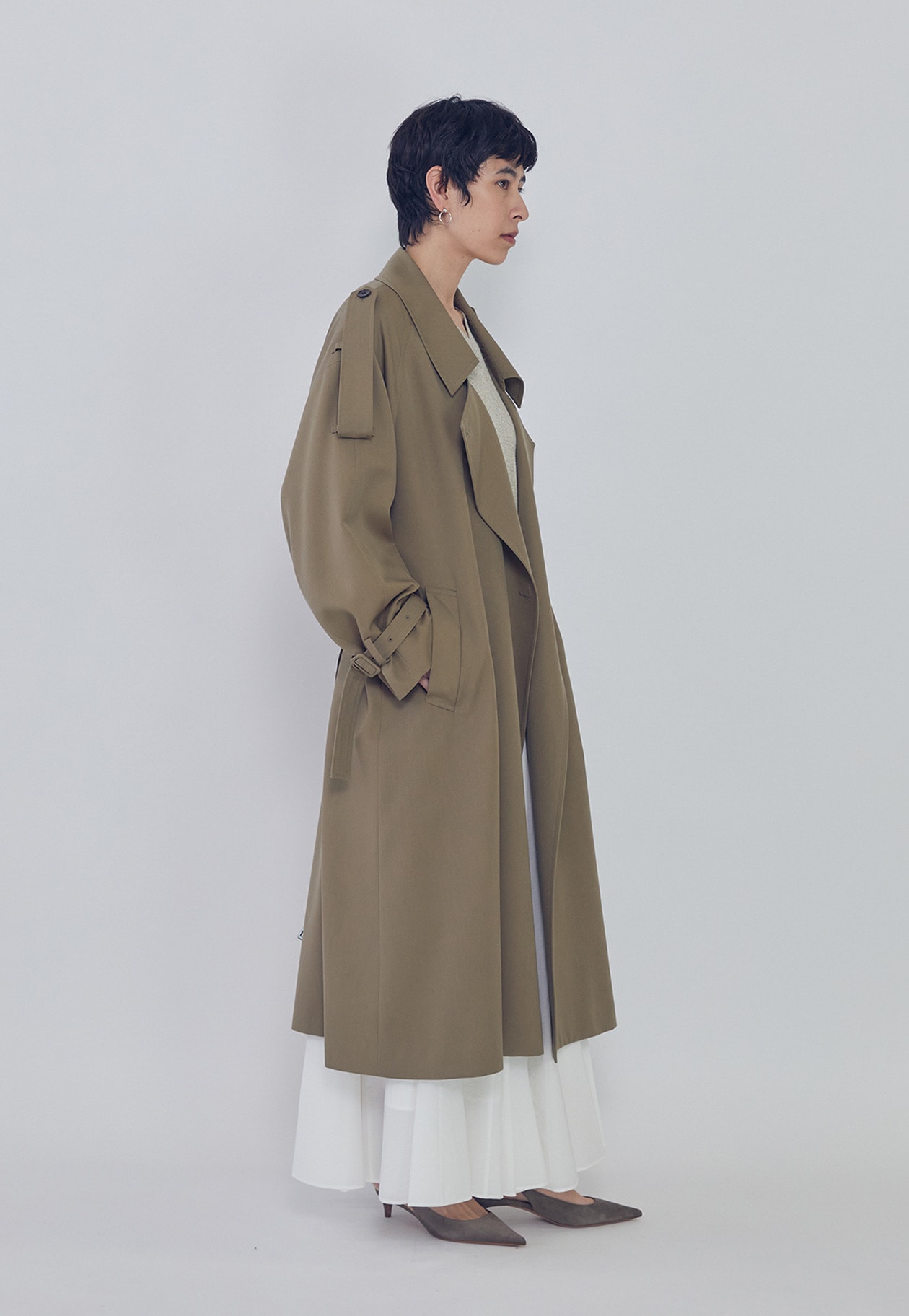 羽織るだけで都会的で洗練された、大人の佇まいが完成するトレンチコート。