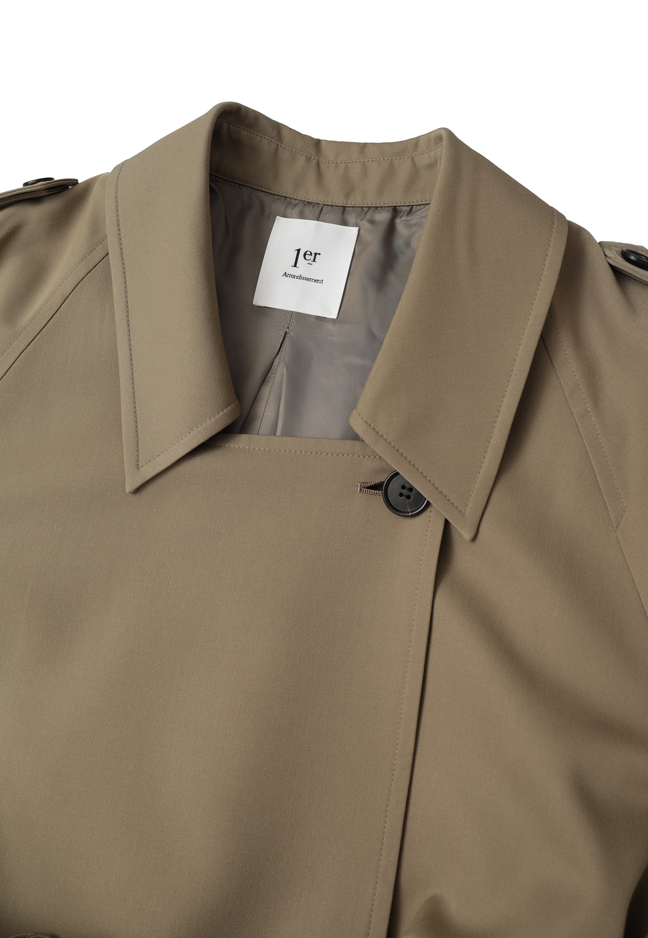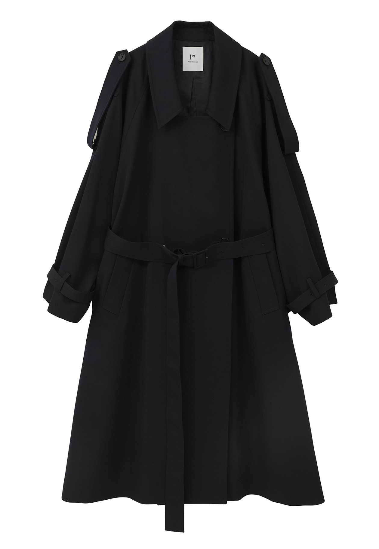 エポレットや前下がりの襟がほどよくモードなアクセントに。