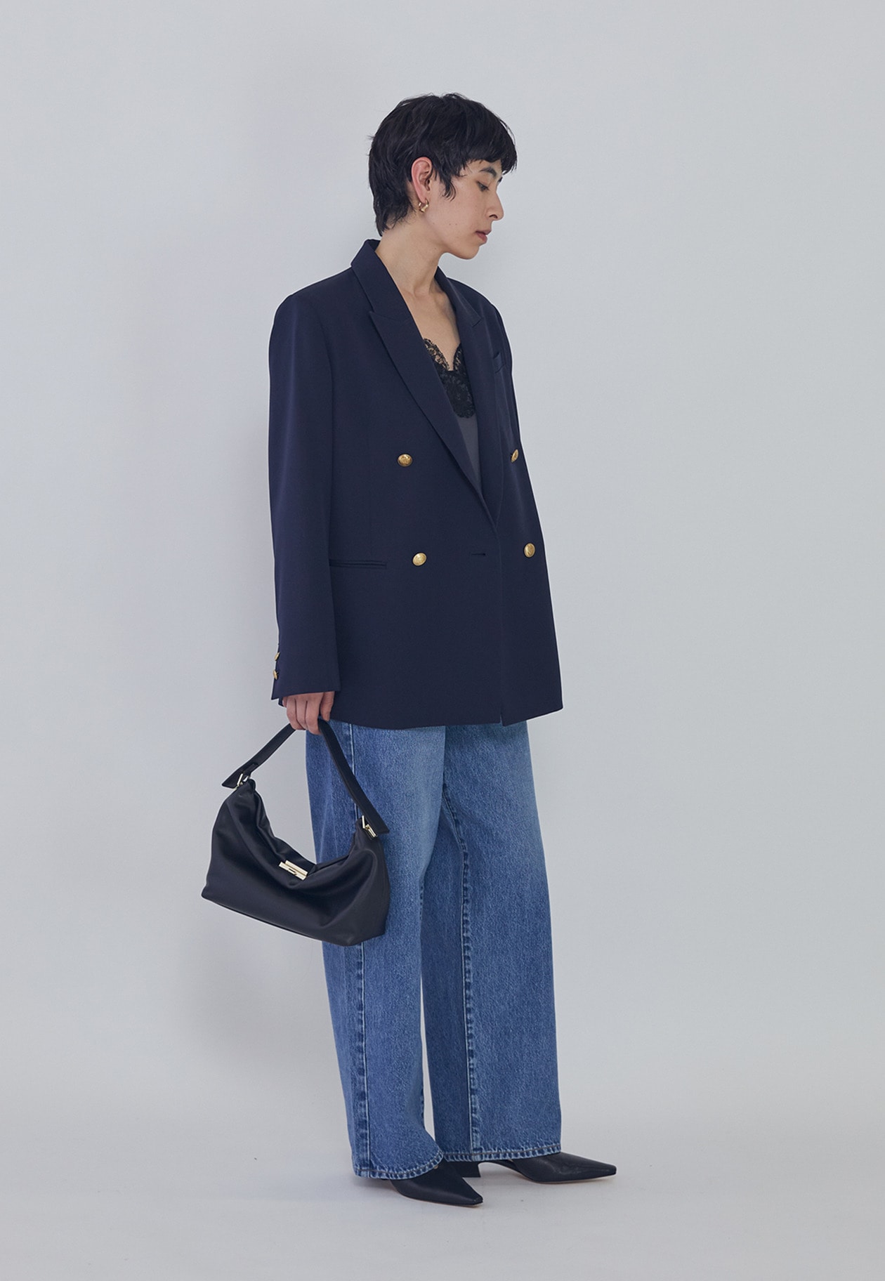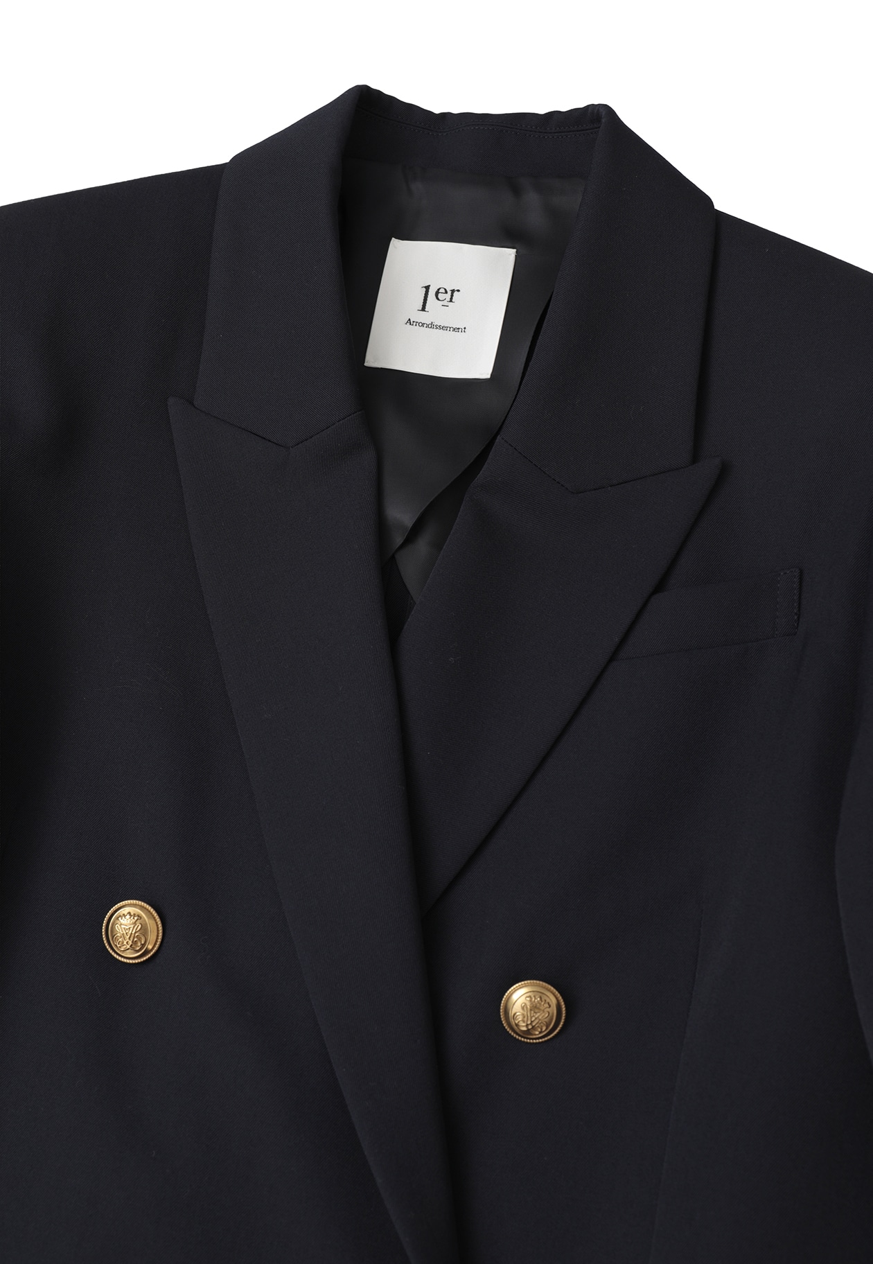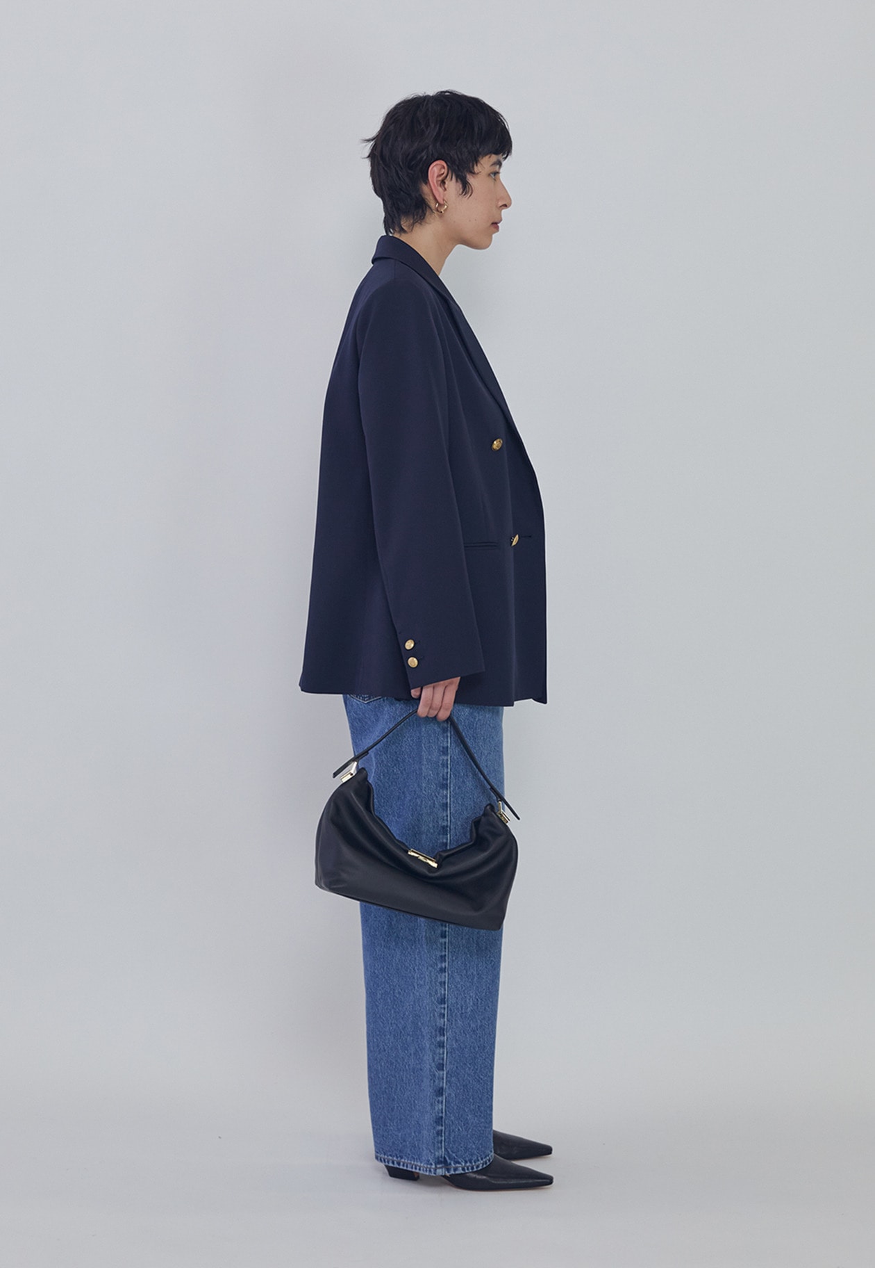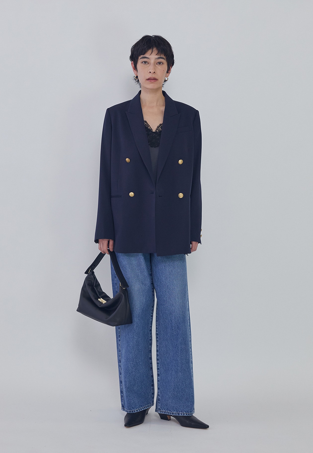 デザインは、柔らかく軽やかな着心地で、気負わず羽織れる金ボタンジャケット。
