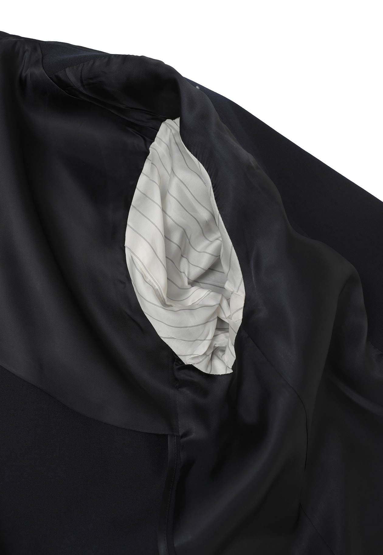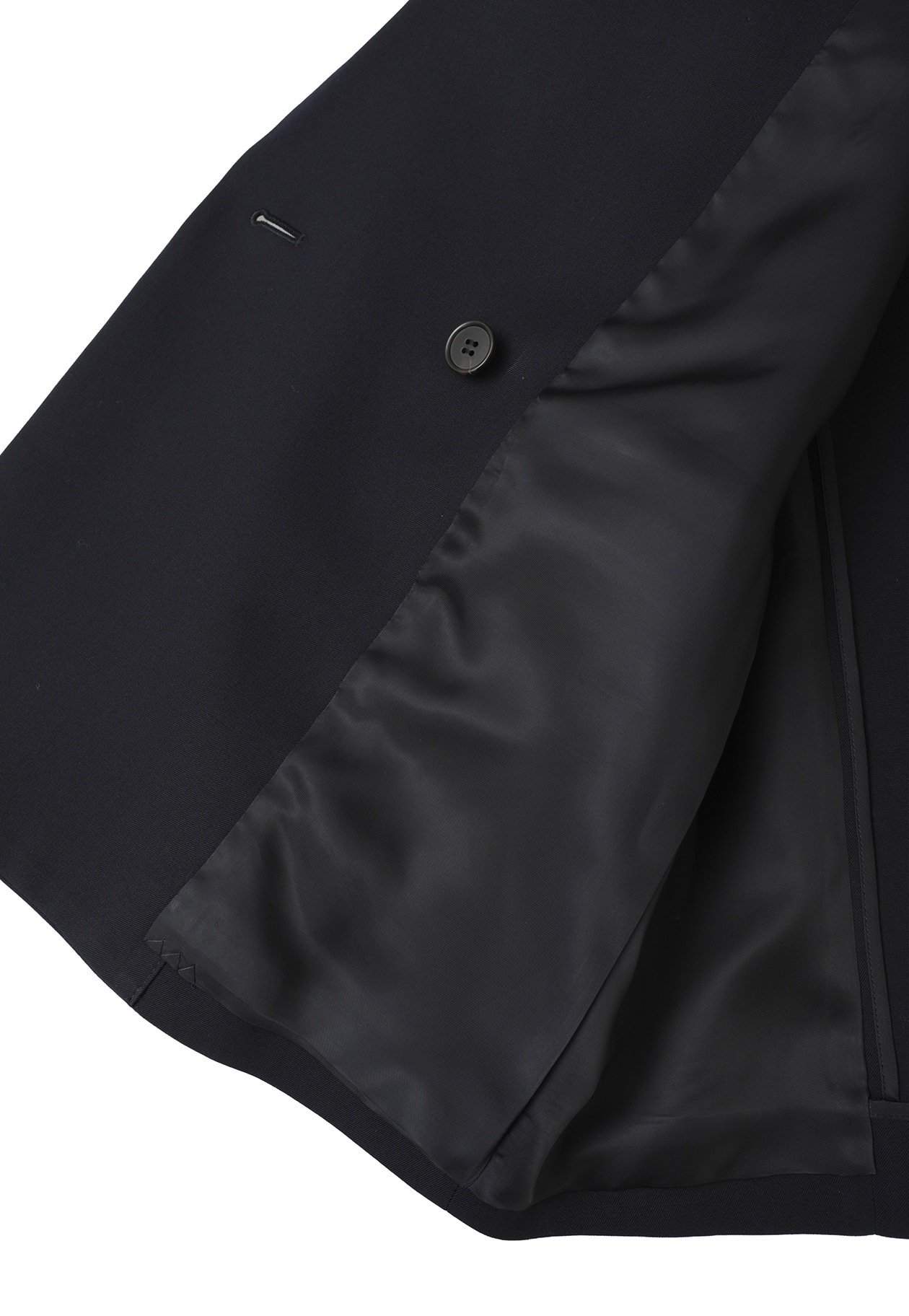 梳毛2/72の細番手糸を高密度に織り、ギャバジン特有の織り方によって、なめらかで美しい落ち感のある表情を生み出しています。