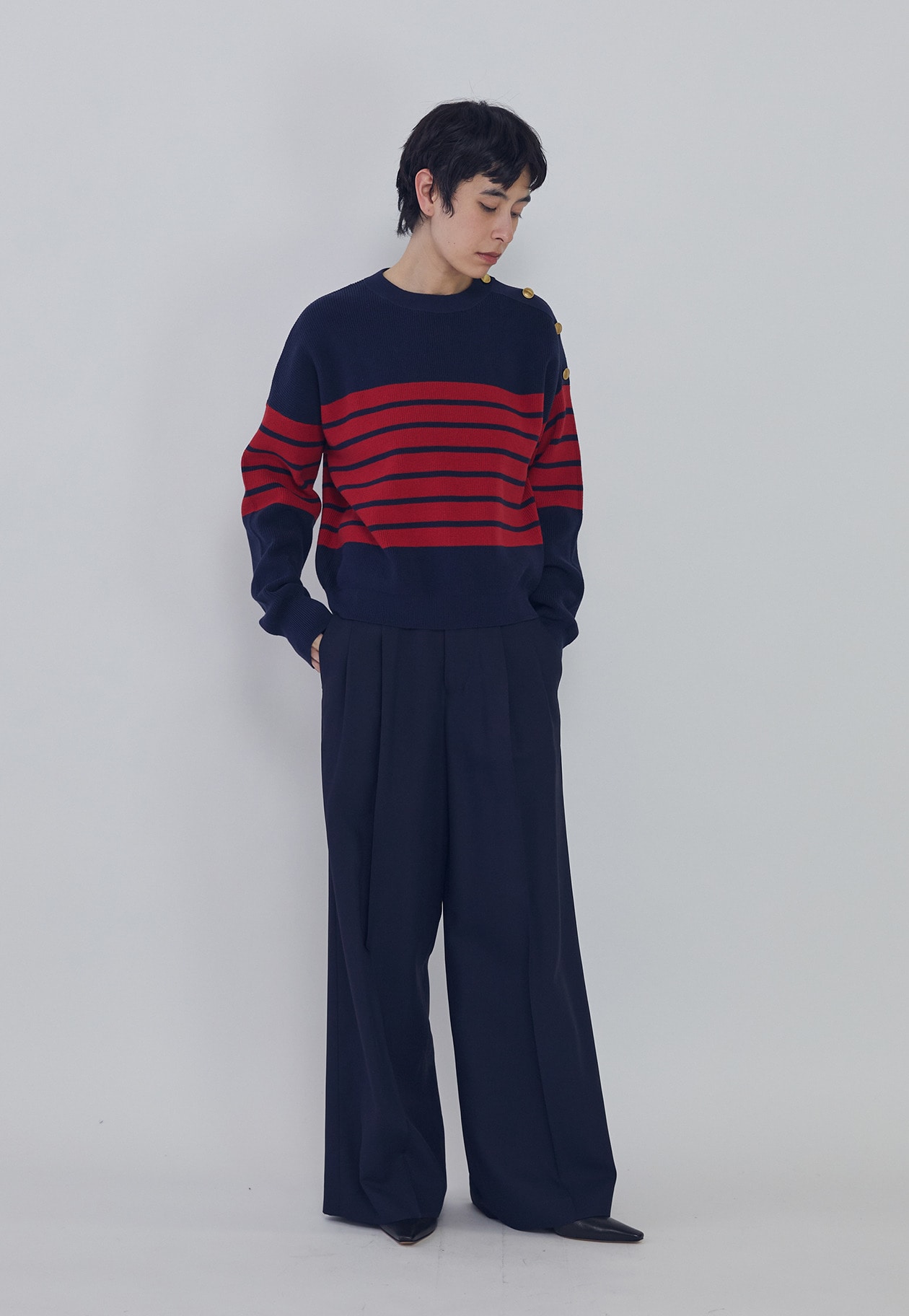 ボーダーニットやレースアップニットと合わせたマリンスタイルもおすすめです。