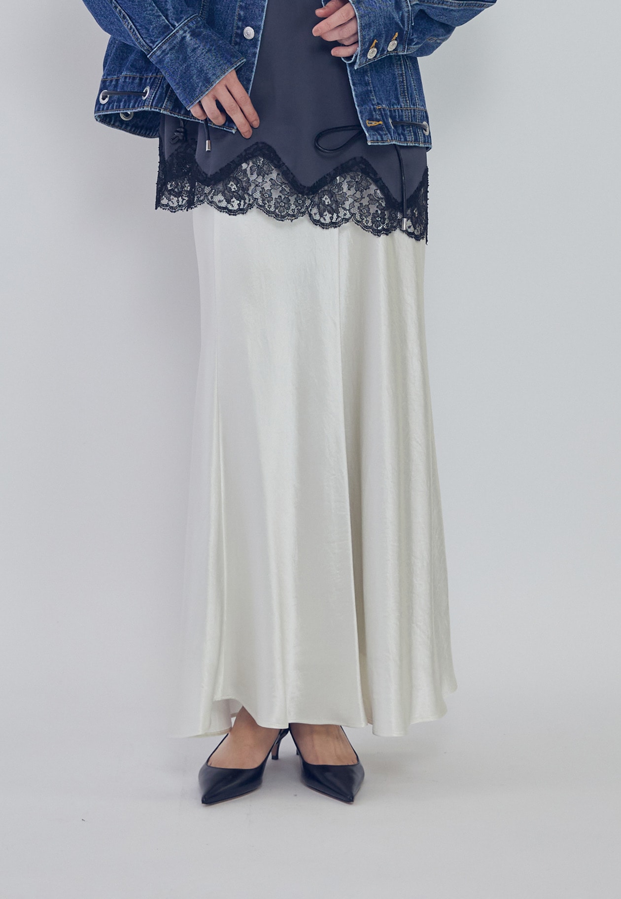 バイアス仕立てならではのしなやかな落ち感で、身体になじみやすく、タイトなシルエットながら動きやすい一枚です。