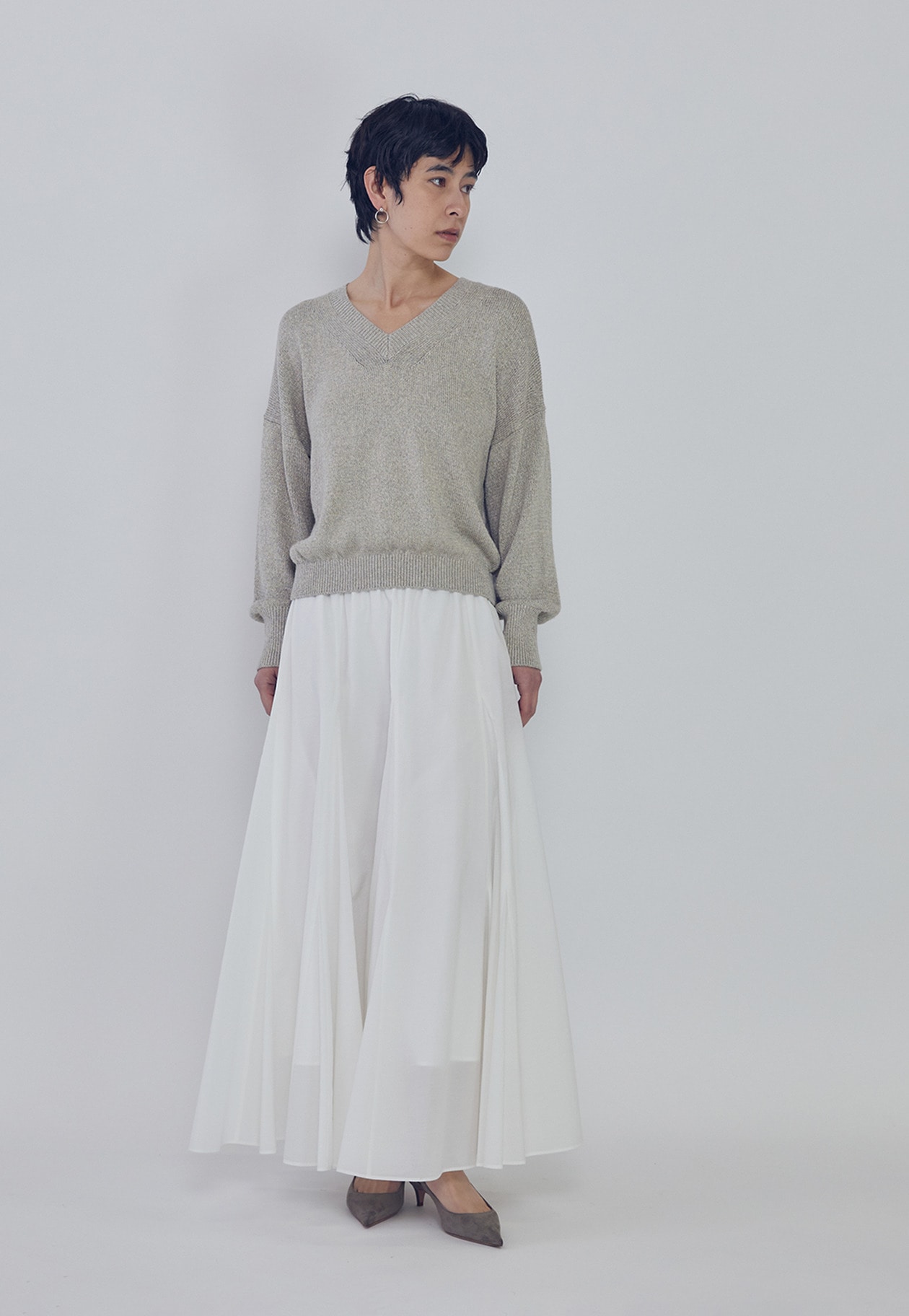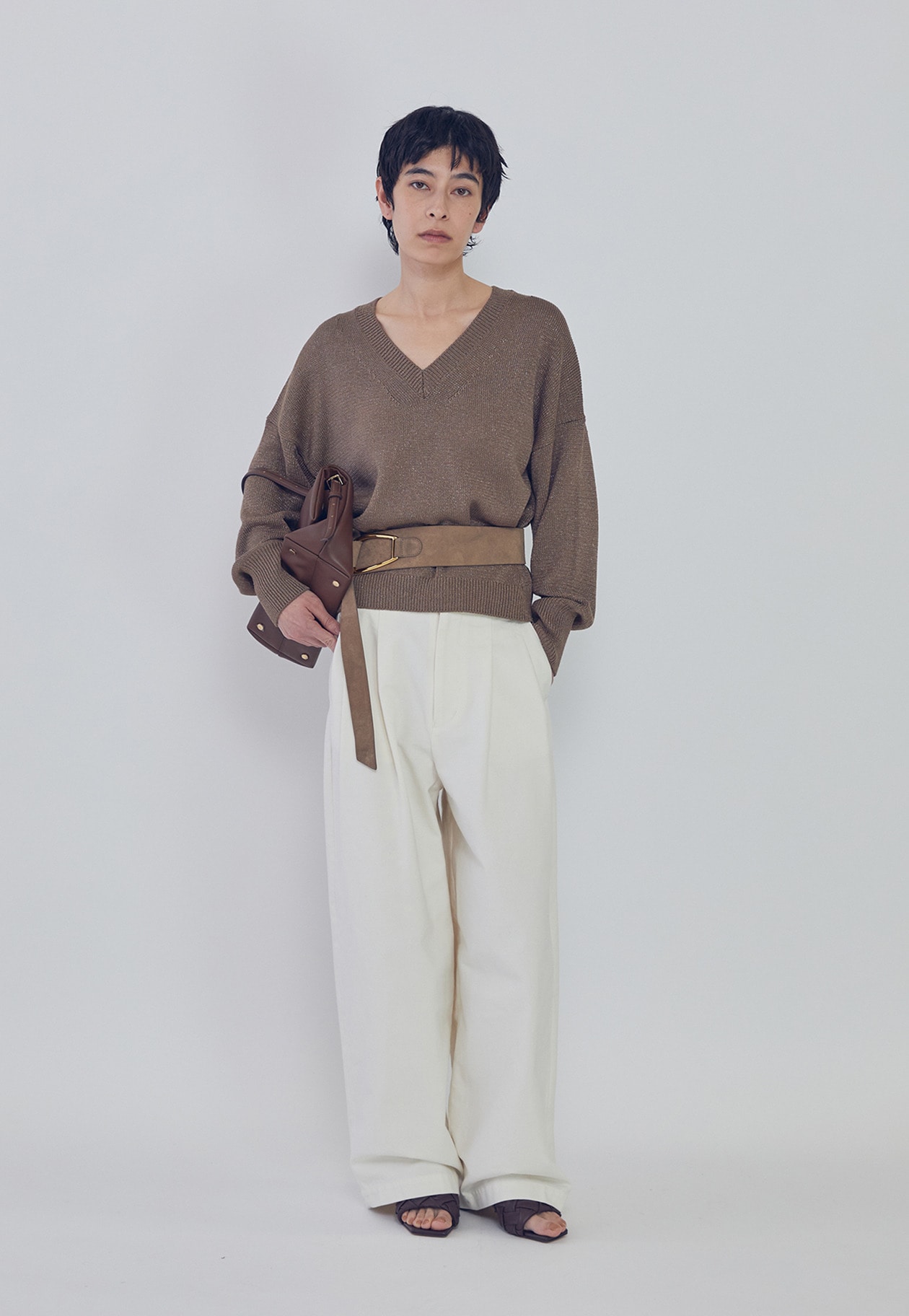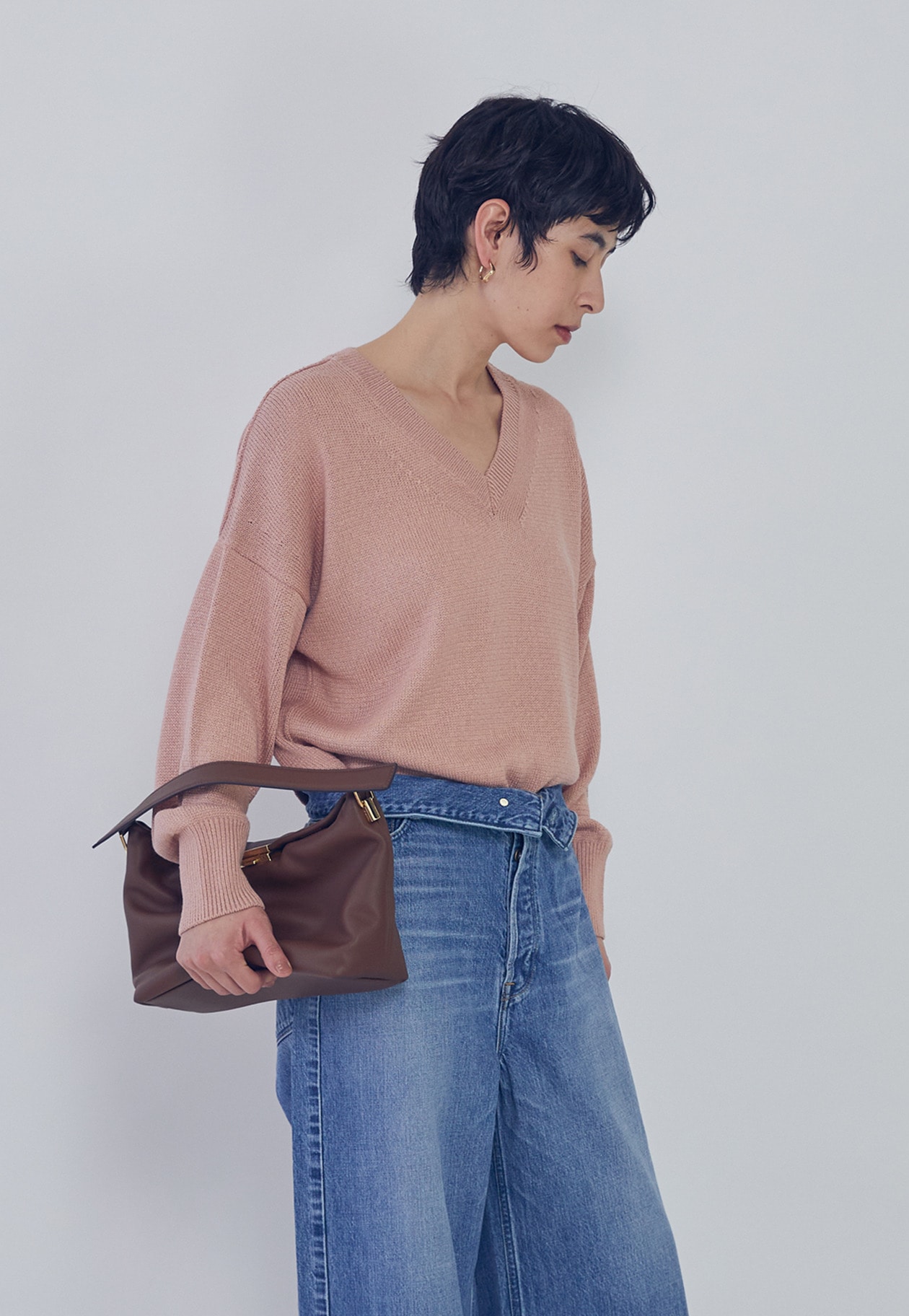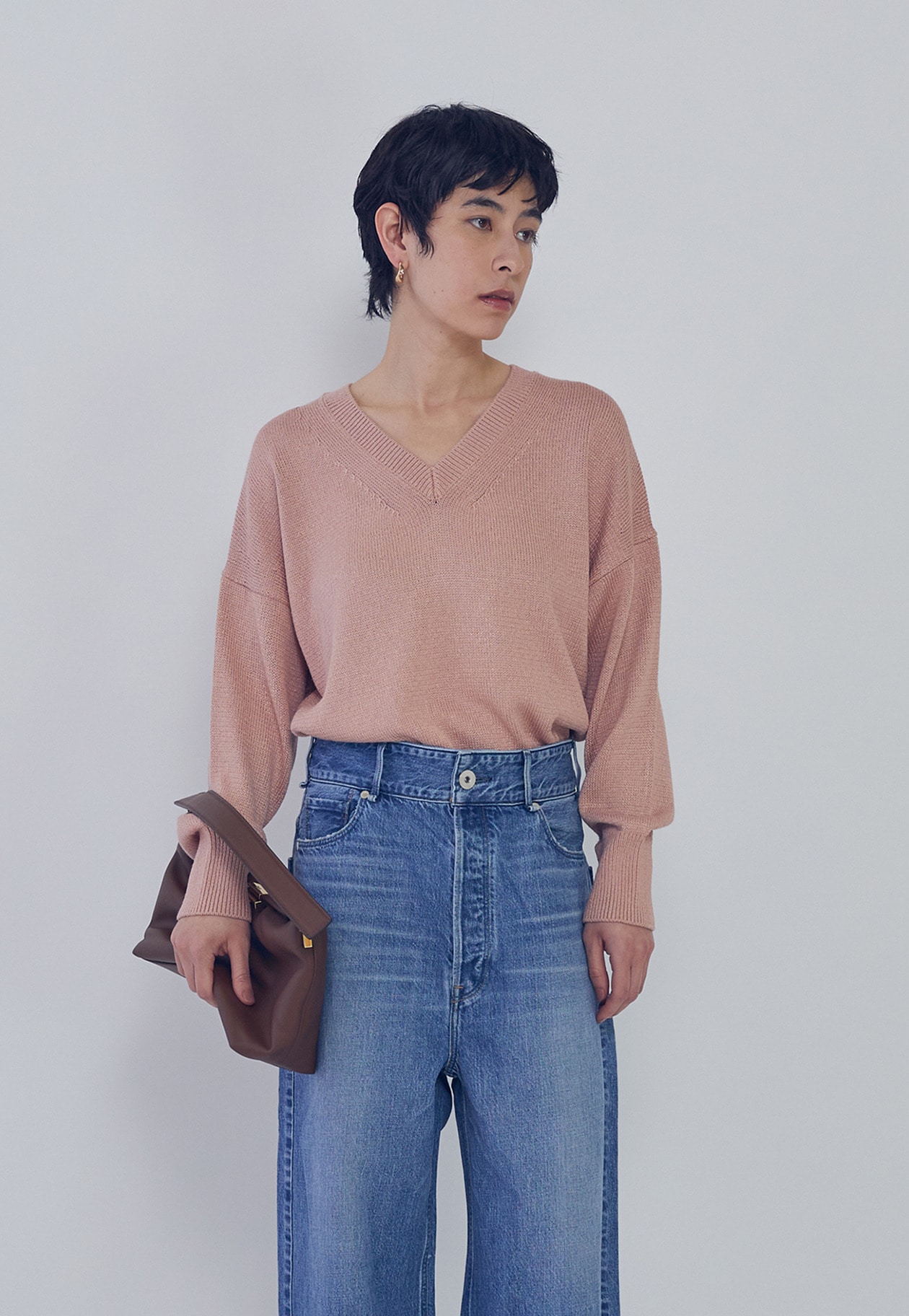 落ち感を活かしたフェミニンなVネックは、流行に左右されにくく長く愛用できるデザイン。
