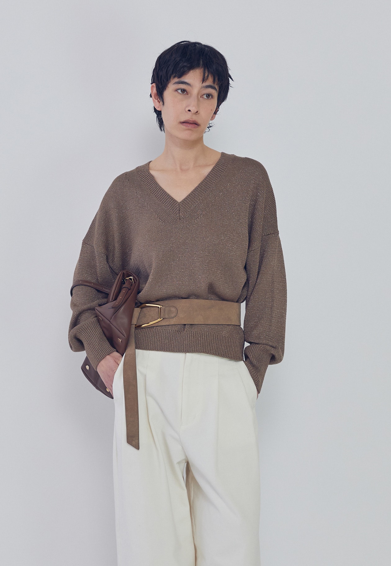 • ブライトニットVネックプルオーバー 詳細画像 Brown 4