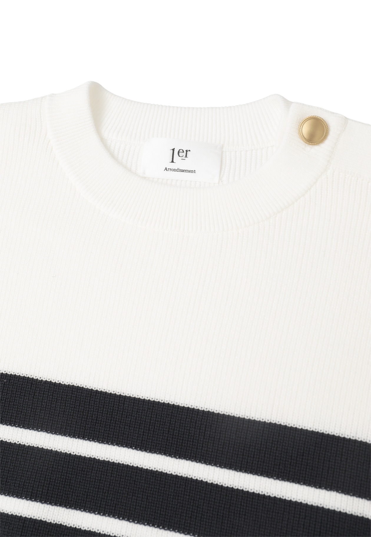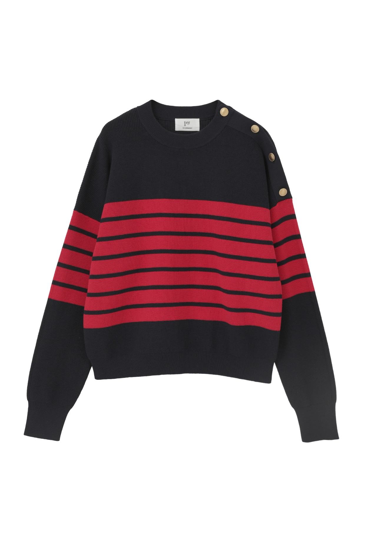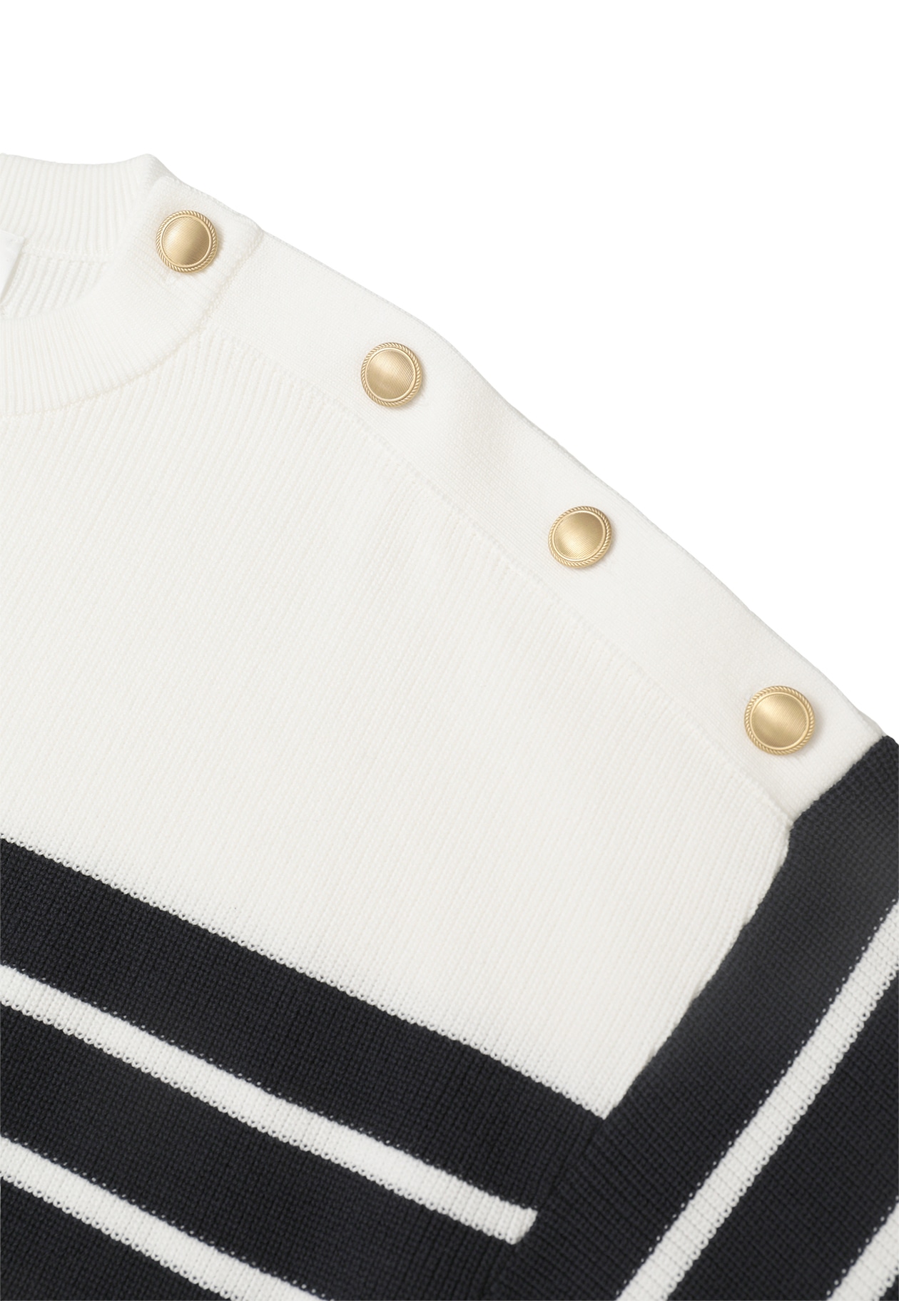 マリンムード漂う、金ボタン付きボーダーニット。