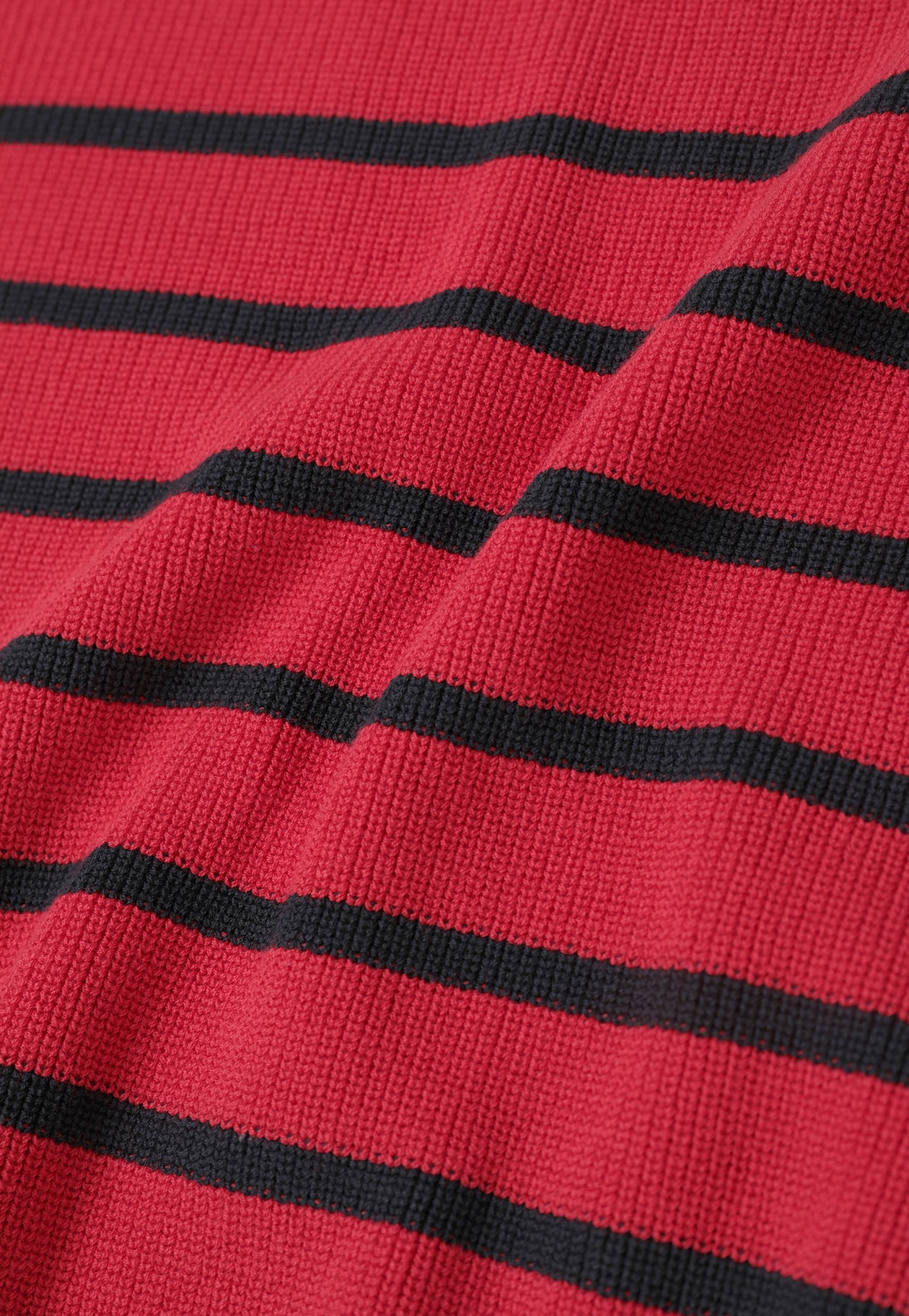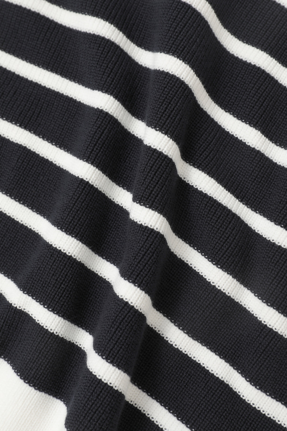 細番手のハイツイストコットンを畦編みにした、軽やかなボーダーニット。