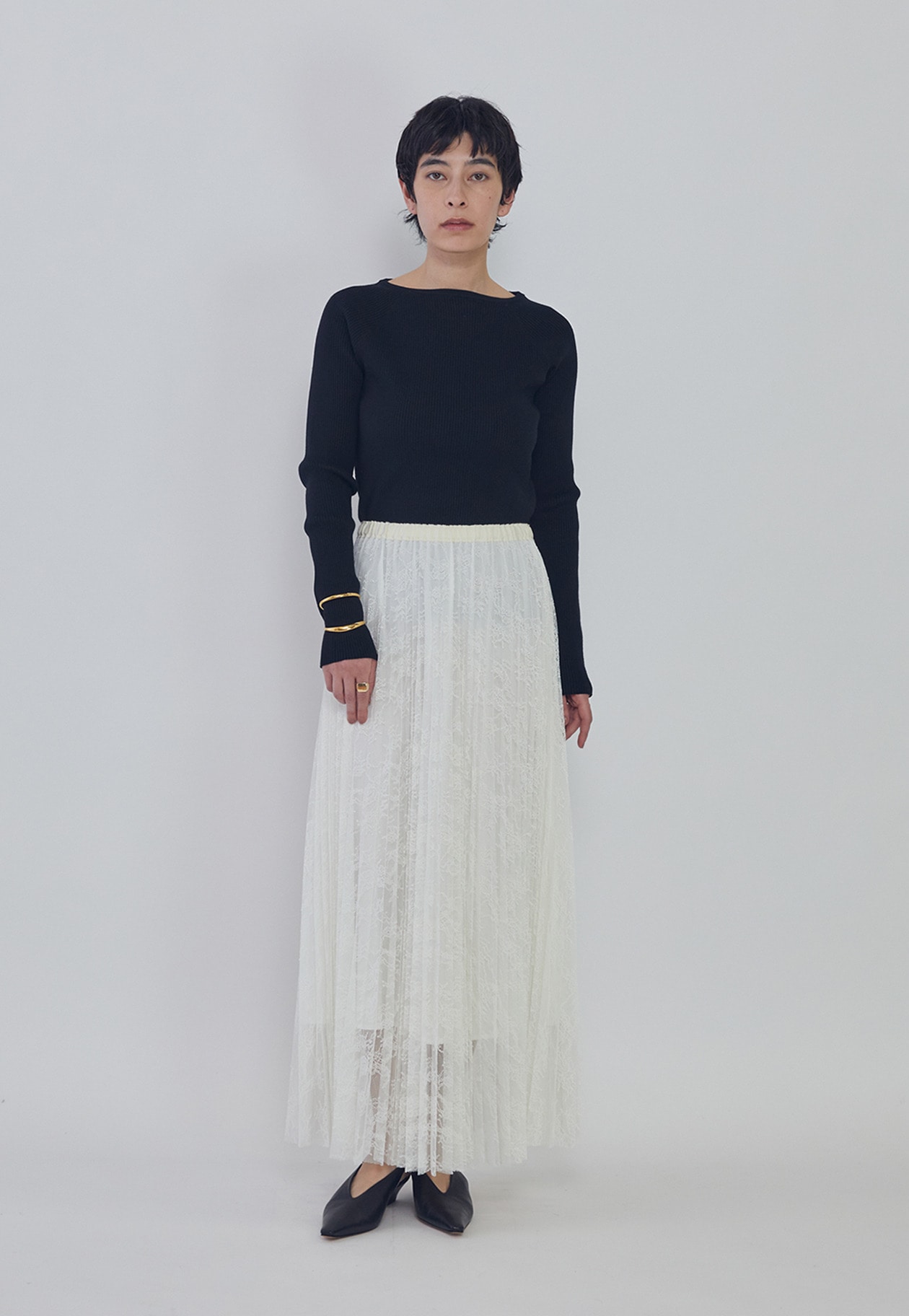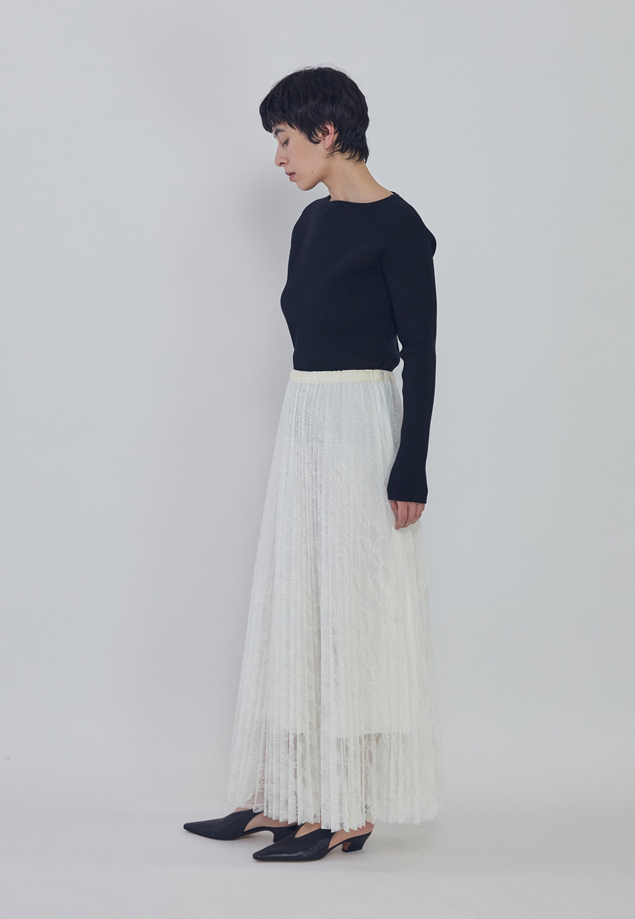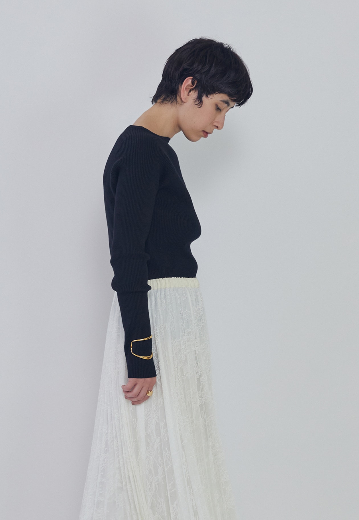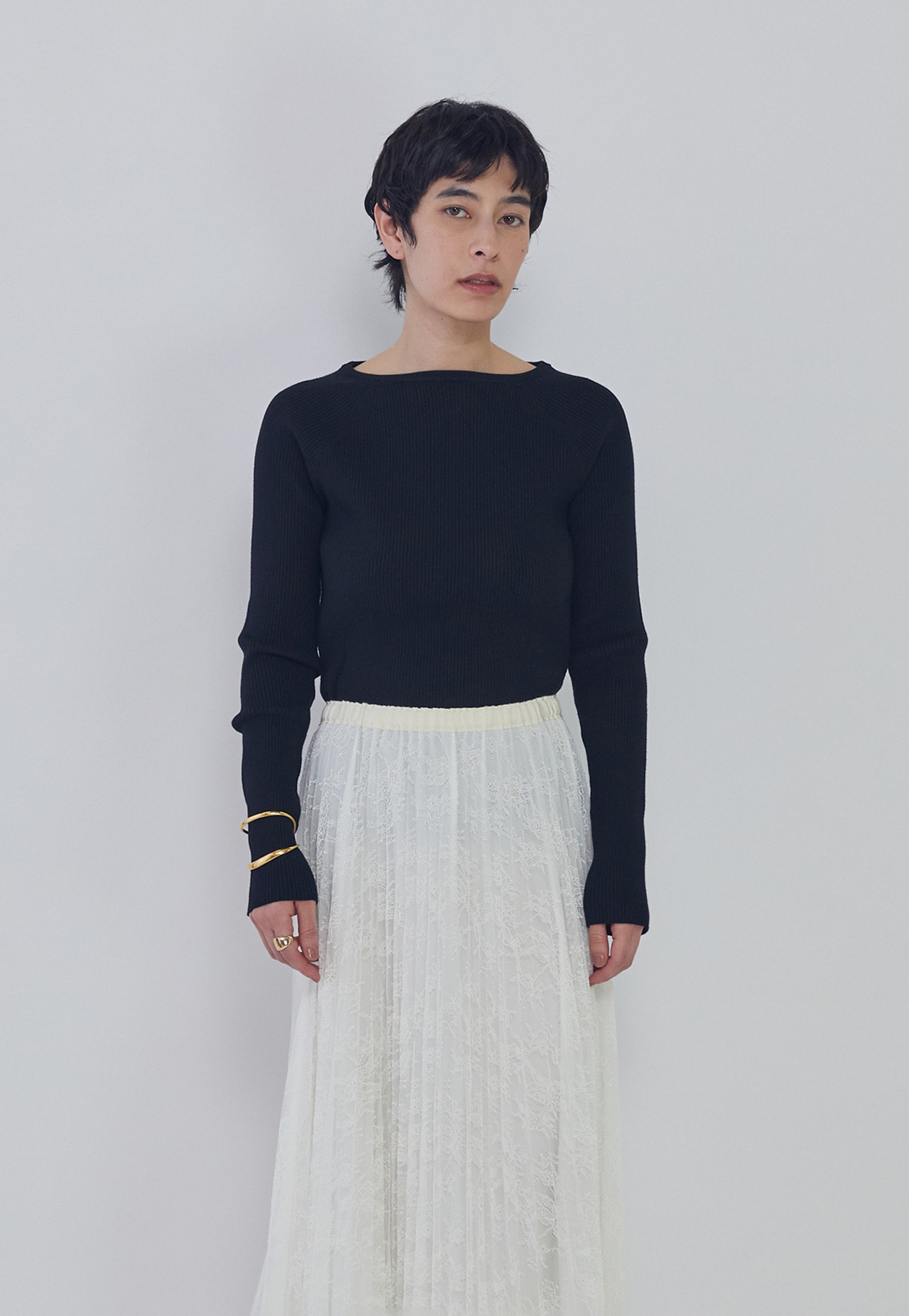 小さめのボートネックが、上品で繊細な印象を演出します。