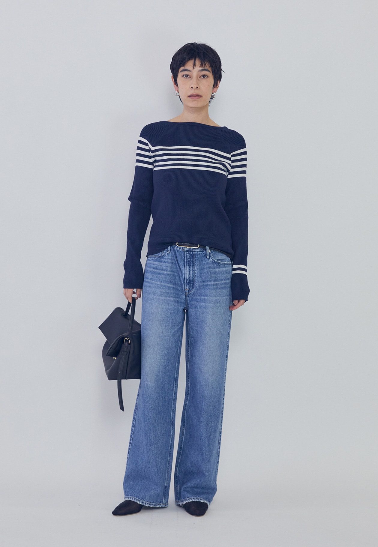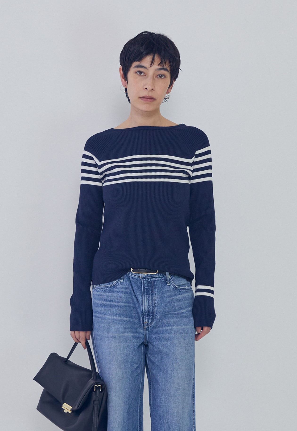 ネイビーやホワイトのパンツと合わせた、軽やかなマリンスタイルも楽しめます。