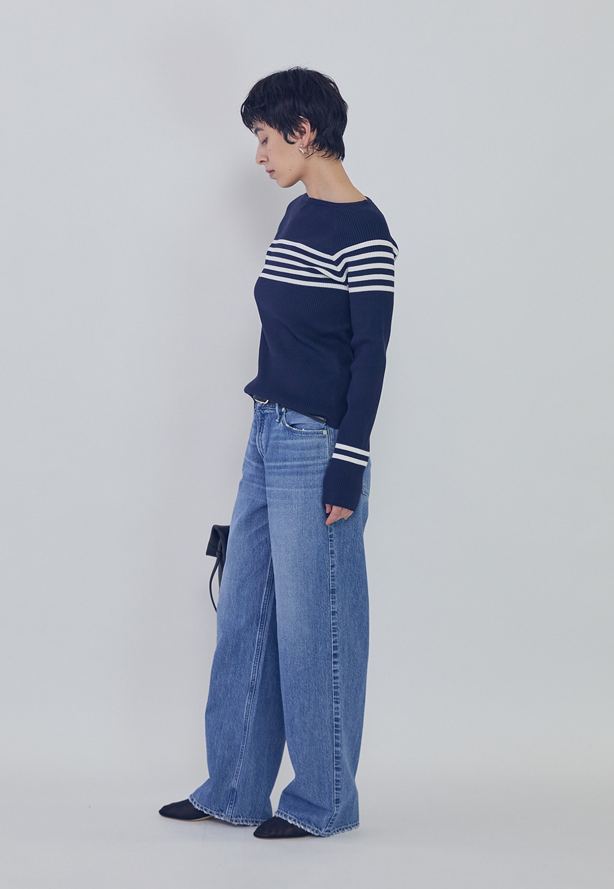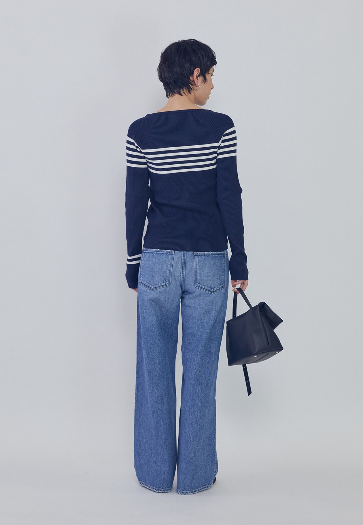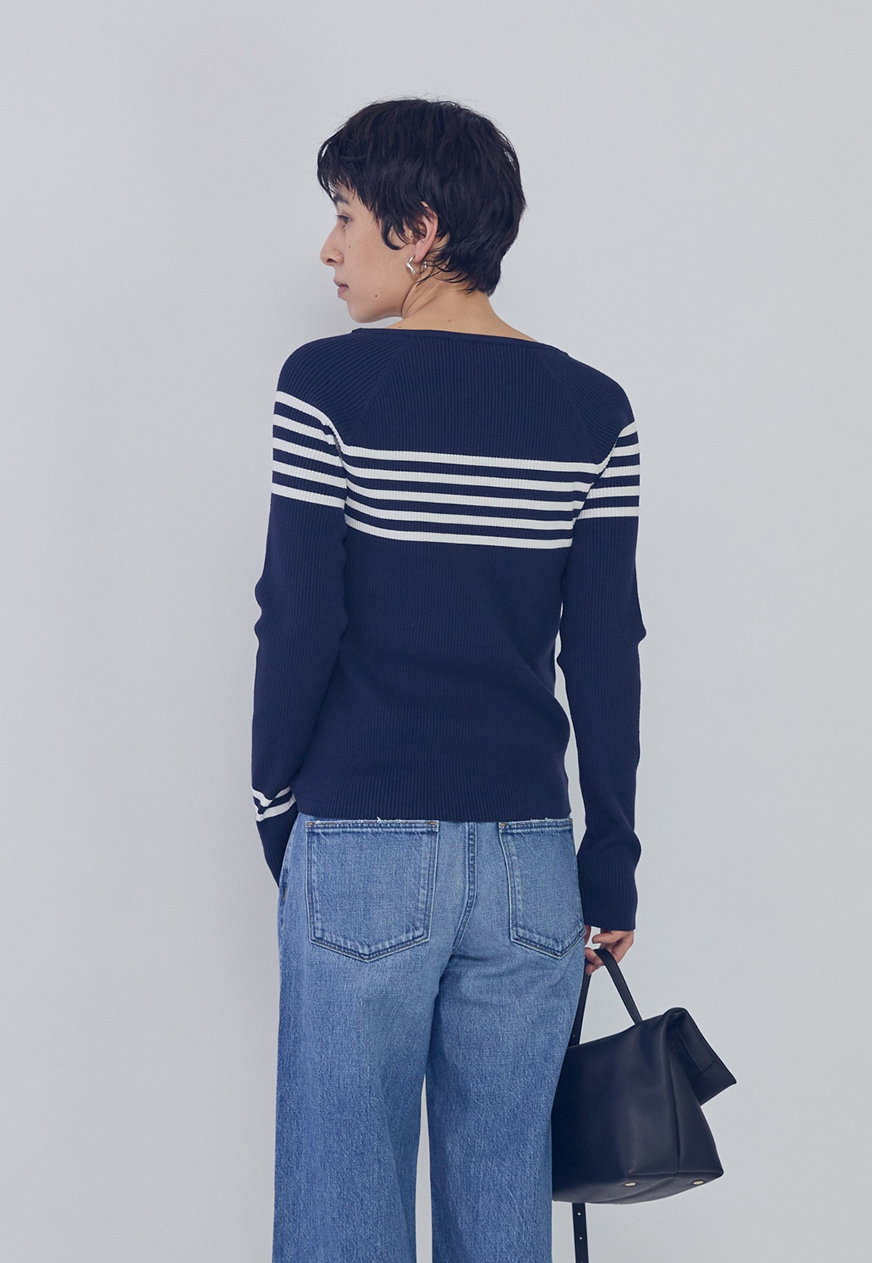 ネイビーのみボーダー柄で展開し、左袖口にさりげなくラインを入れた遊び心のあるデザインに。