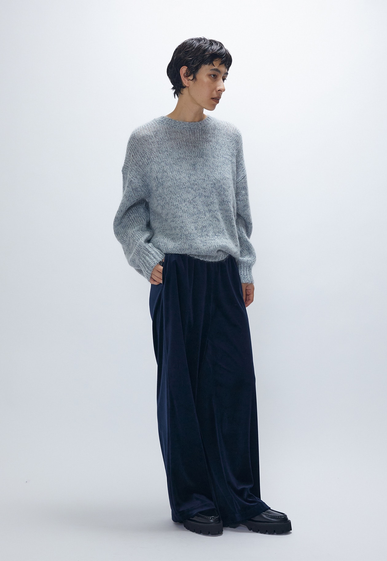 素材自体の可愛らしさを引き立てるため、トレンドに左右されない緩めのクルーネックデザインに。
